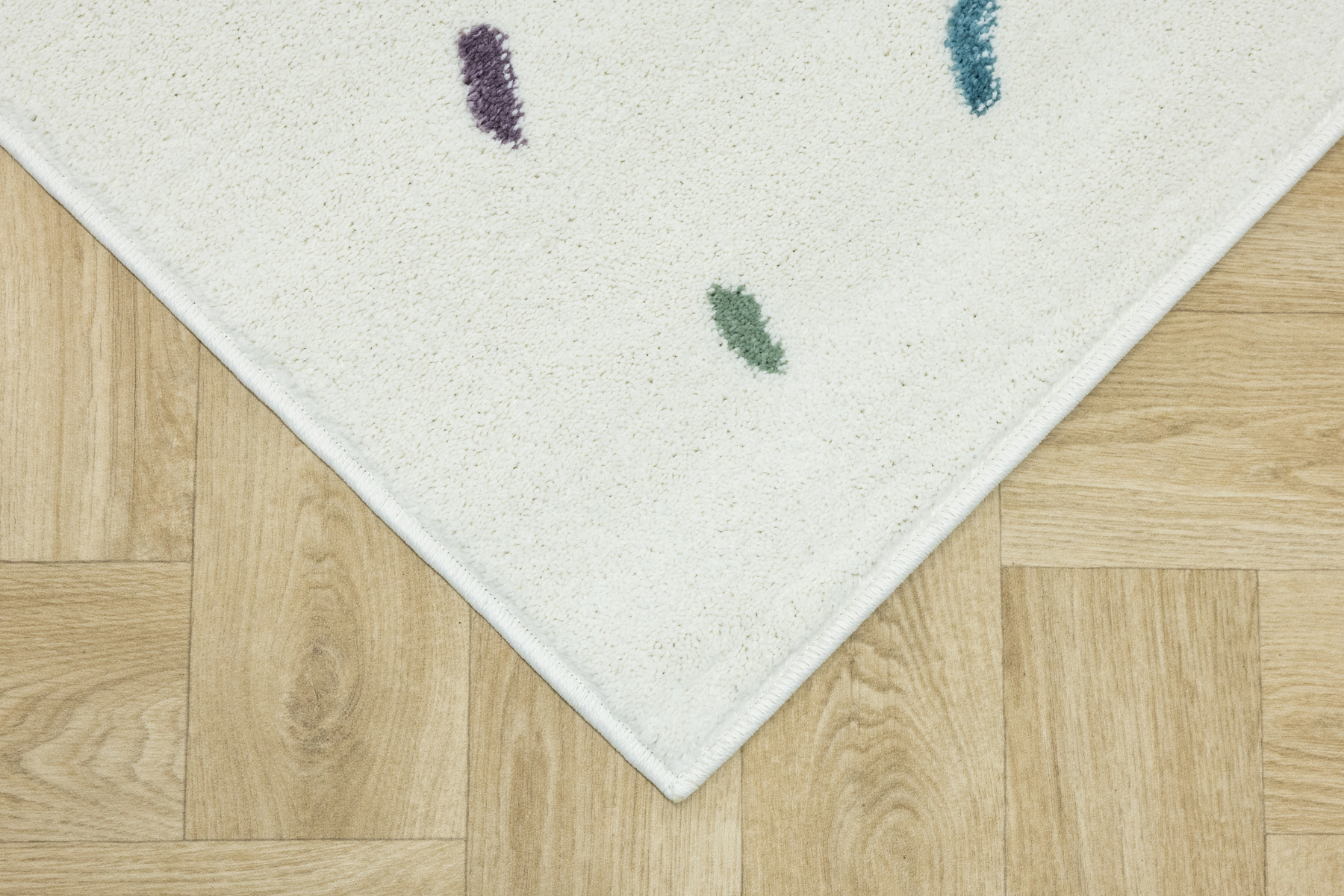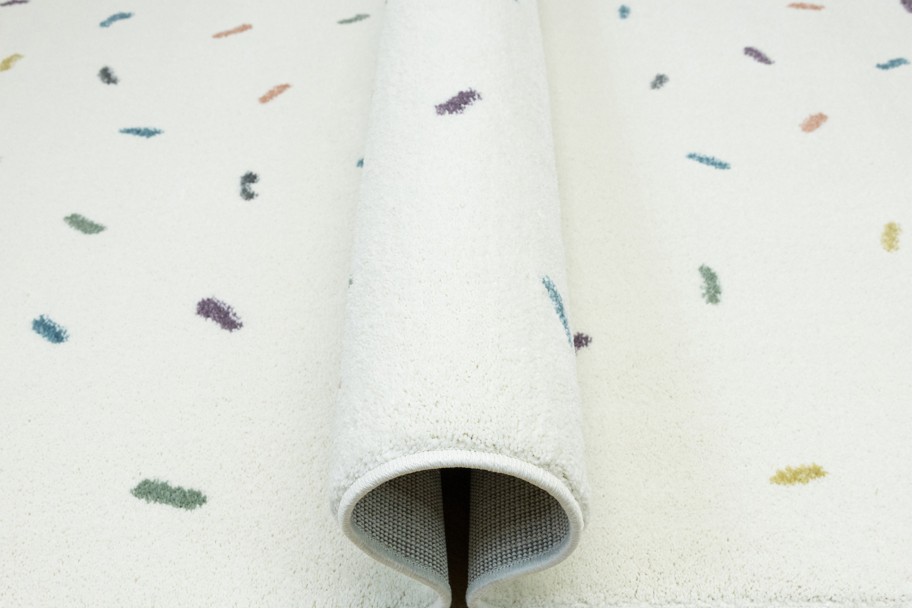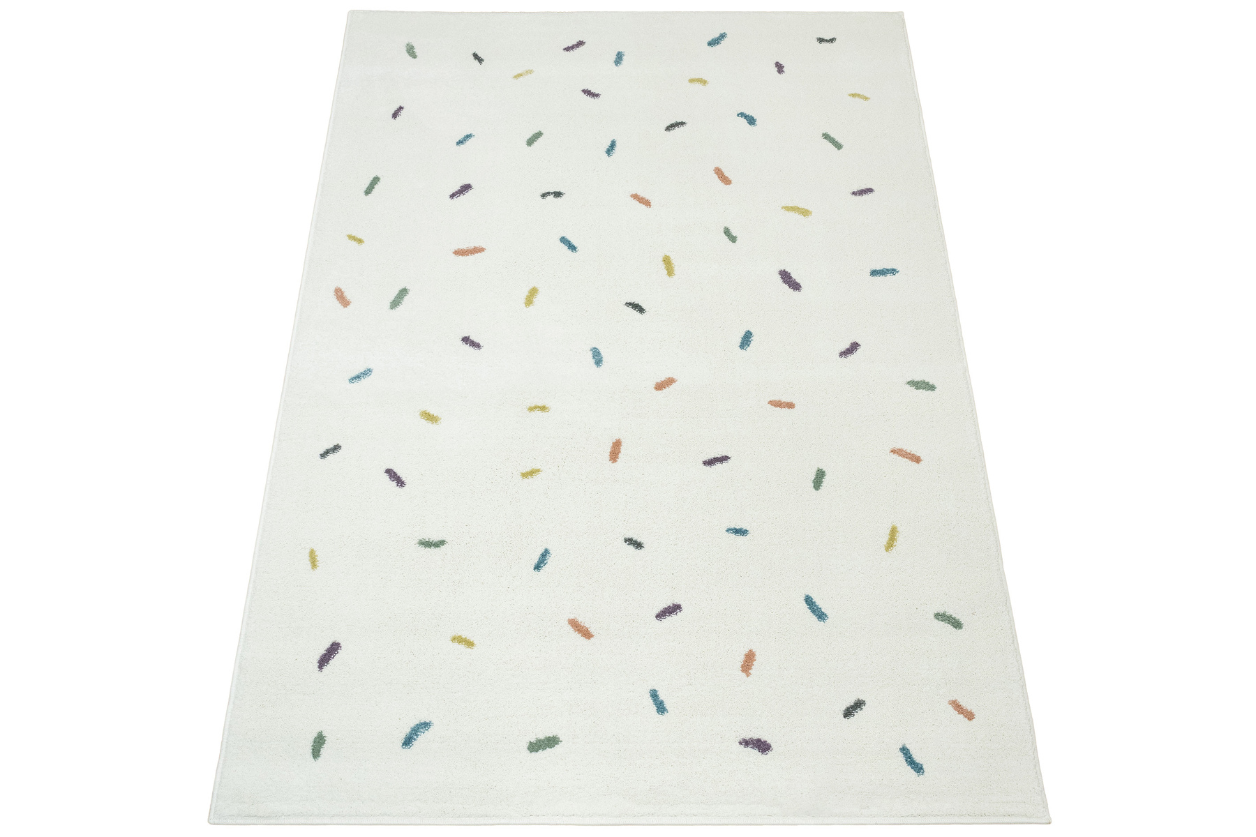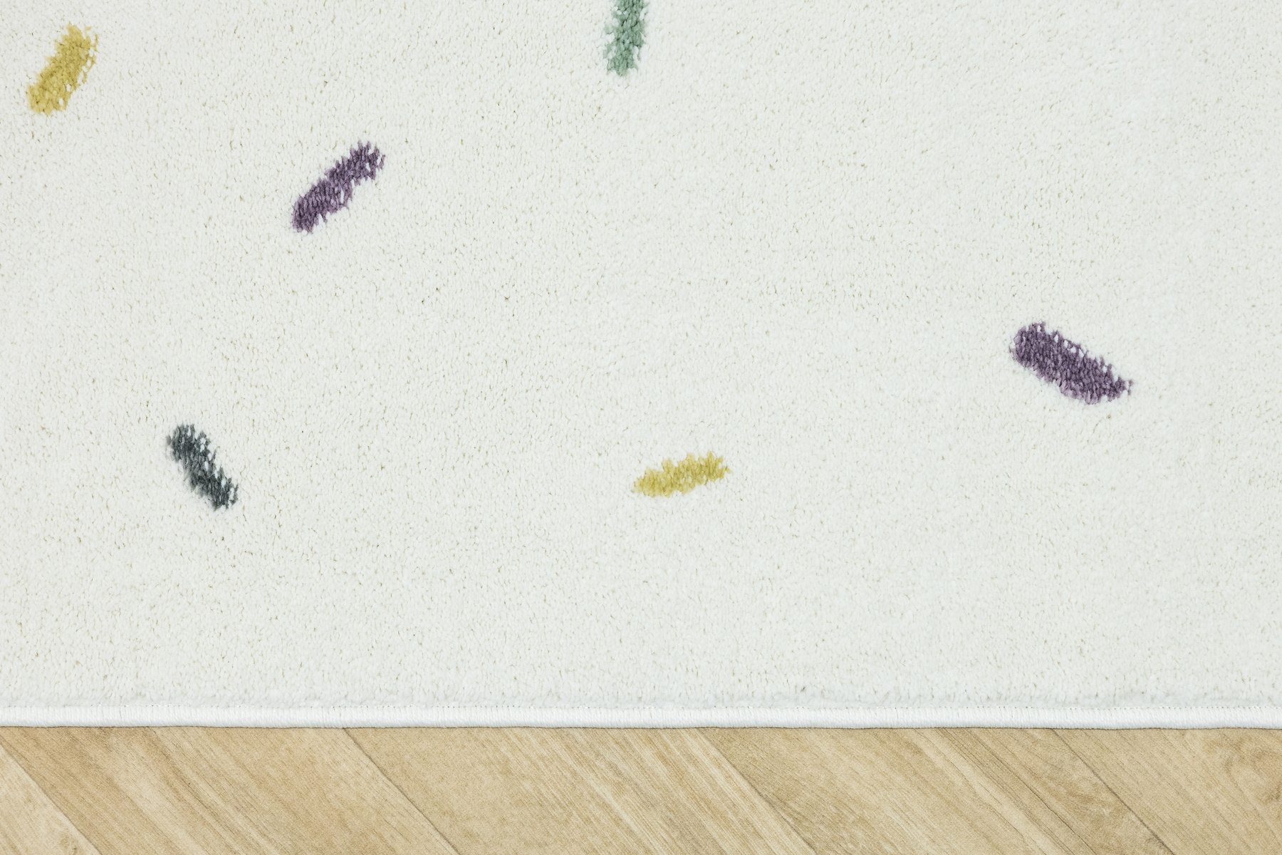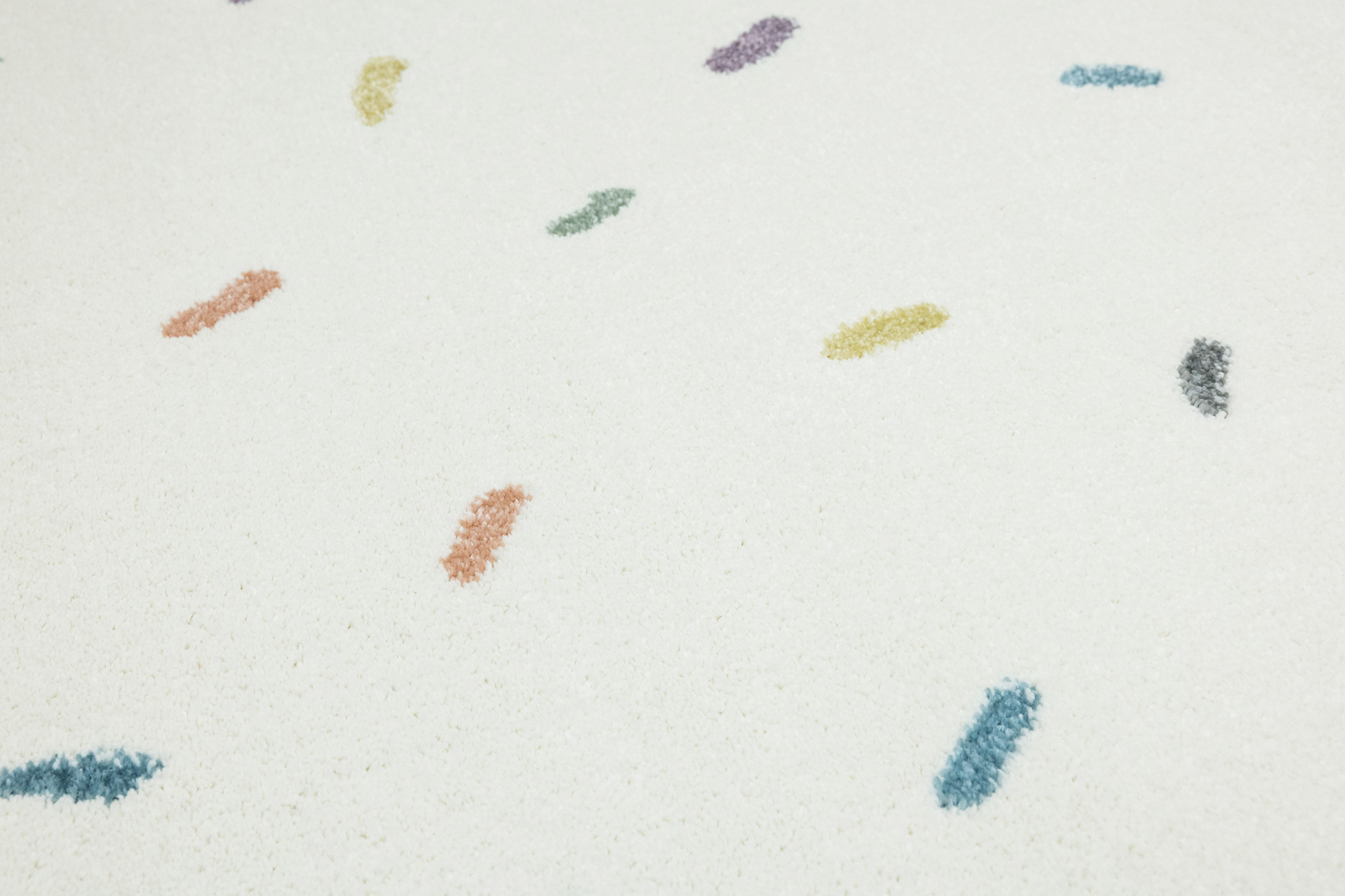 • Dywan dziecięcy Lima z mięciutkim runem o wzorze w kreseczki odcieniach kremu fioletu, różu, grafitu, niebieskiego, zieleni i żółtego.