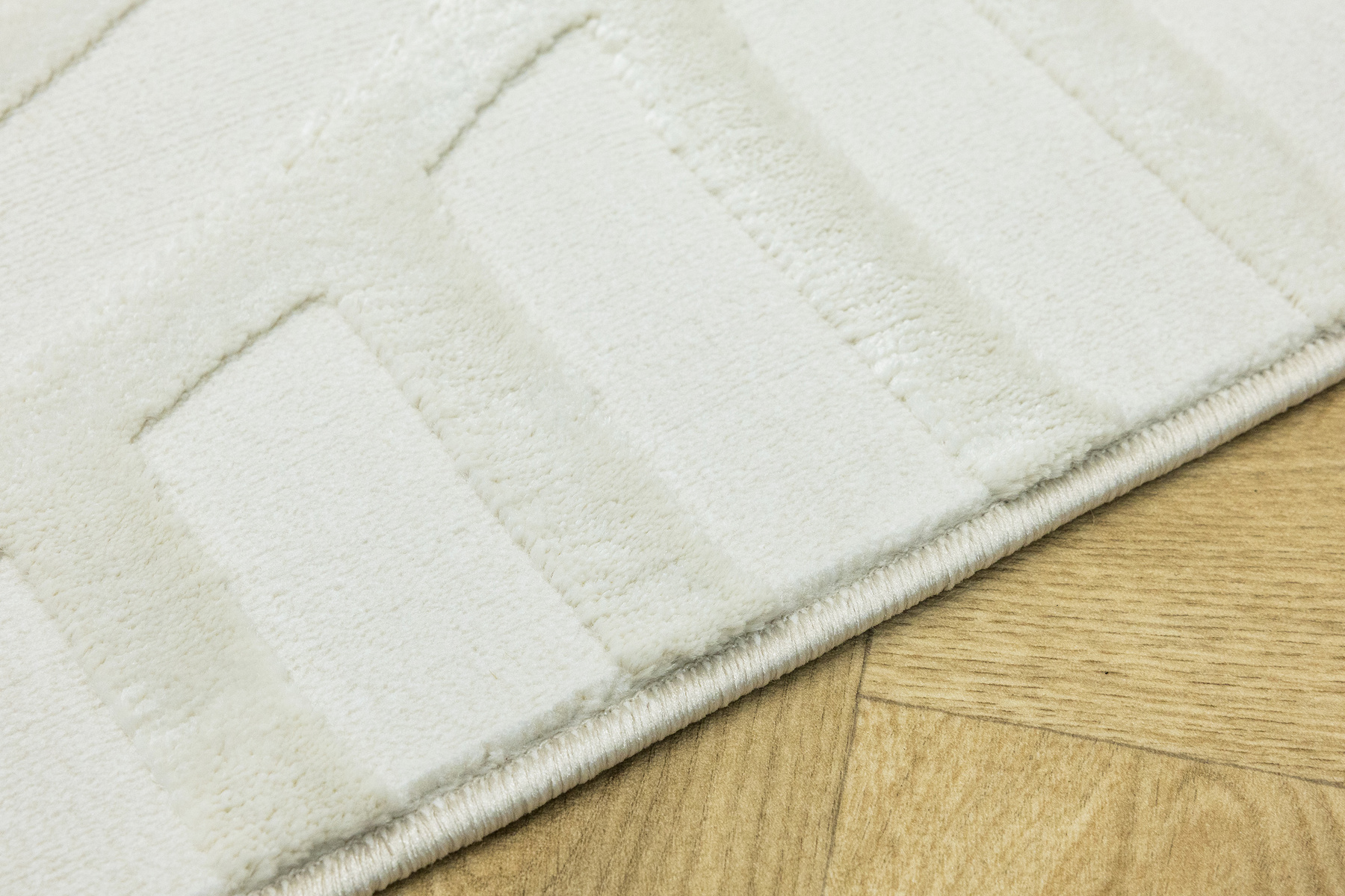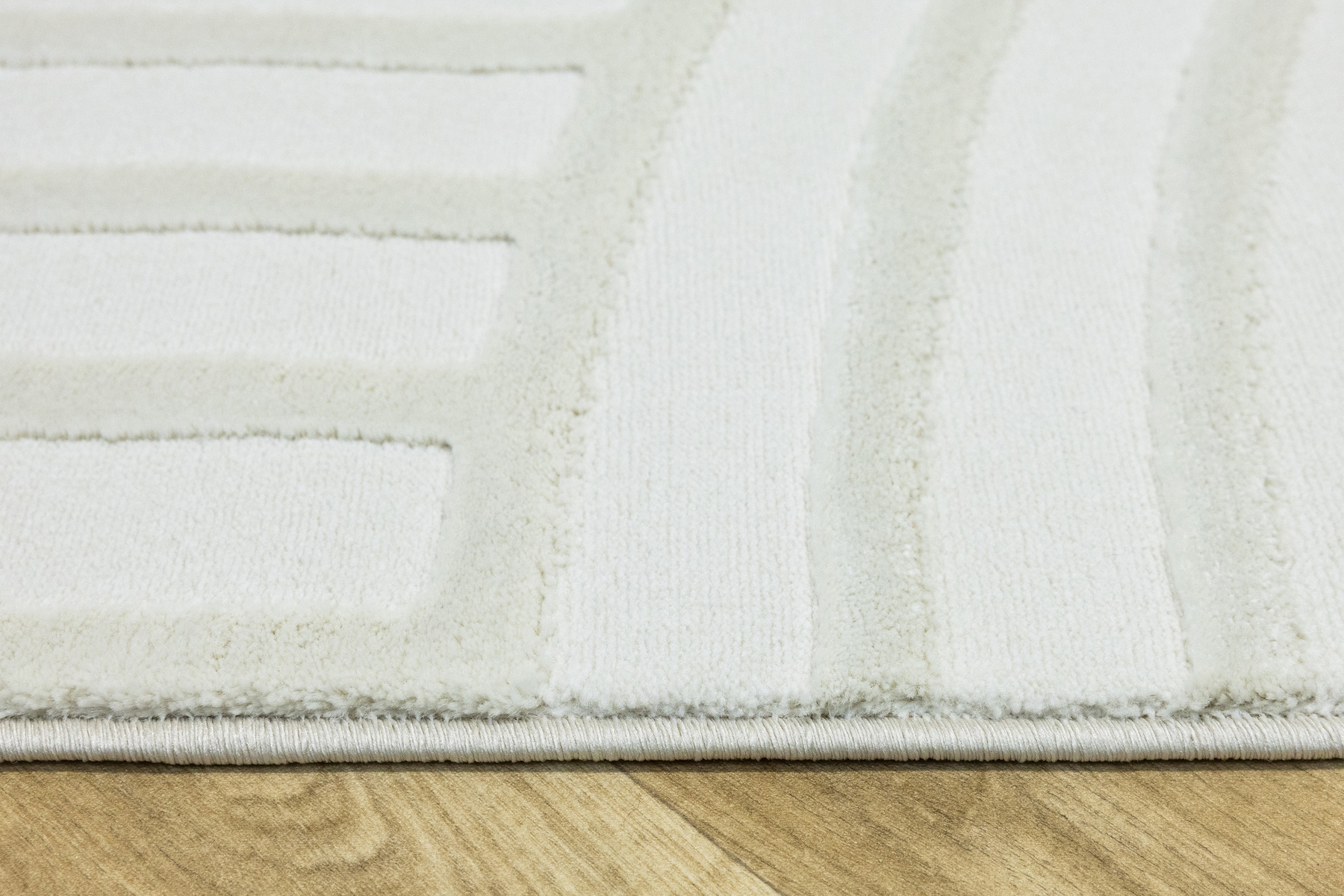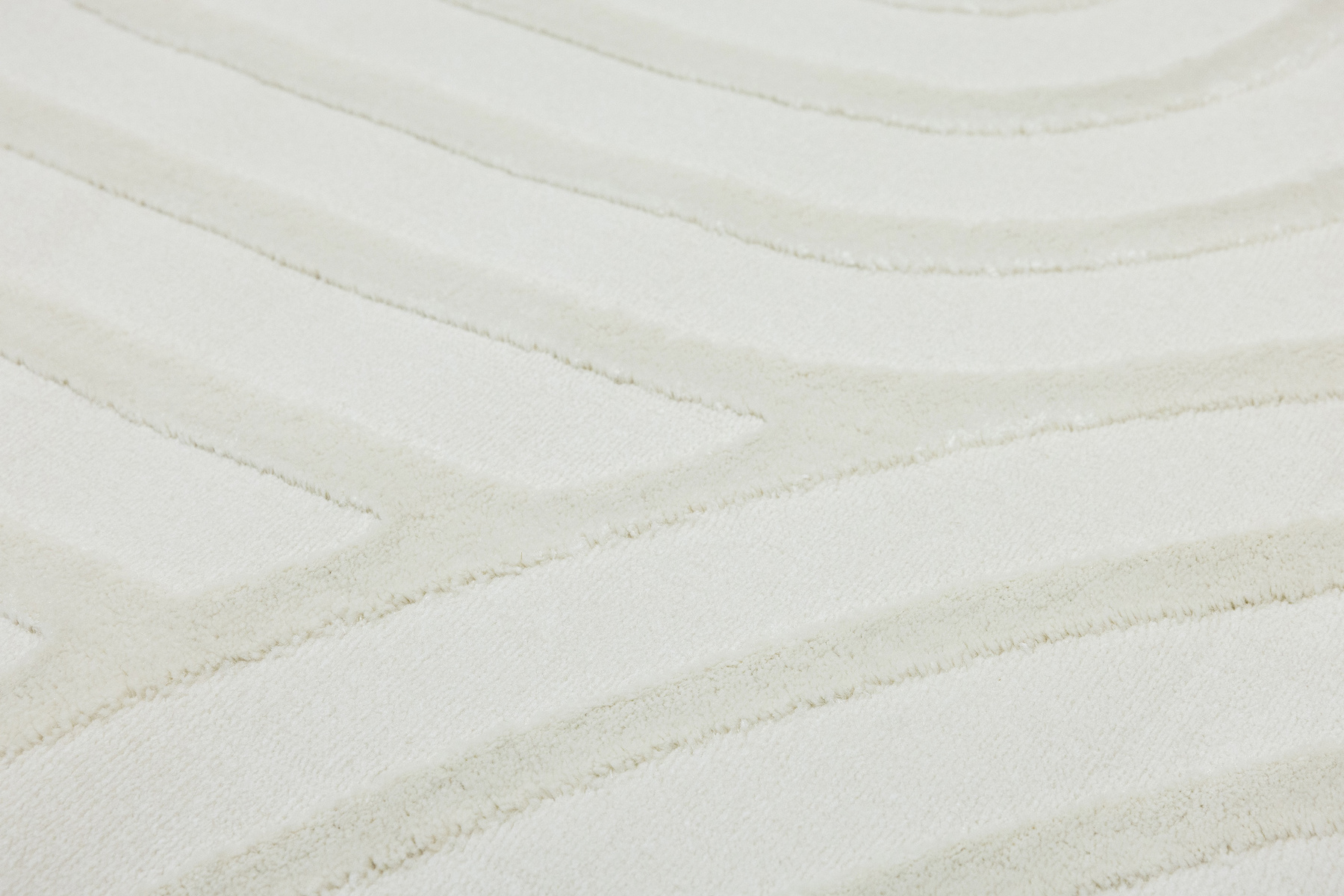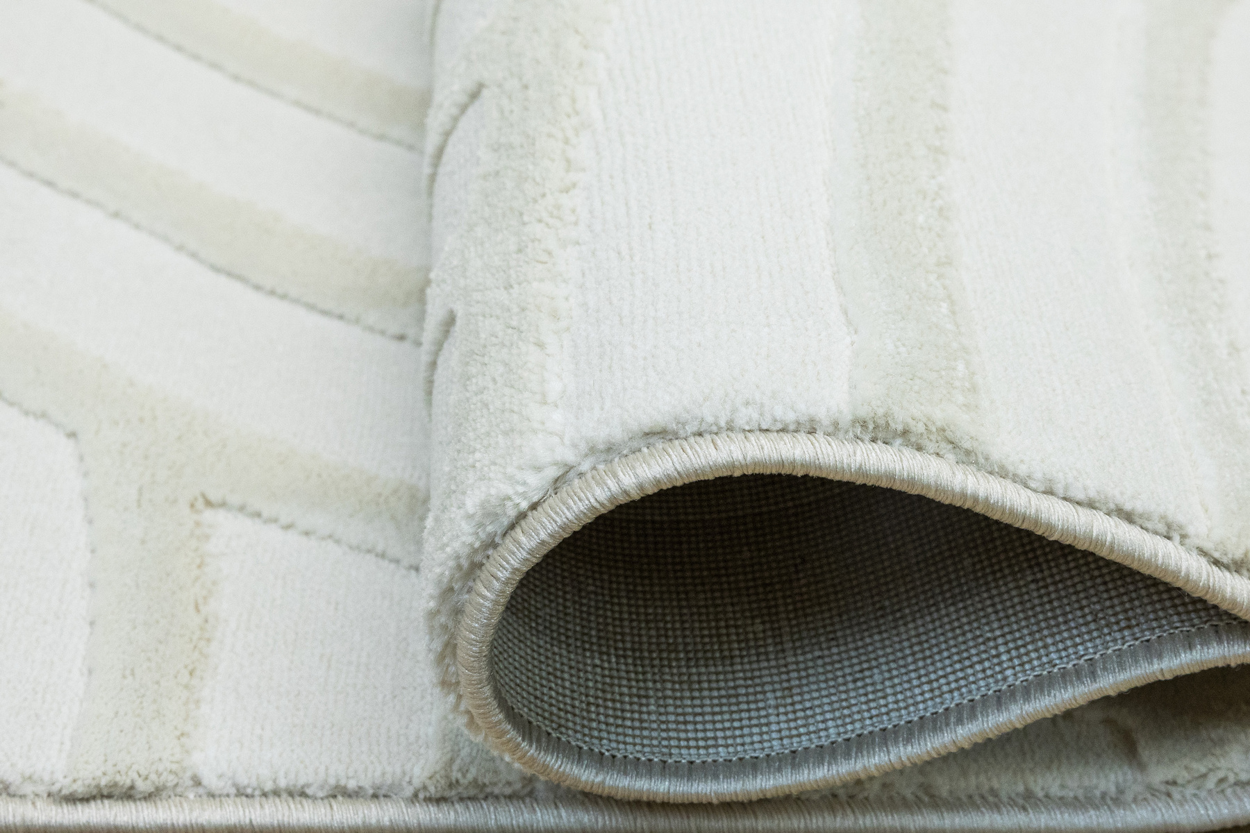 • Miękki i przyjemny w dotyku dywan Misha o lśniącym dwupoziomowym runie w kremie z geometrycznym wzorem i spodem wykończonym jutą