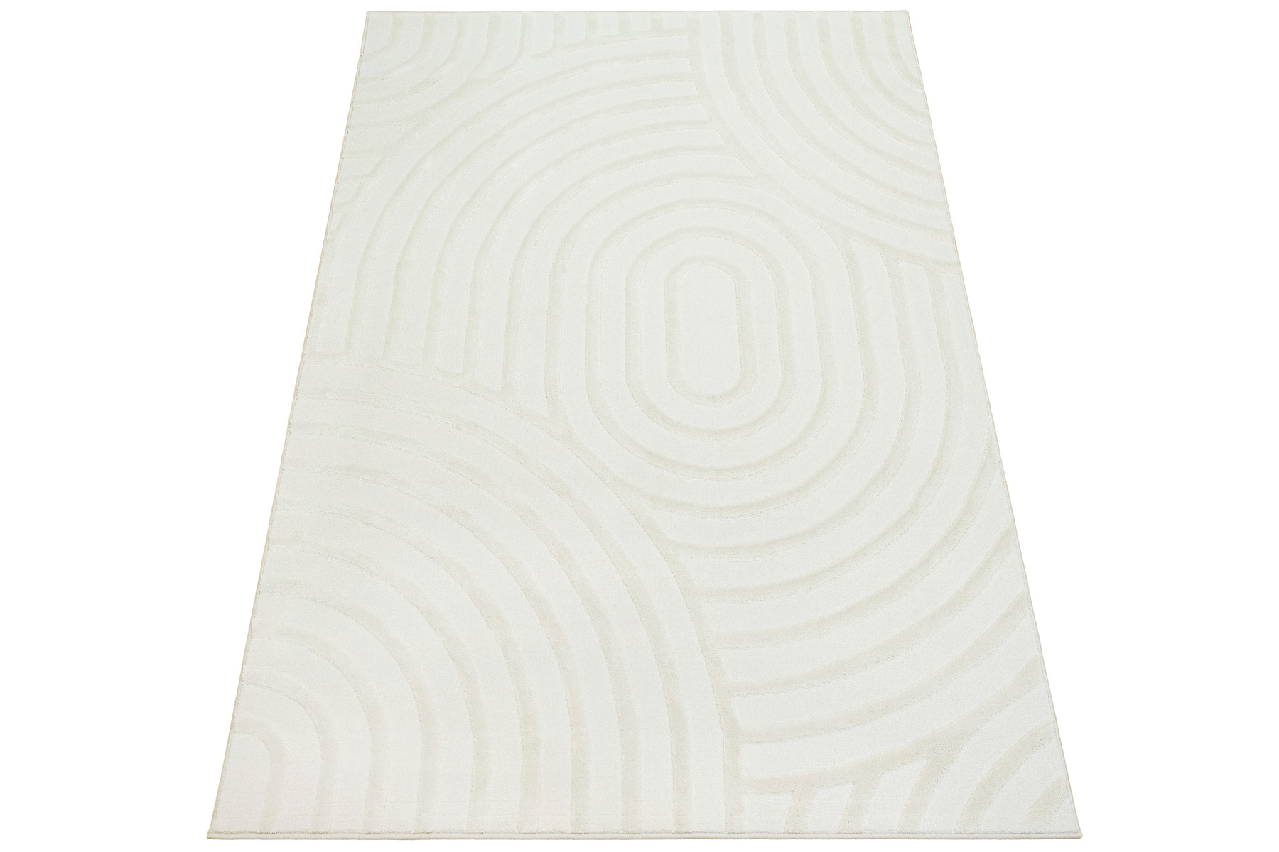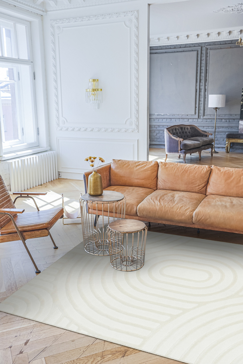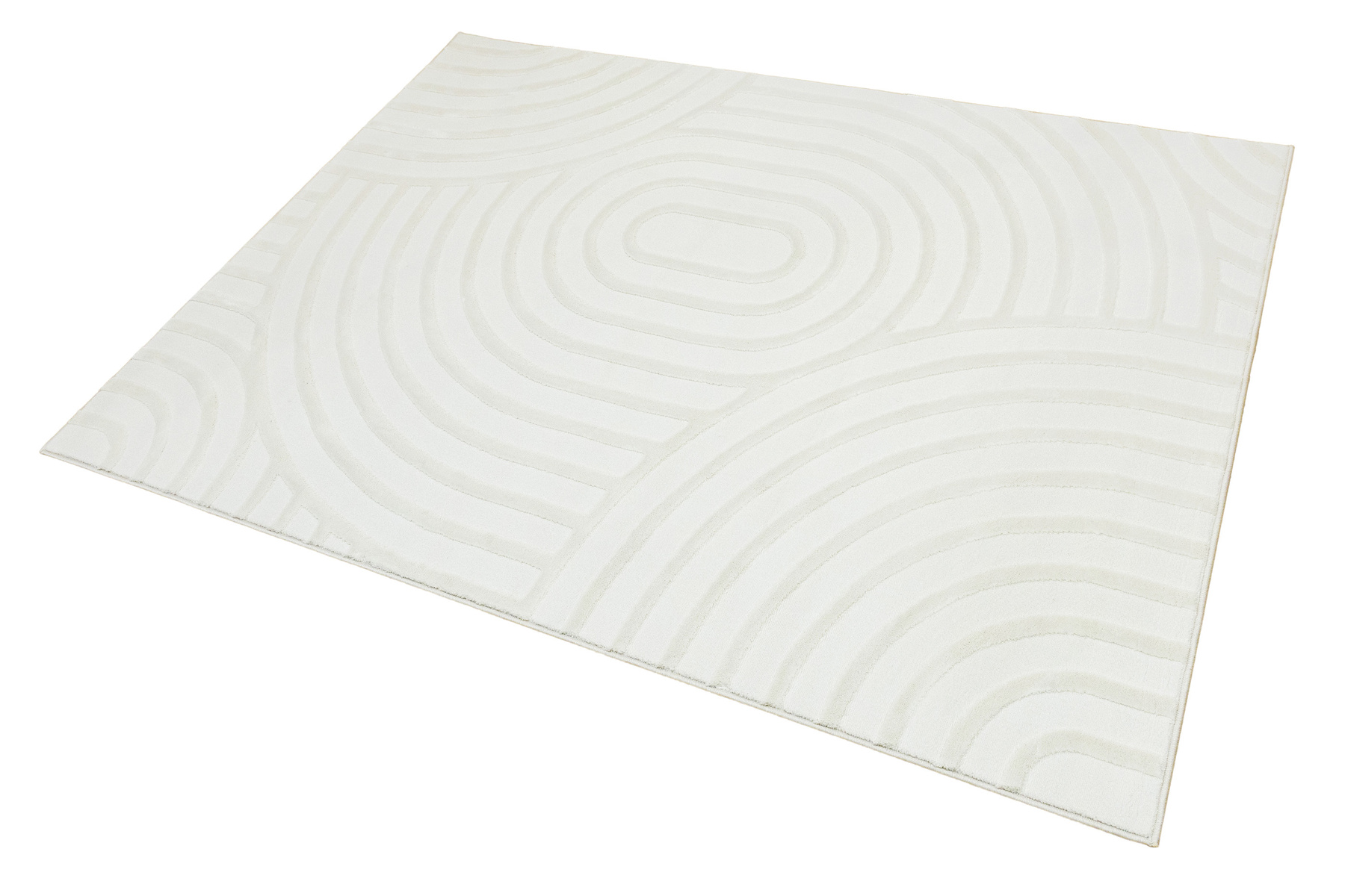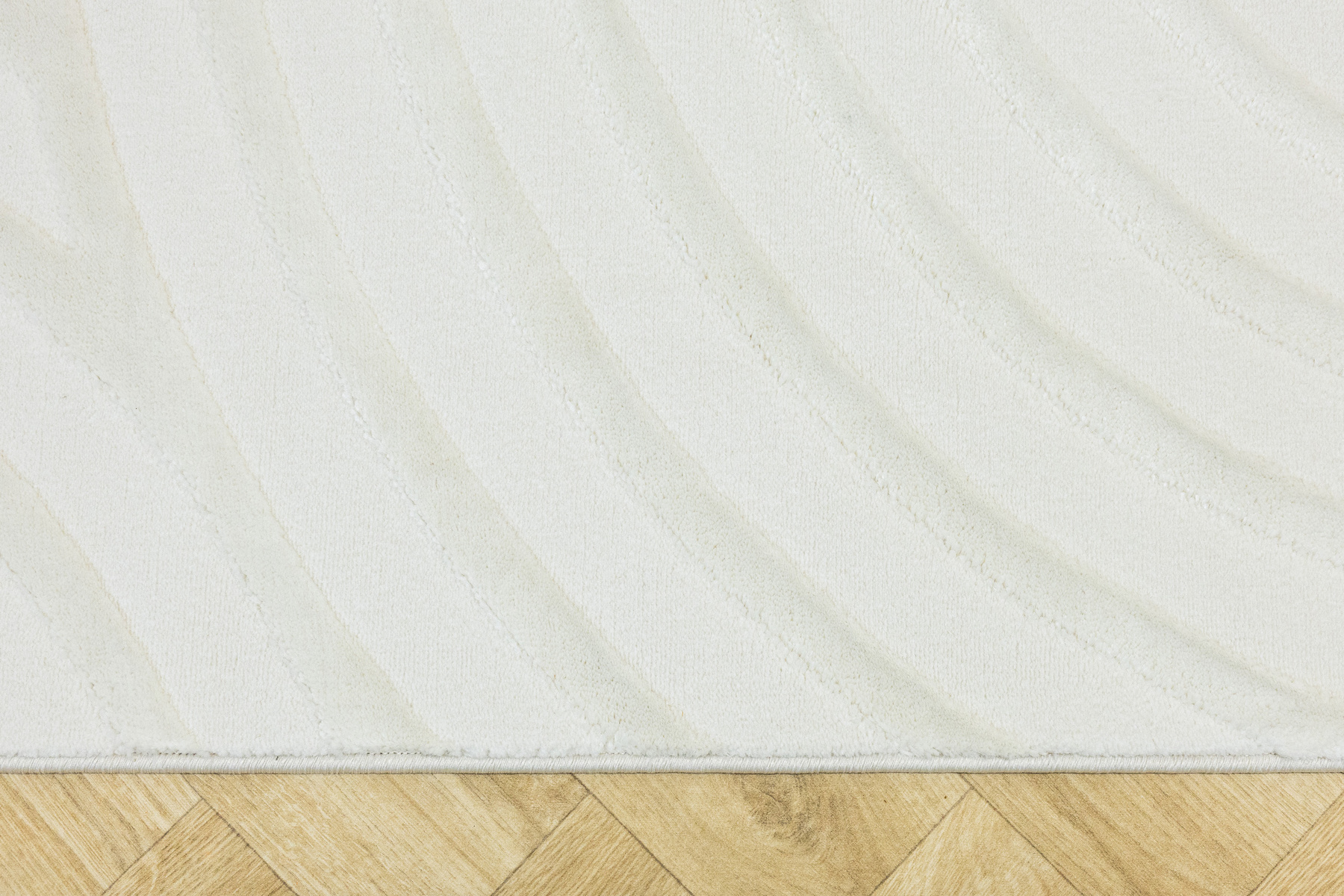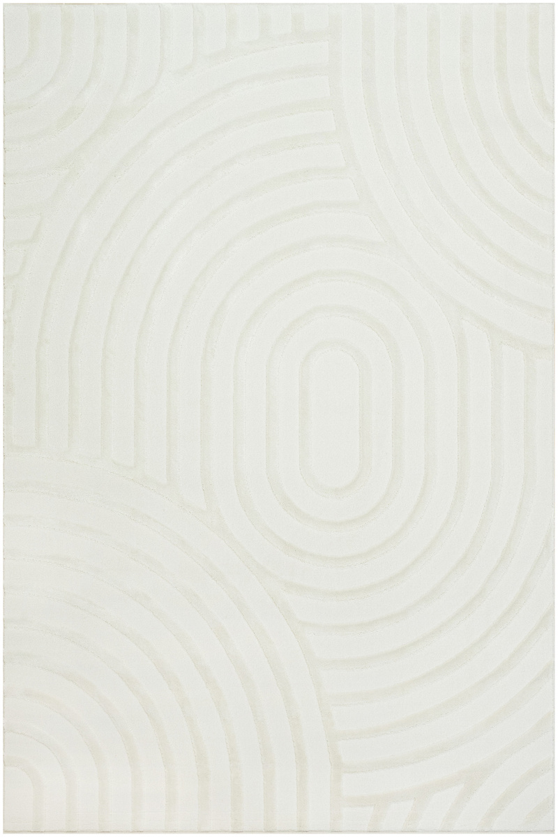 • Miękki i przyjemny w dotyku dywan Misha o lśniącym dwupoziomowym runie w kremie z geometrycznym wzorem i spodem wykończonym jutą