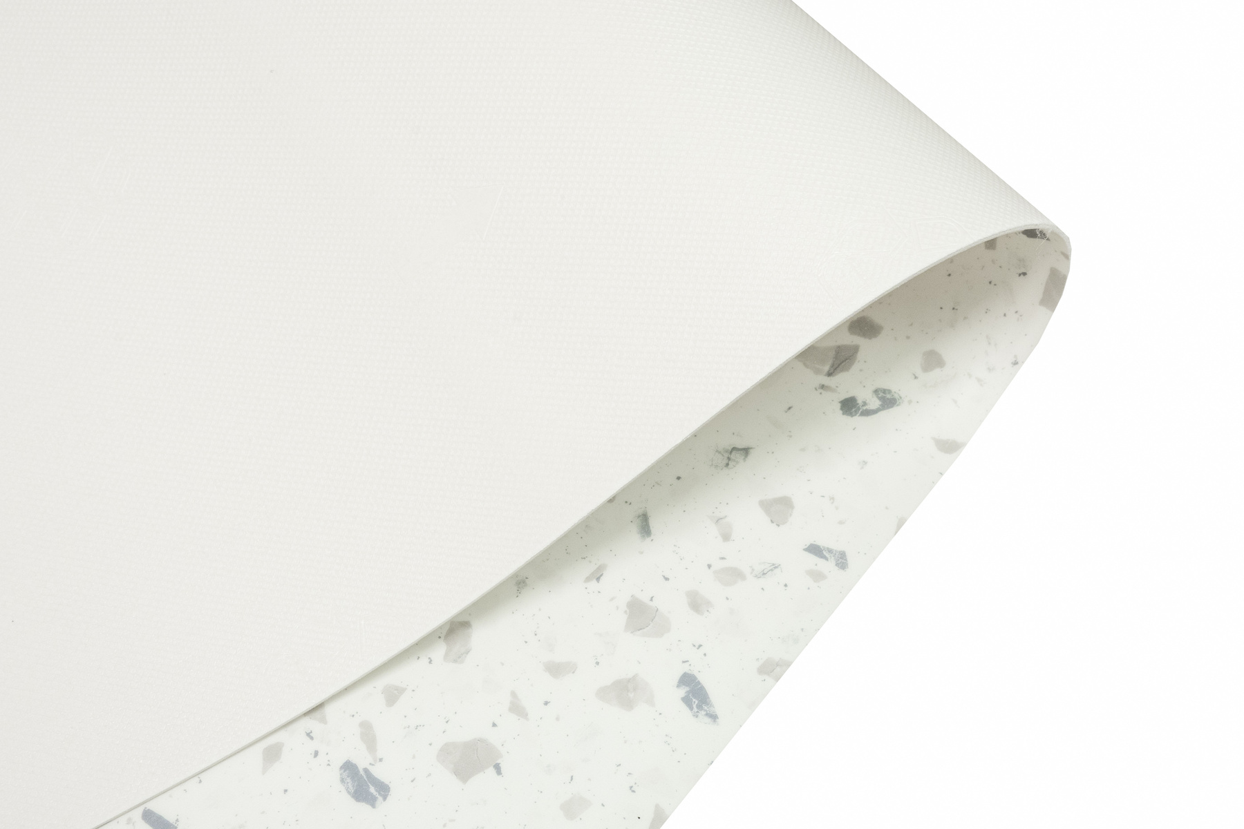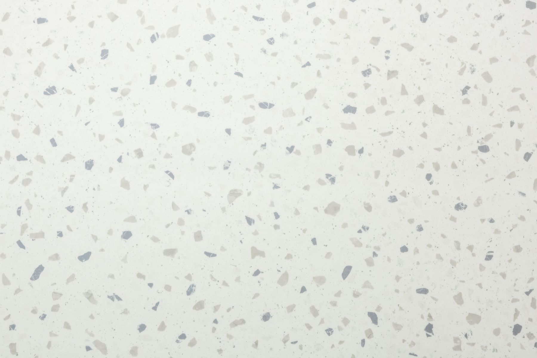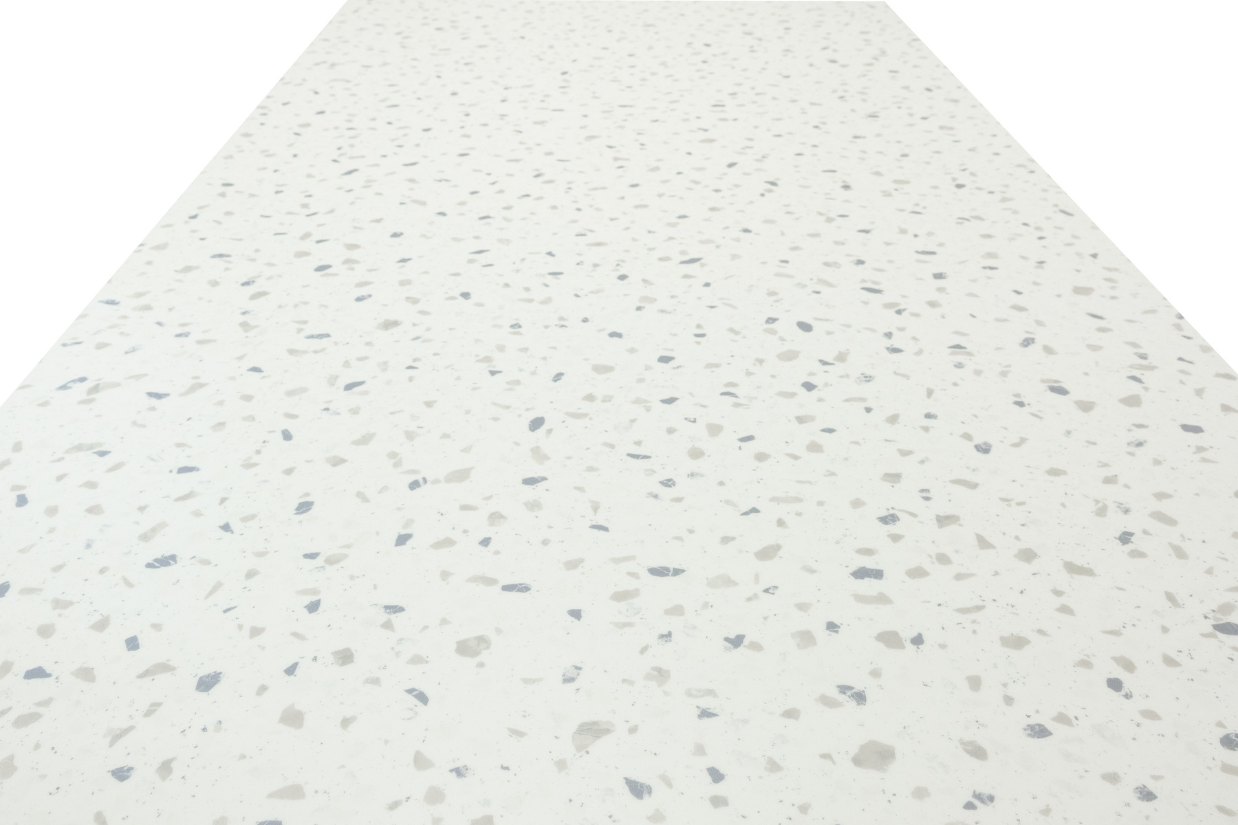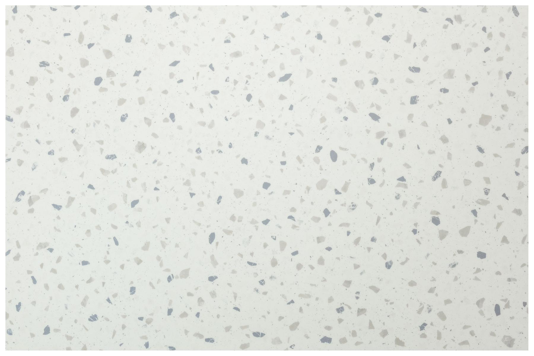 - Wykładzina PCV Vigan Marmette ze wzorem imitującym lastryko z kamyczkami w odcieniach beżu, kremu, szarości.