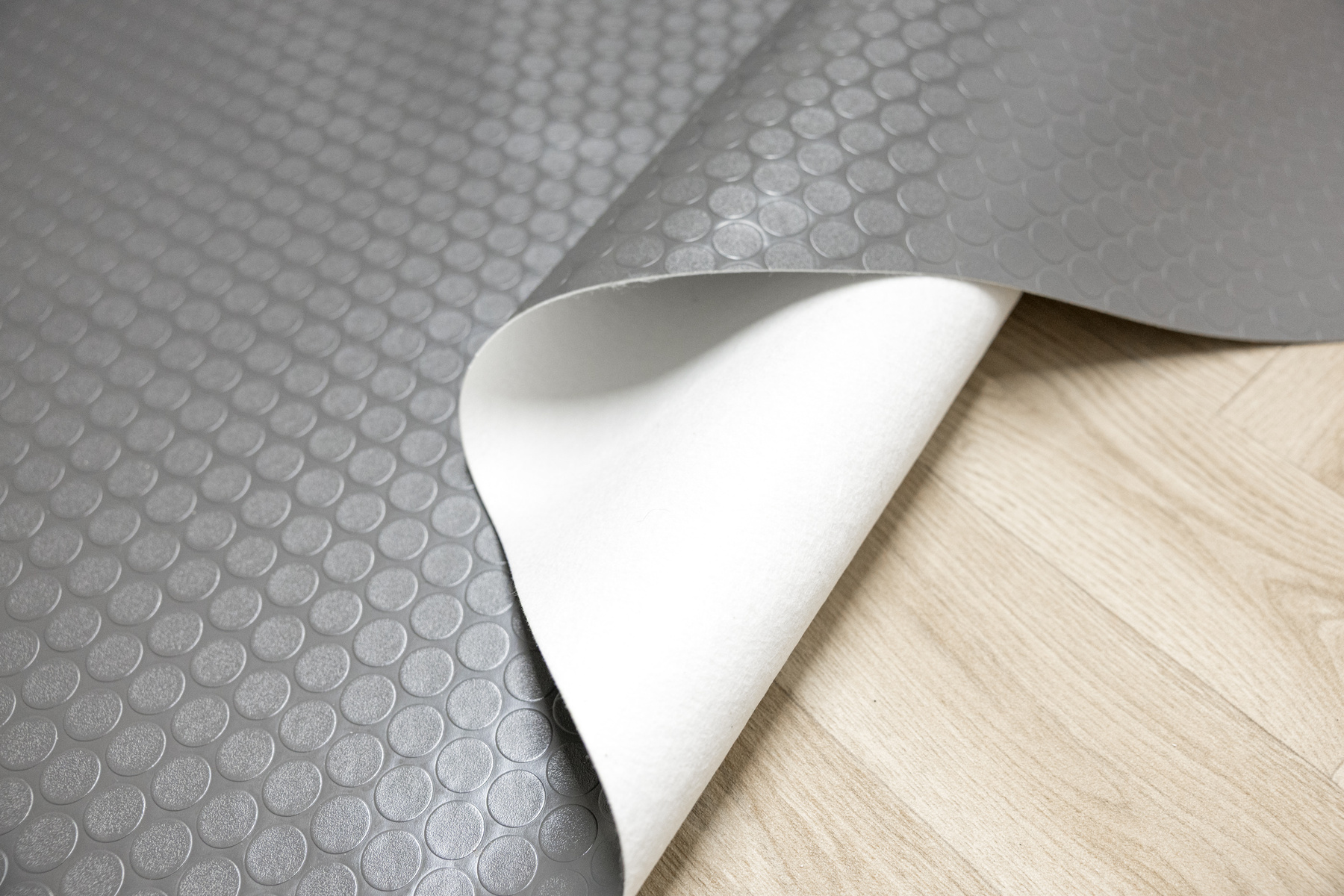 - Wytrzymała wykładzina PCV Avtolin New Szary na filcu ze wzorem wypukłych kółek