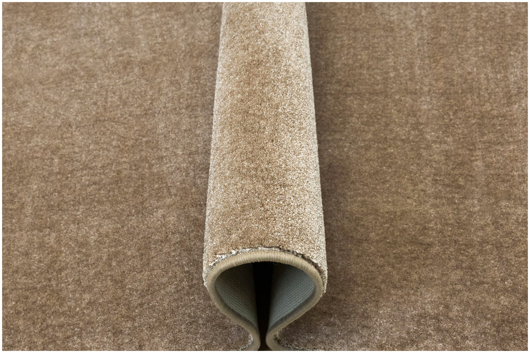 - Miękka i przyjemna w dotyku luksusowa wykładzina dywanowa Glamour-Sub z lśniącym poliamidowym, piszącym się runem ciętym typu saxon w odcieniu lśniącego się kaszmirowego beżu, ze spodem na jucie.