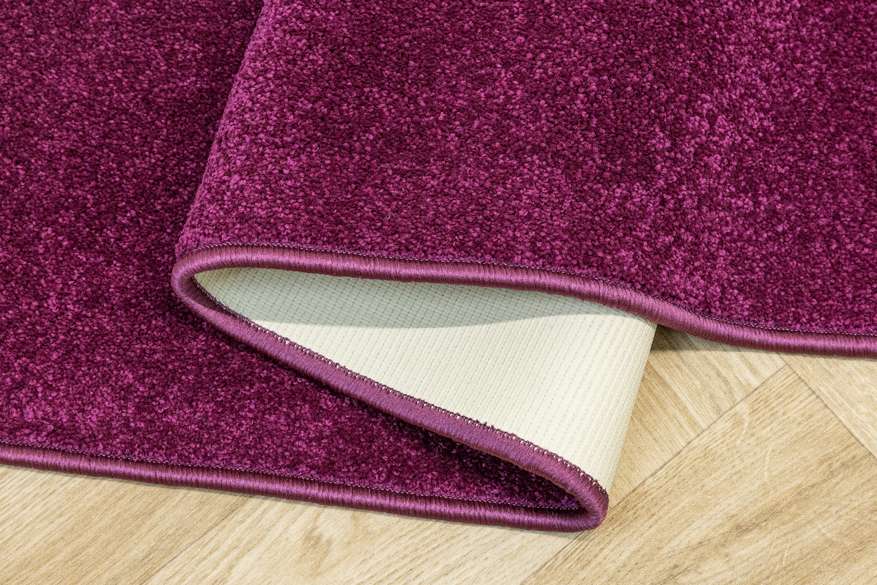 - Miękka i przyjemna w dotyku antypoślizgowa wykładzina dywanowa Carousel z runem w odcieniu biskupiego fioletu - magenty i podgumowanym spodem.