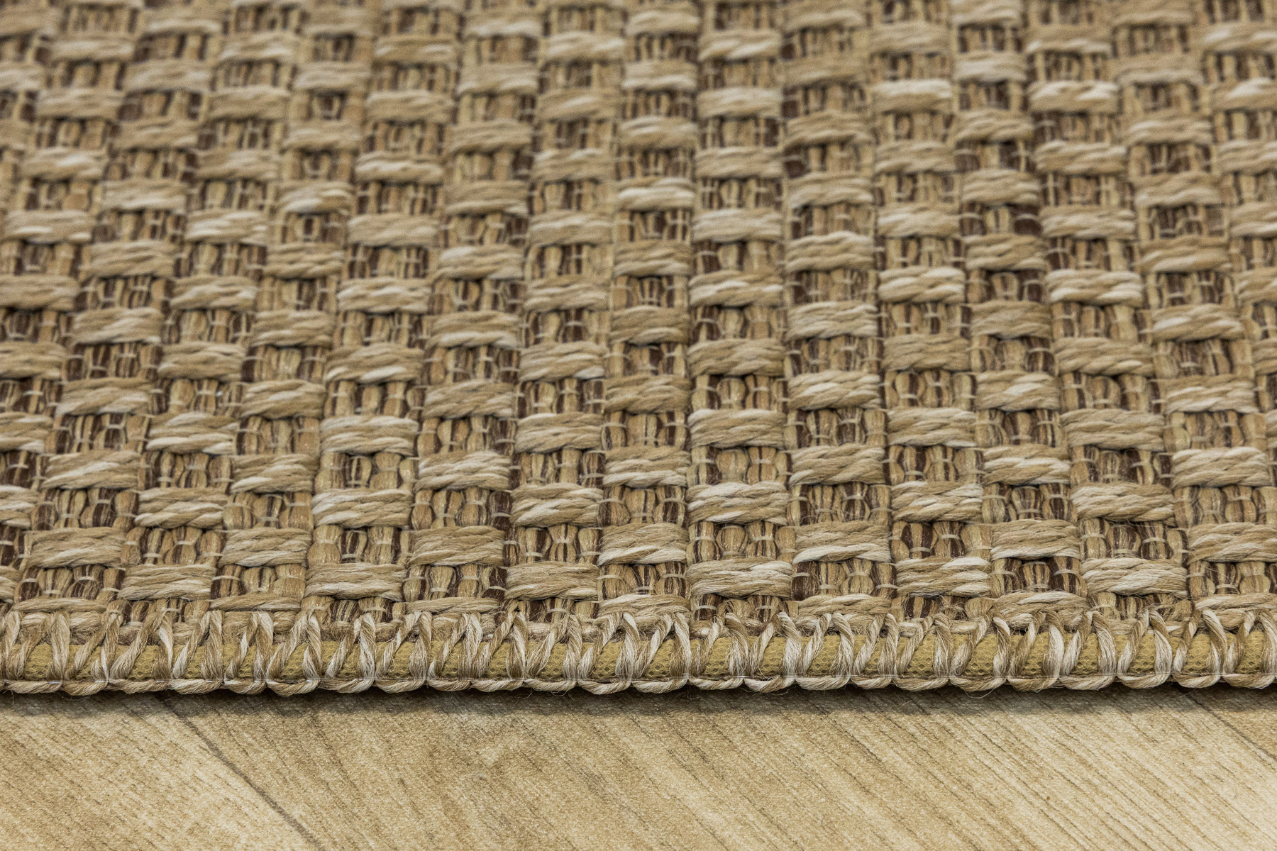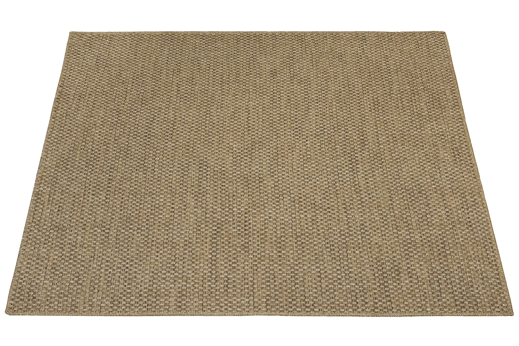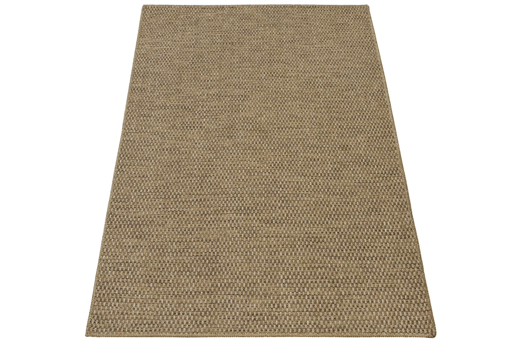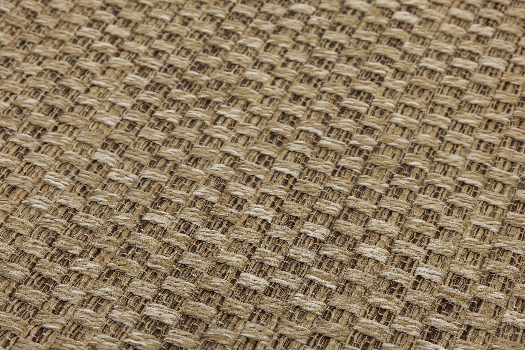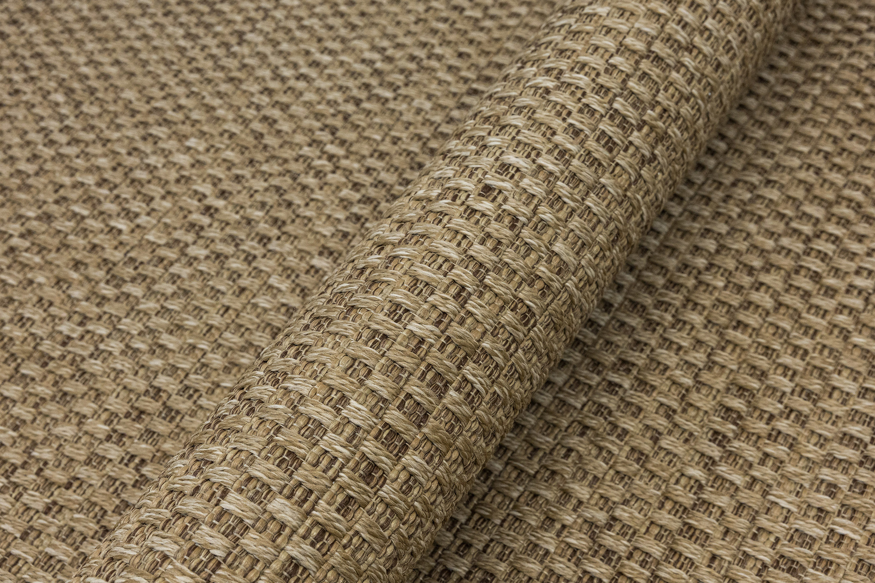 - Dywan sznurkowy Ella z plecionym runem, geometrycznym wzorem w kratkę w odcieniach beżu, brązu i kremu, antypoślizgowym spodem, który może być stosowany zarówno wewnątrz jak i na zewnątrz.