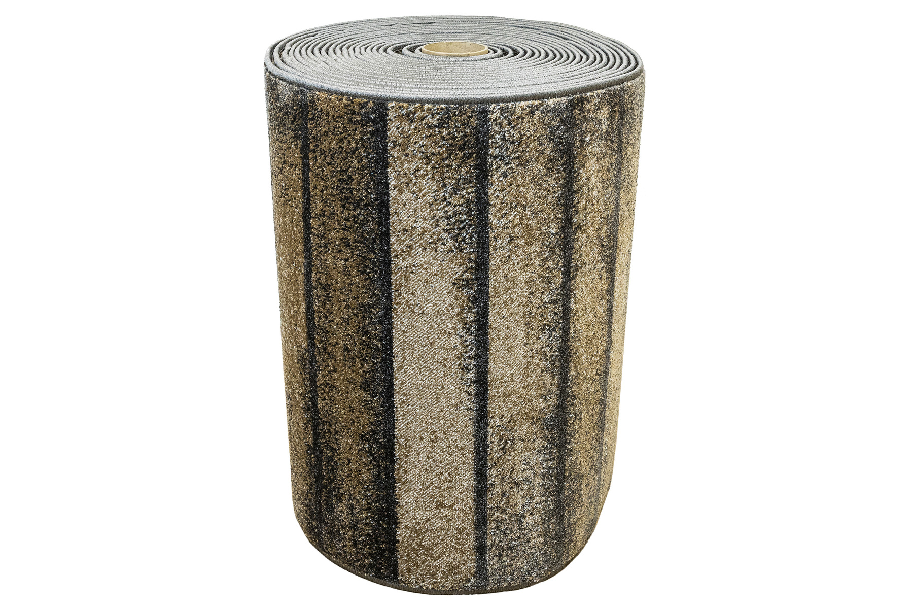 - Miękki i przyjemny w dotyku chodnik dywanowy Rainbow o lśniącym runie ozdobionym powtarzalnym wzorem imitującym deski w szarościach, kremie, beżu ze spodem wykończonym jutą.