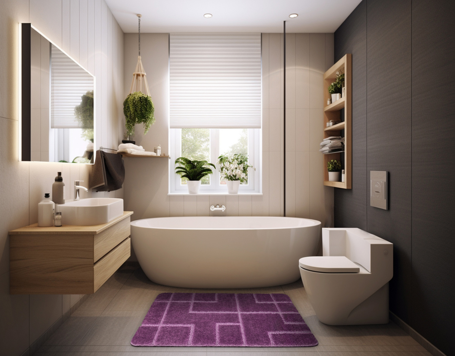 Dywanik Łazienkowy Antypoślizgowy Inez Violet Fioletowy Geometria