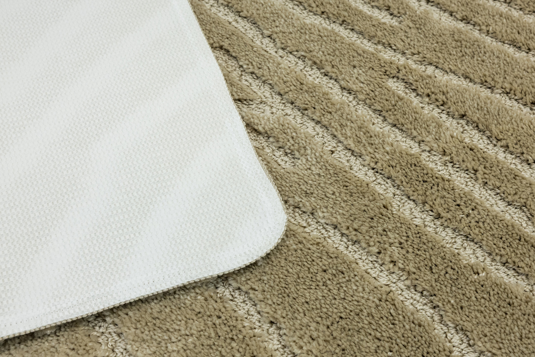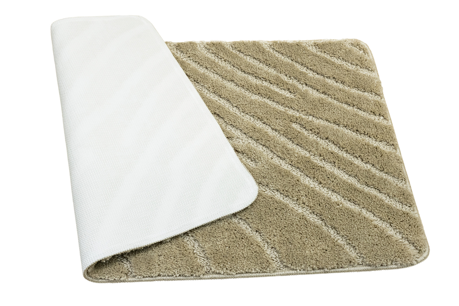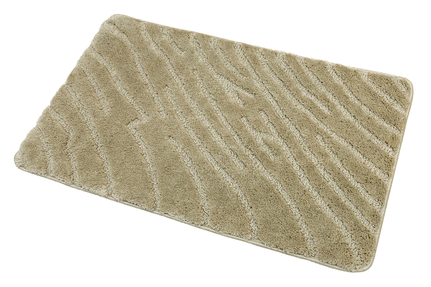 - Dywanik łazienkowy Otis o miękkim i przyjemnym w dotyku, dwupoziomowym runie w beżu, ze wzorem w fale i antypoślizgowym spodem.