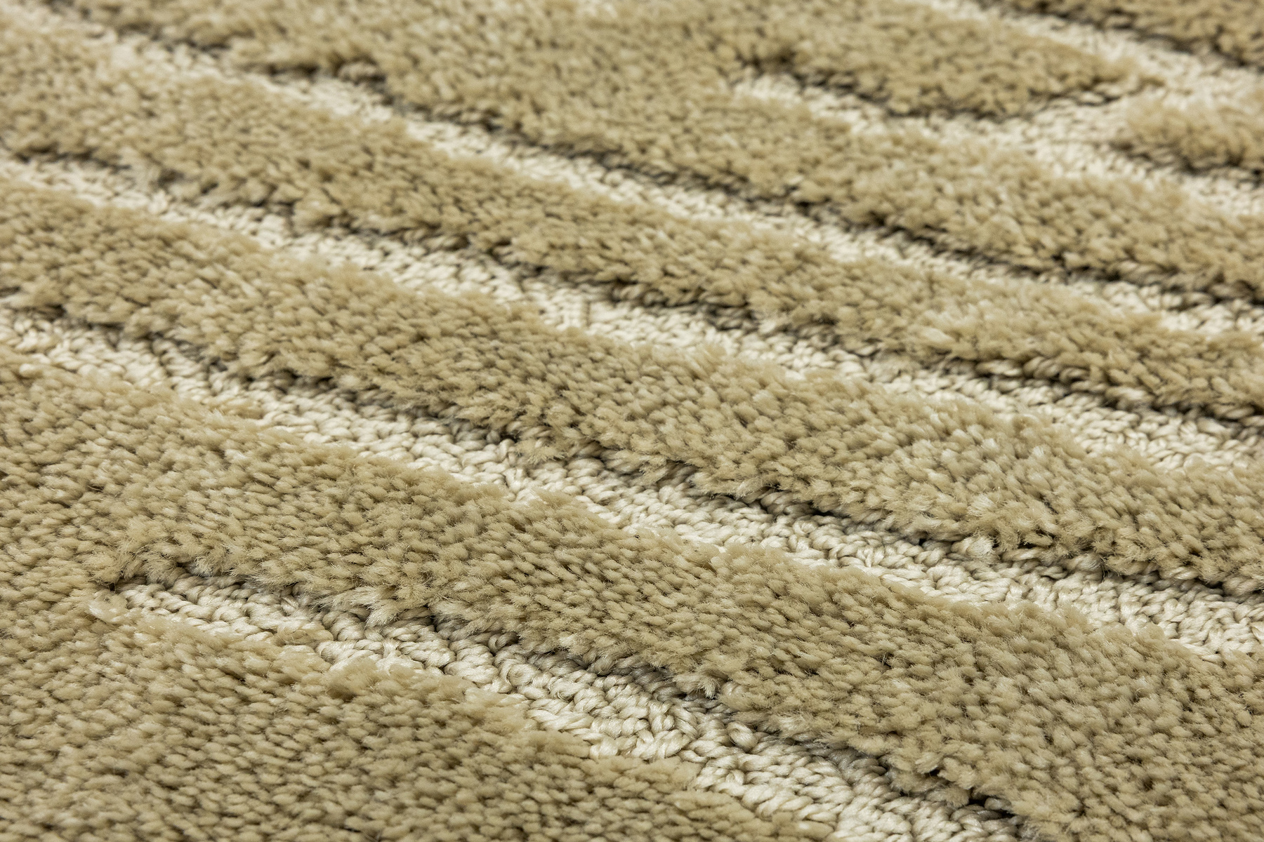 Niższe, pętelkowe runo o wysokości 12 mm nadaje wzorom głębi i trójwymiarowości, podkreślając ich nowoczesny charakter.