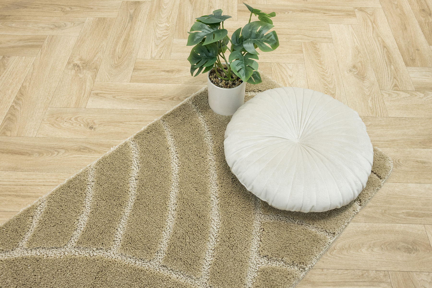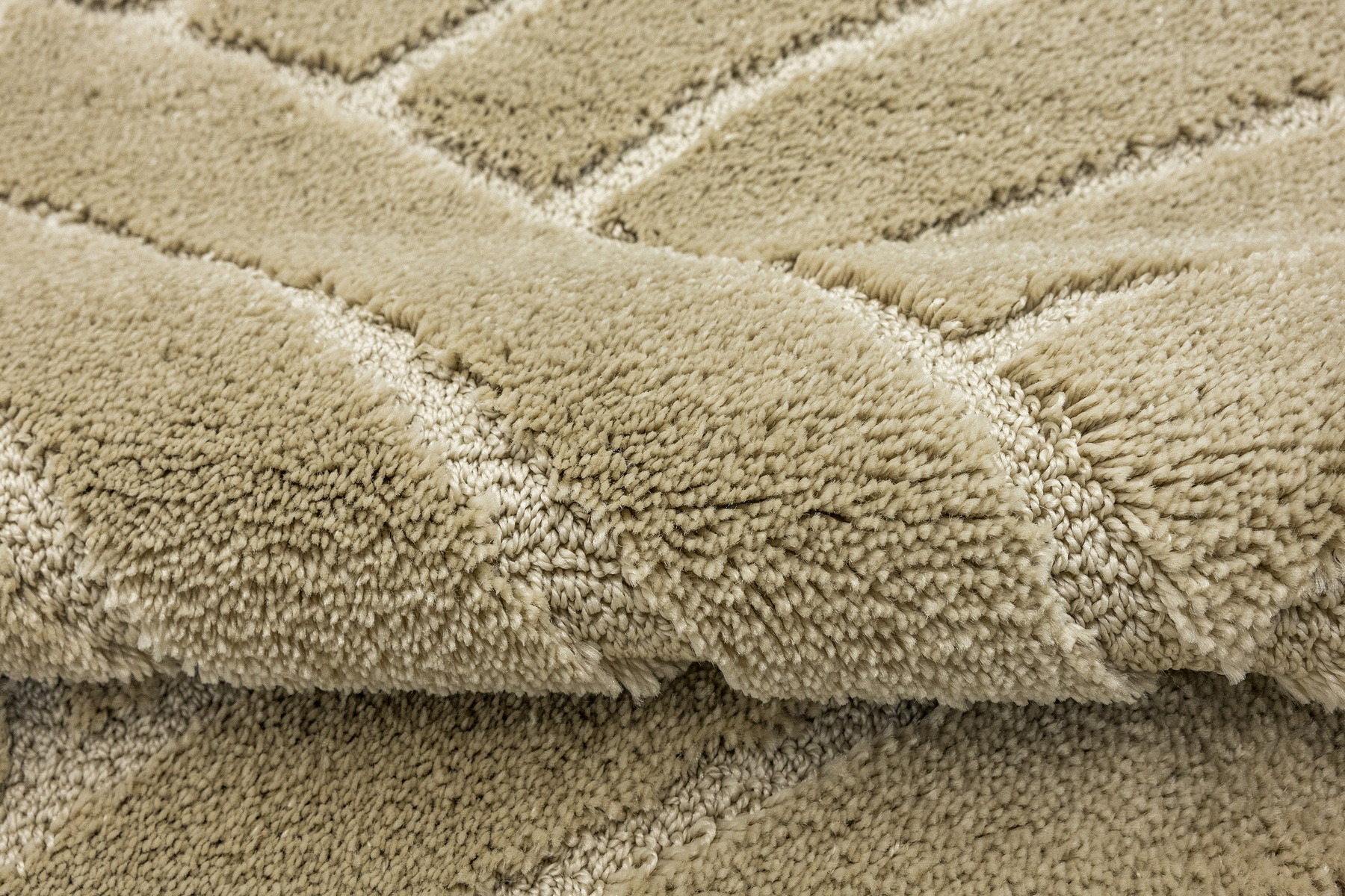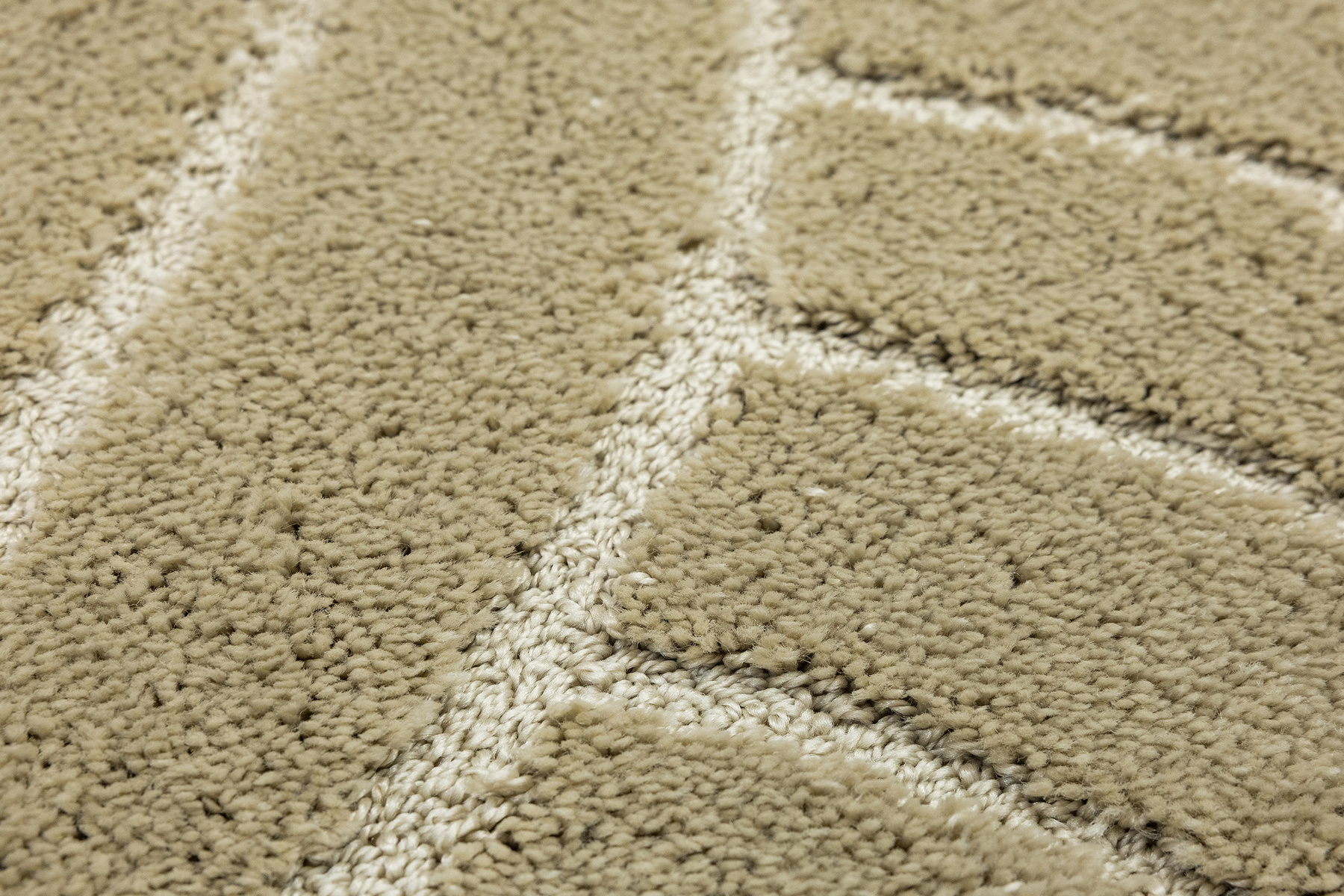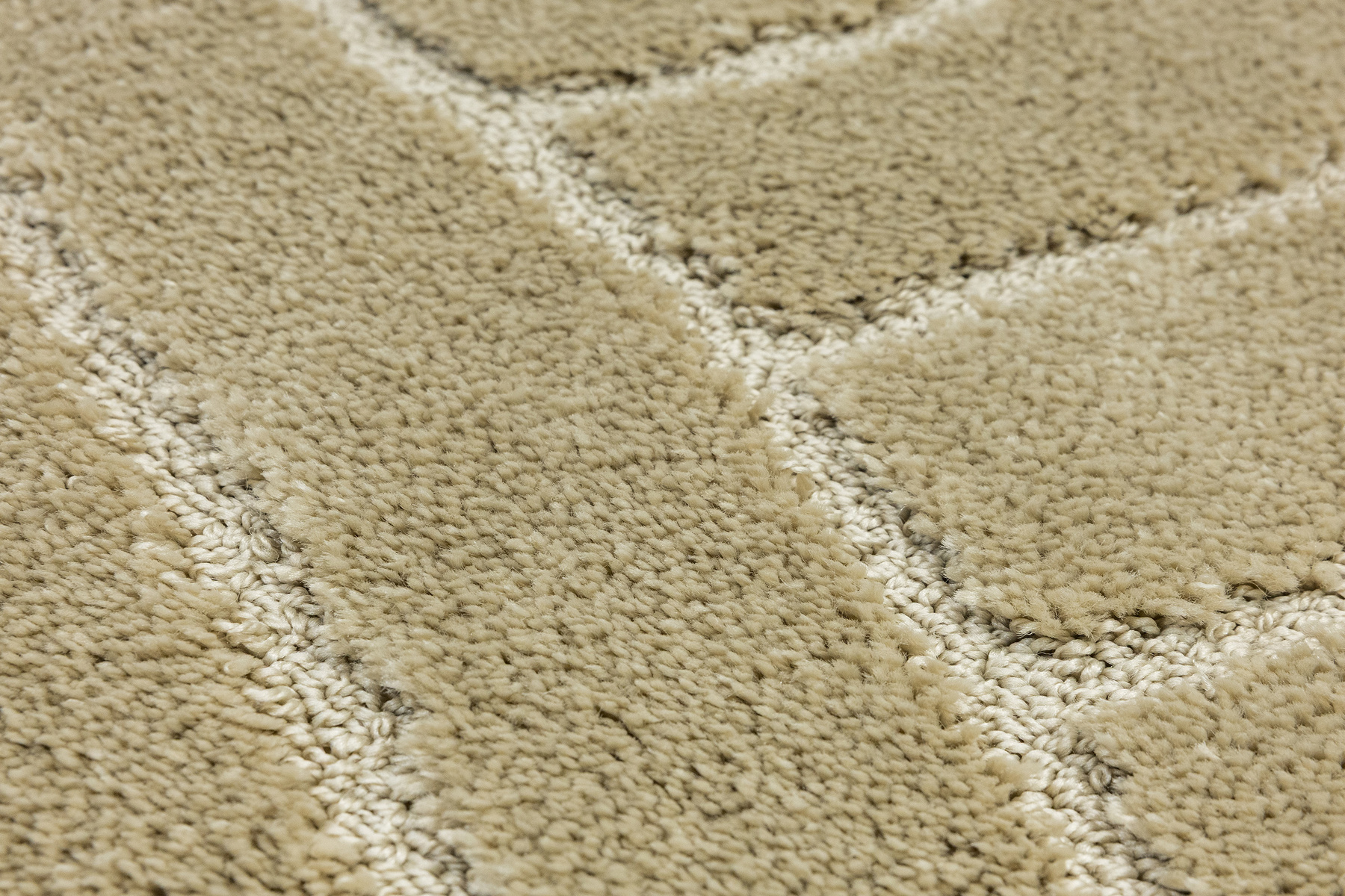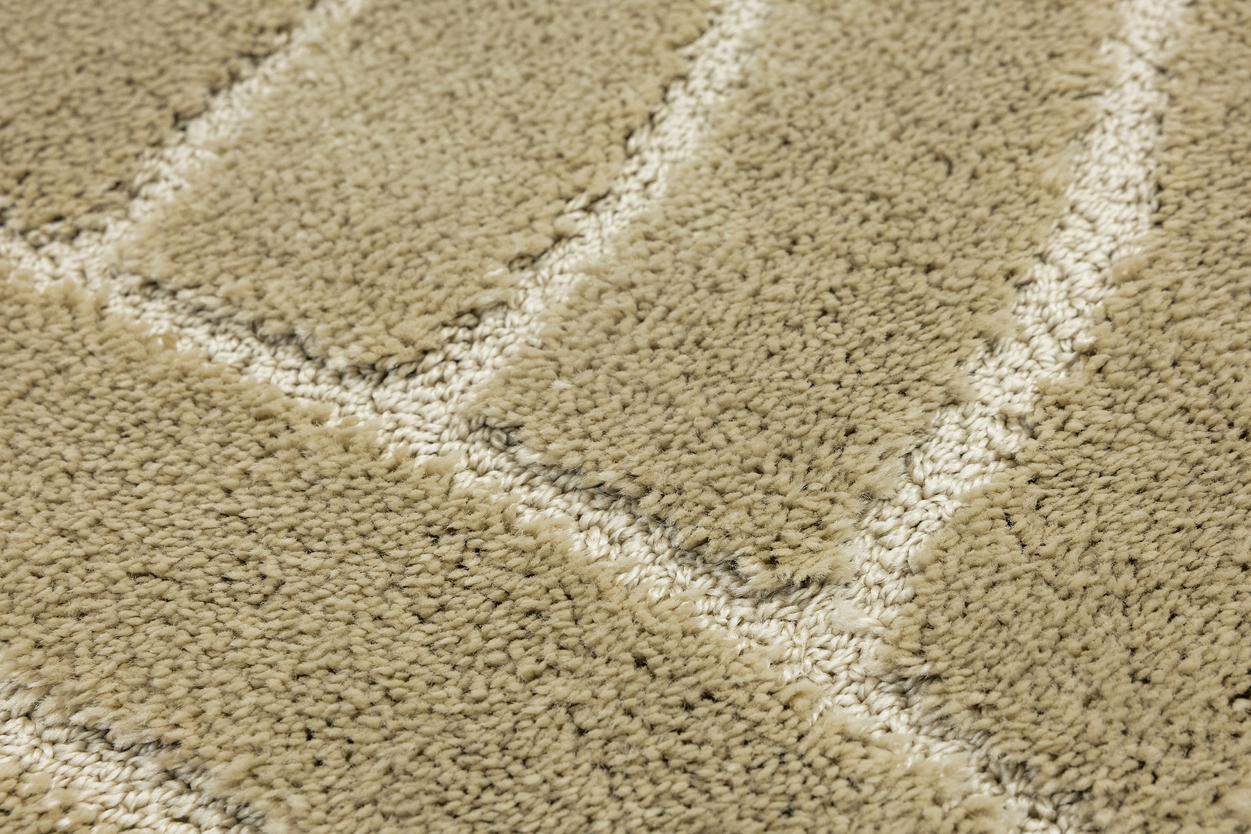 Niższe, pętelkowe runo o wysokości 12 mm nadaje wzorom głębi i trójwymiarowości, podkreślając ich nowoczesny charakter.