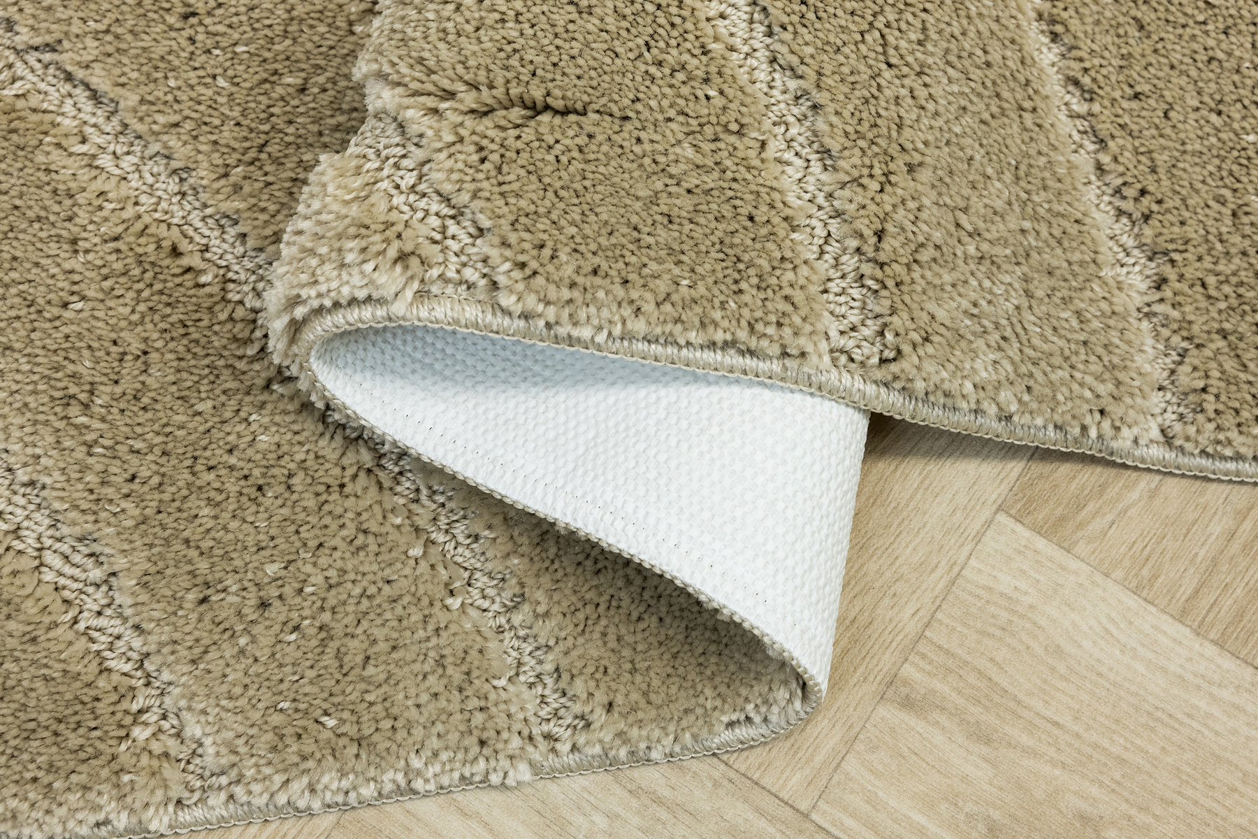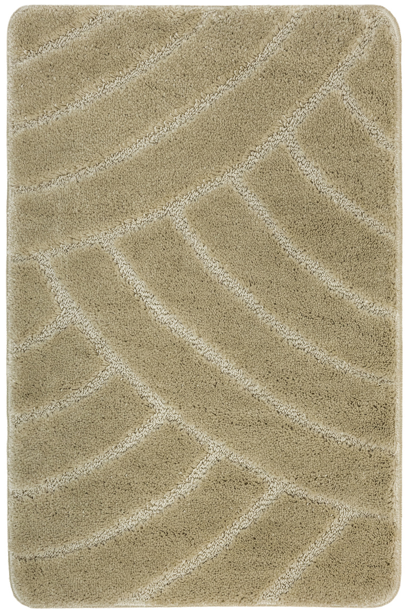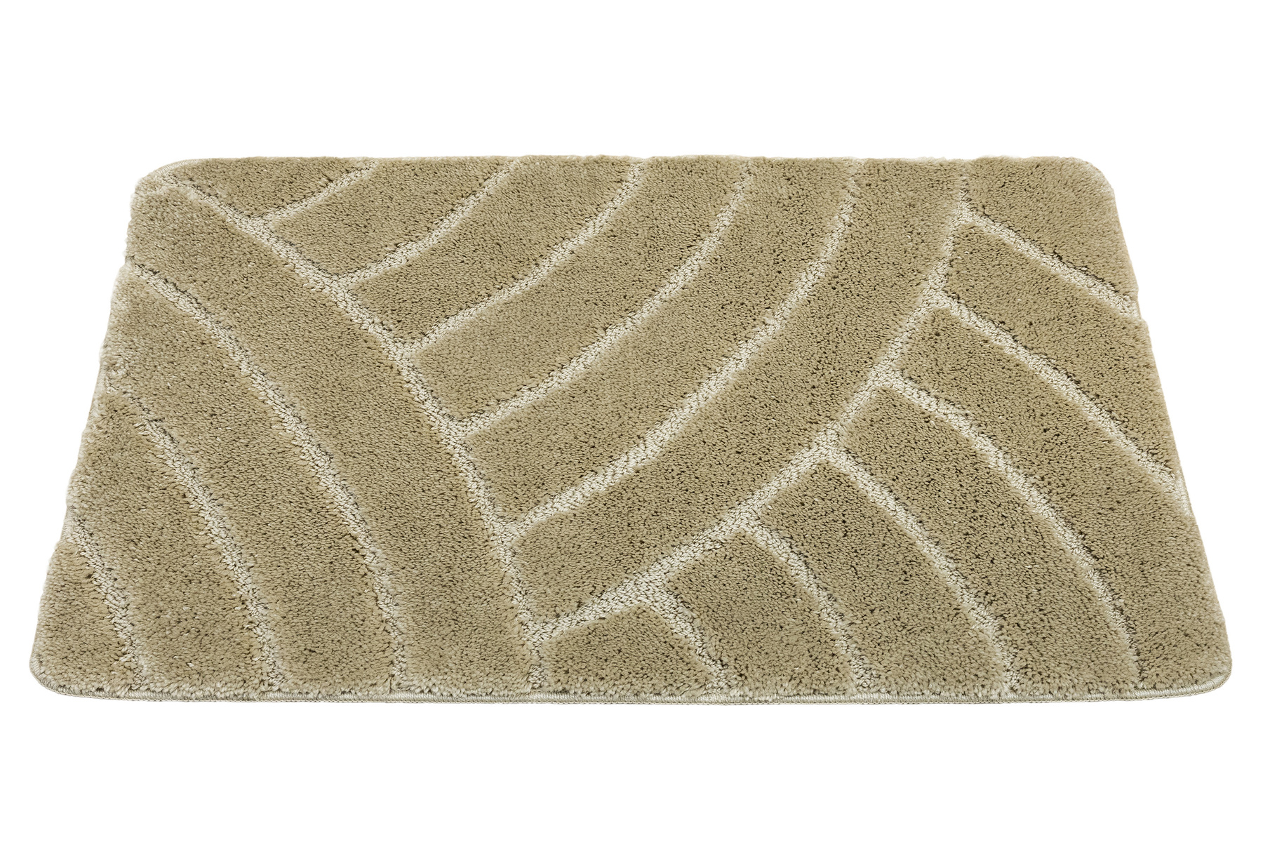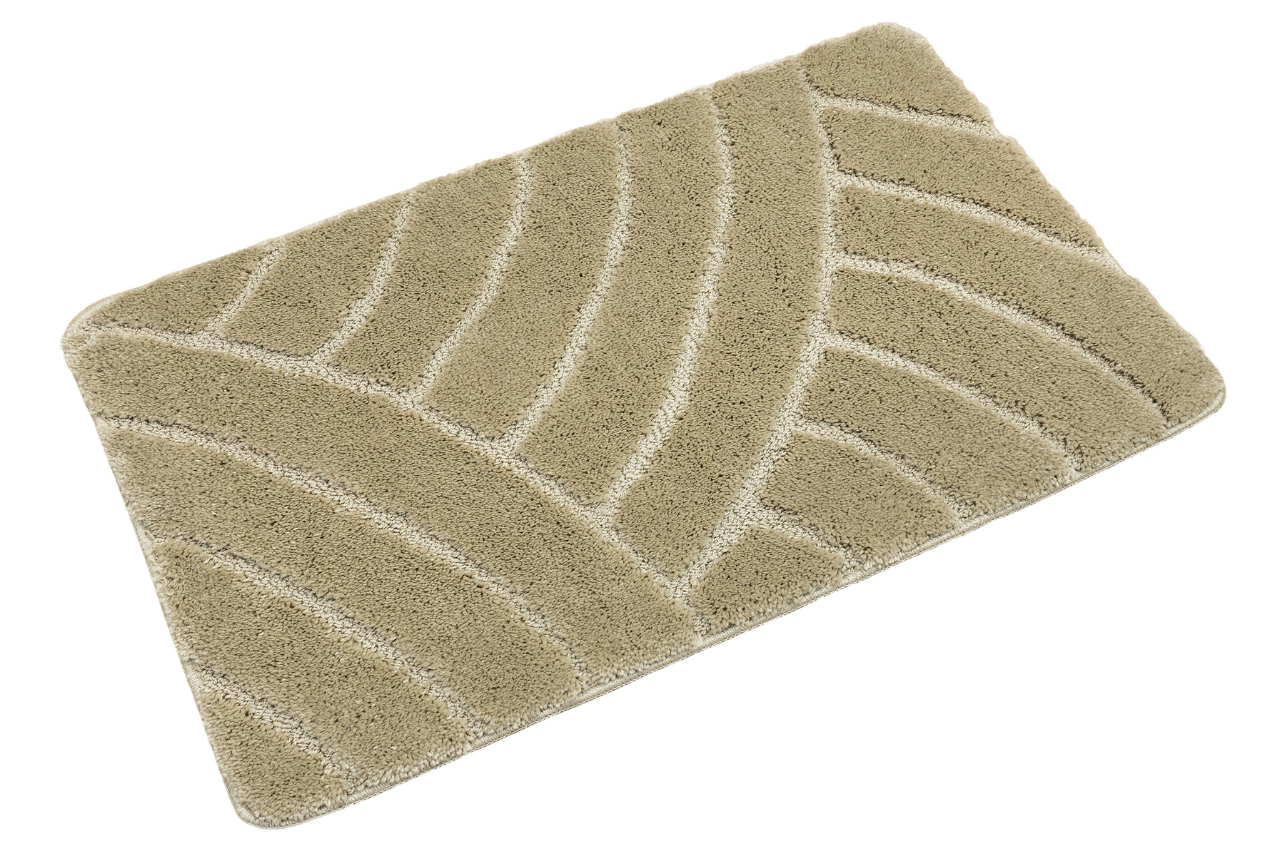 - Dywanik łazienkowy Sash o miękkim i przyjemnym w dotyku, dwupoziomowym runie w odcieniu beżu, ze wzorem w pasy i antypoślizgowym spodem.