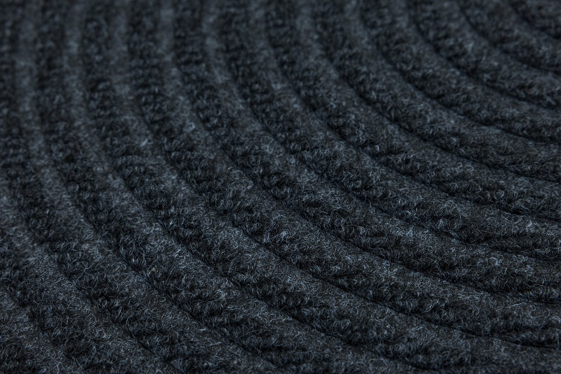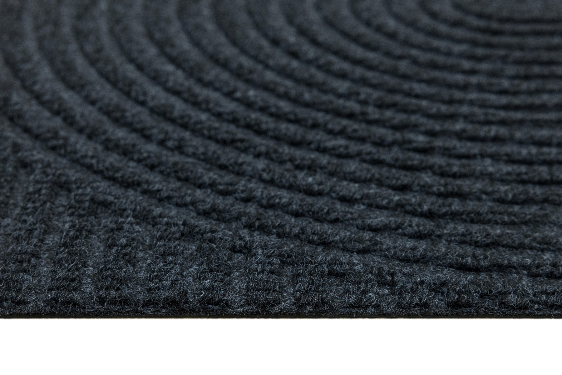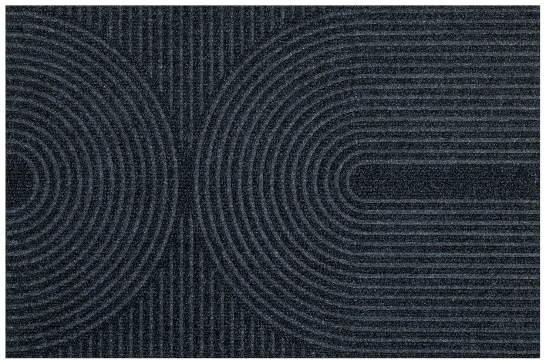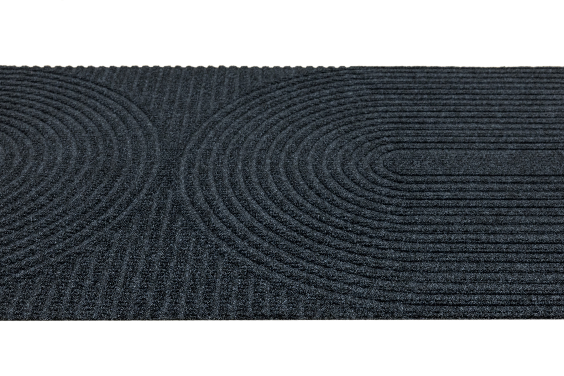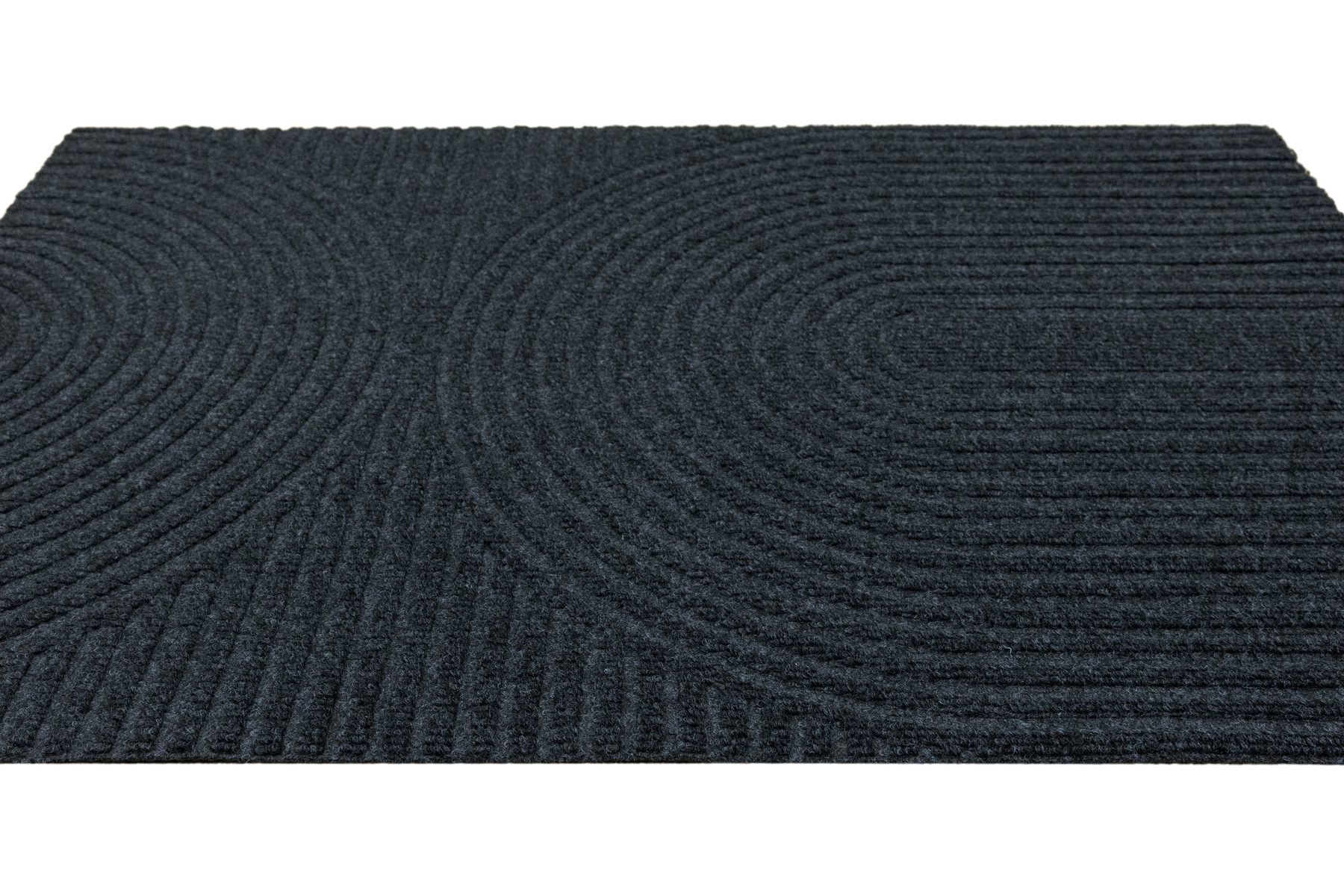 • Antypoślizgowa wycieraczka Tłoczona z podgumowanym spodem i tekstylnym runem żebrowanym wzorem w półkola w praktycznych odcieniach grafitowej szarości.