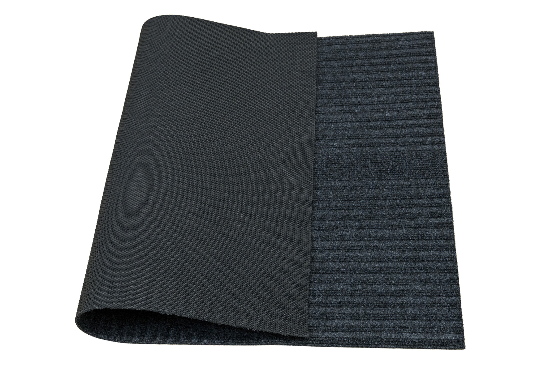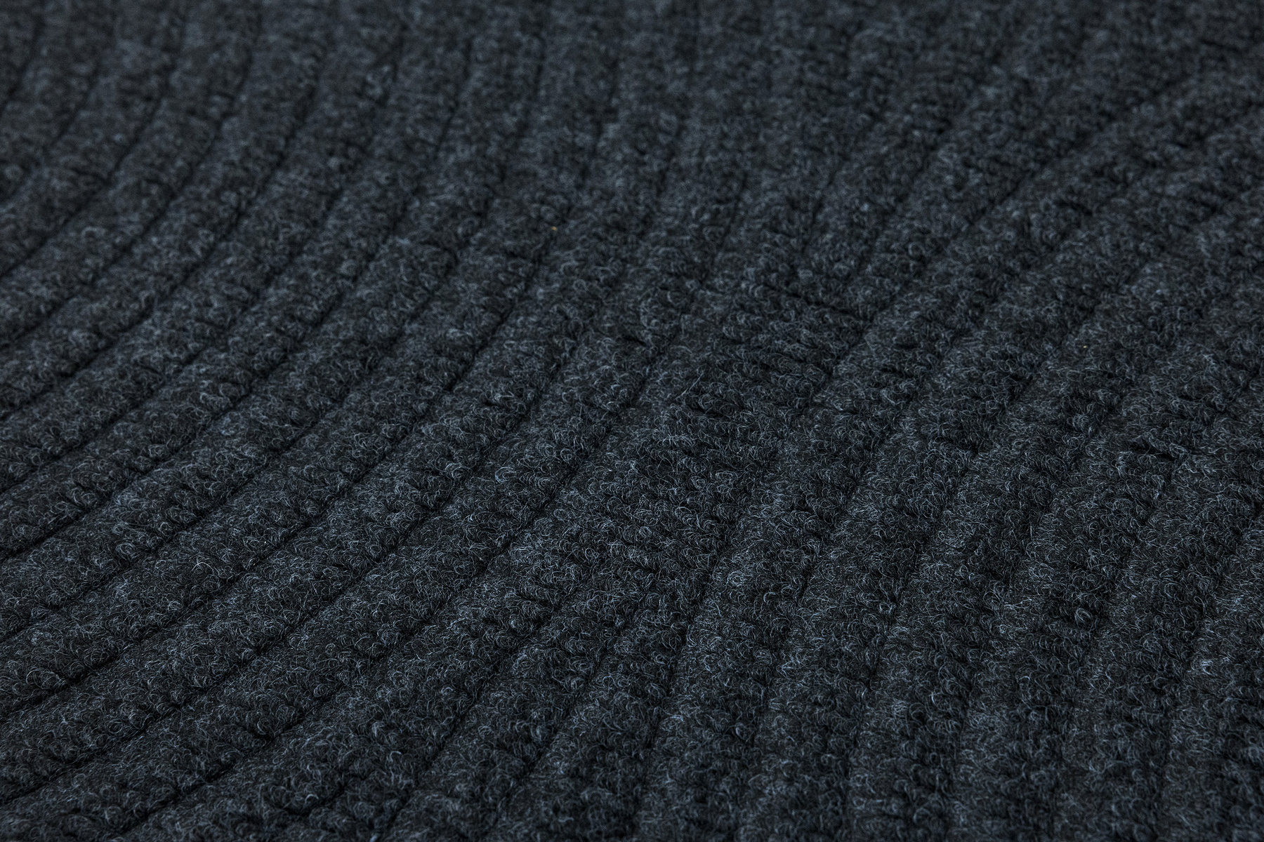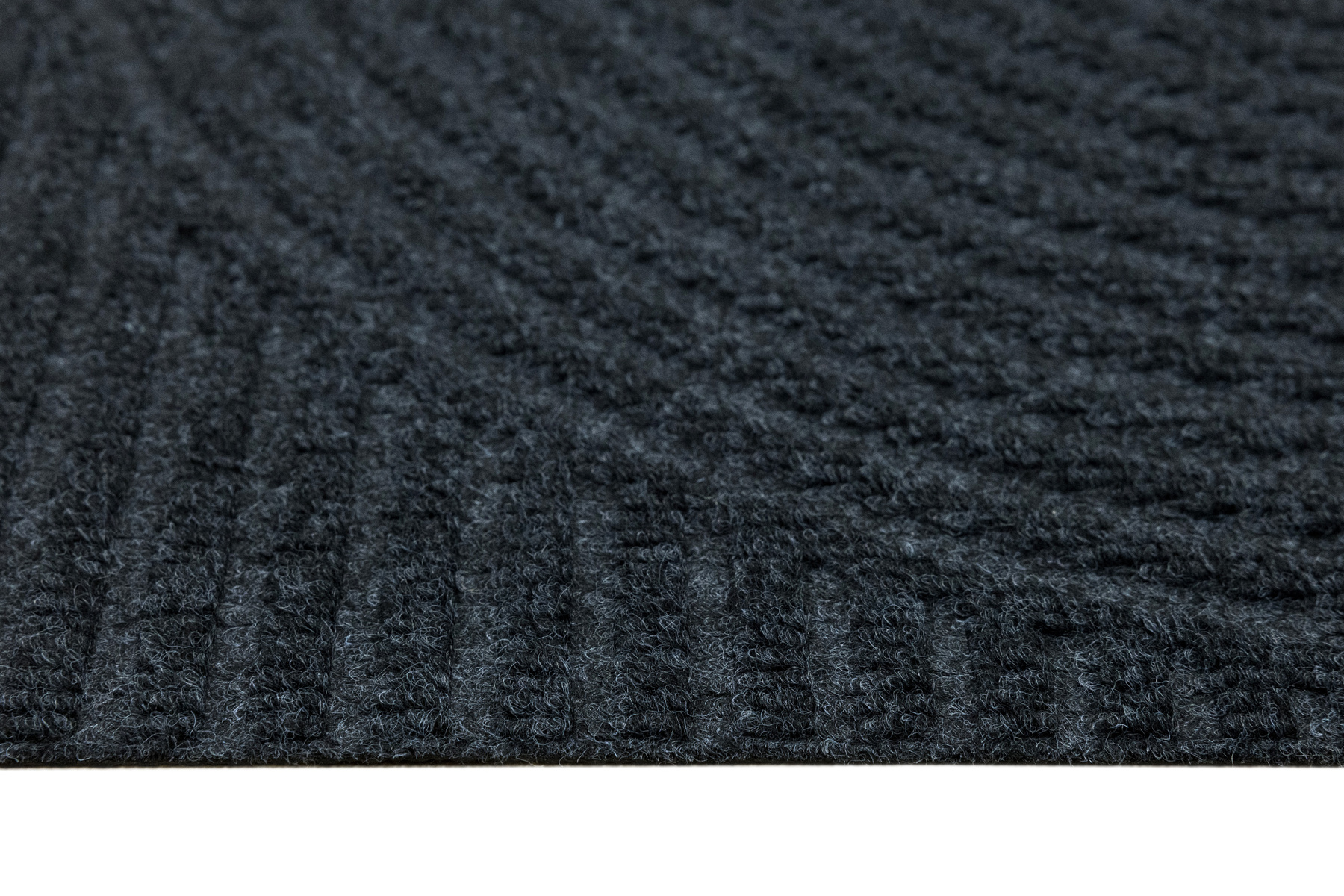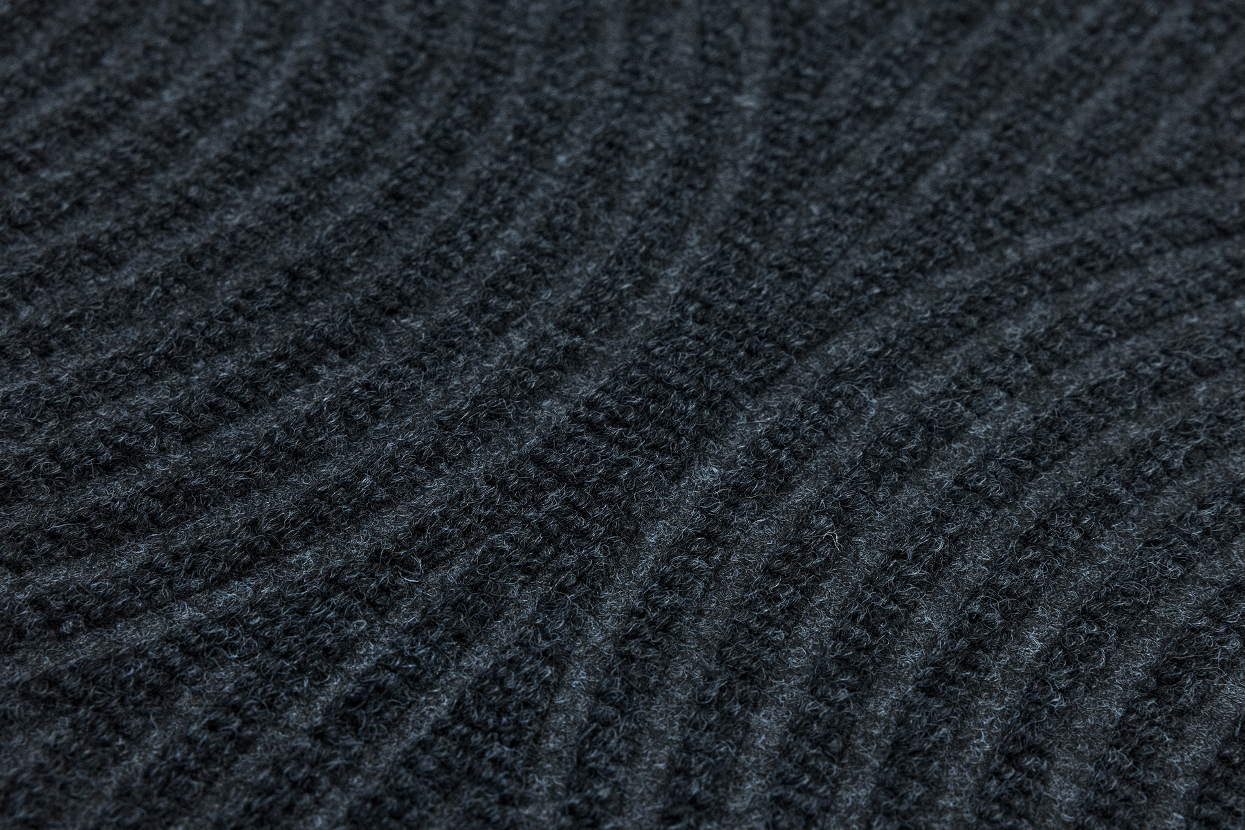 • Antypoślizgowa wycieraczka Tłoczona z podgumowanym spodem i tekstylnym runem żebrowanym wzorem w półkola w praktycznych odcieniach grafitowej szarości.