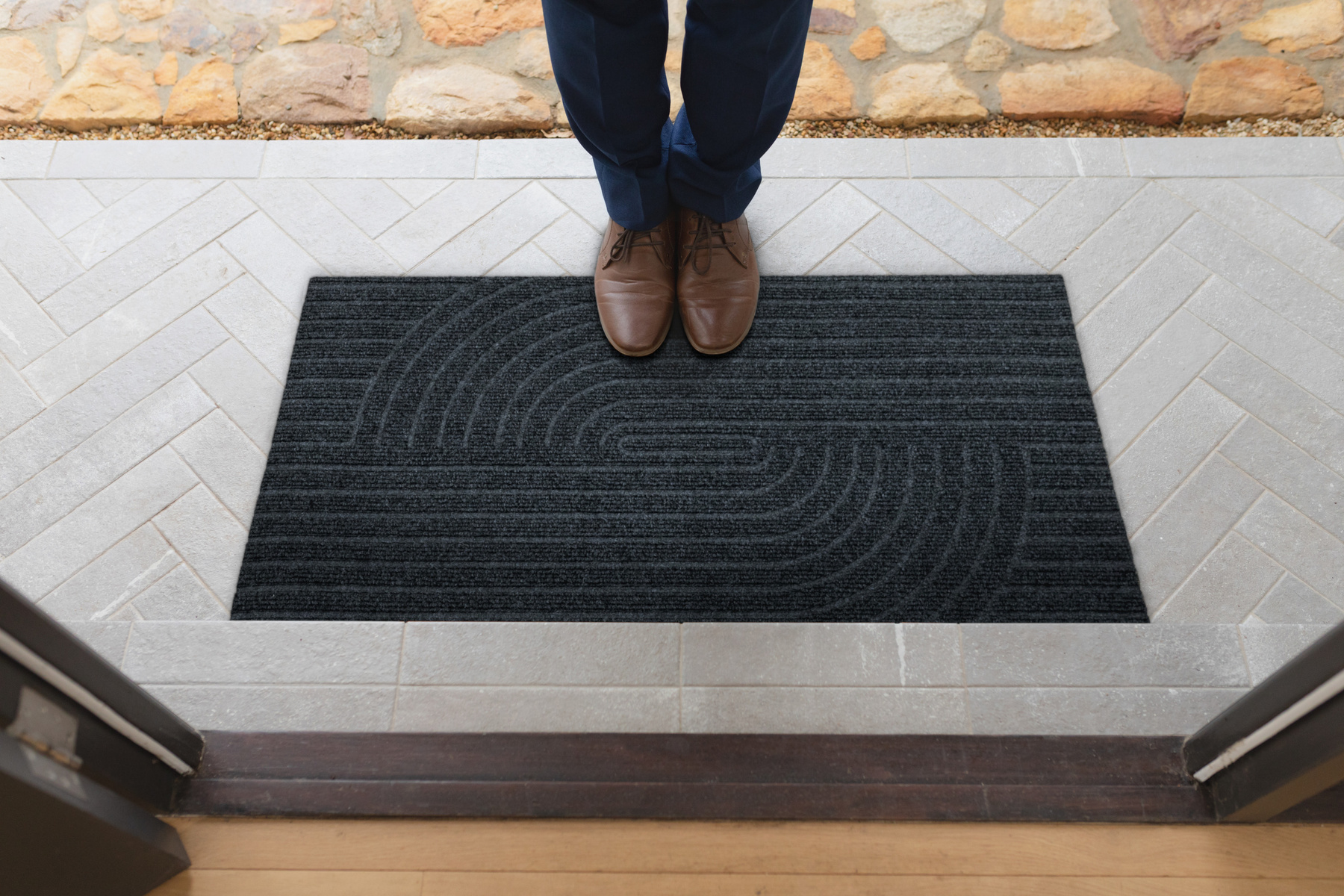 Nadaje wrażenia czystości i schludności przy wejściu do domu, firmy czy biura.