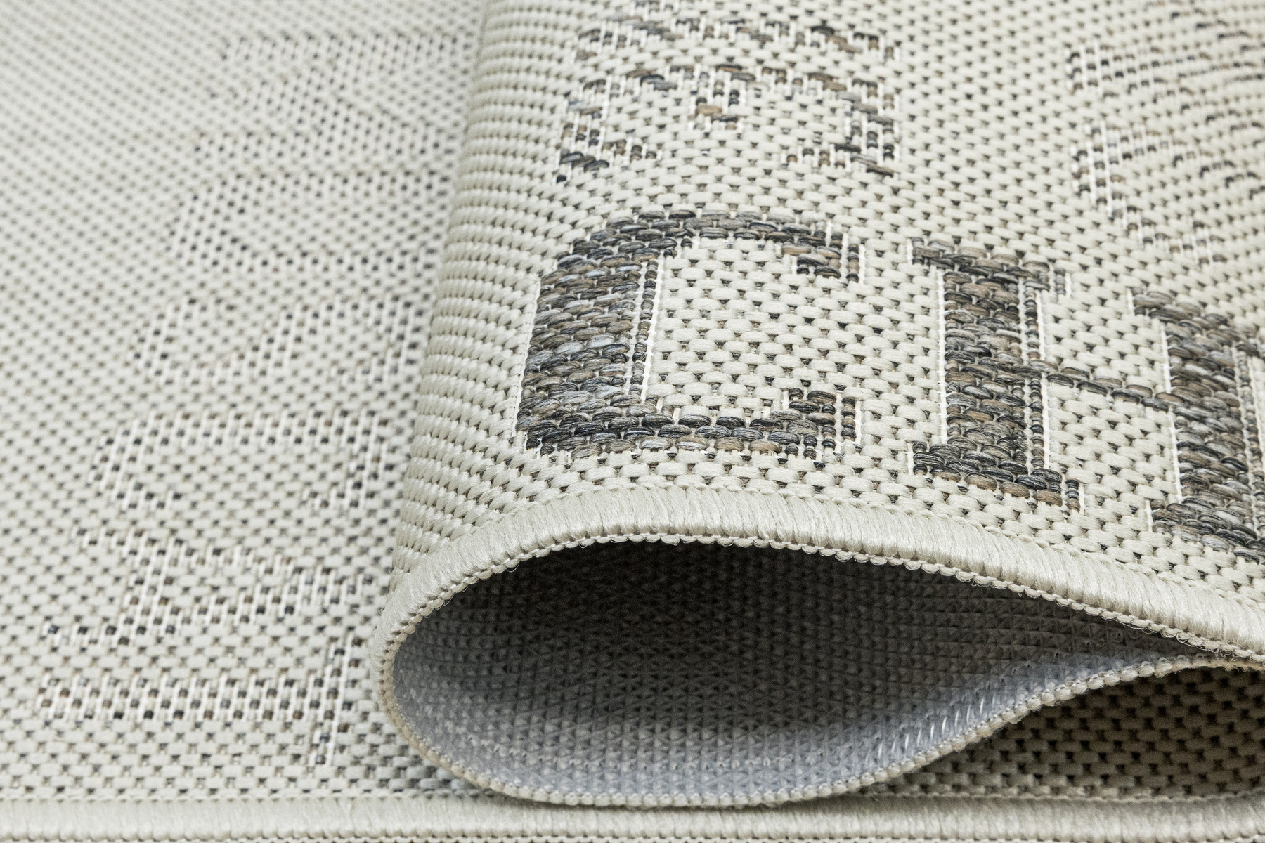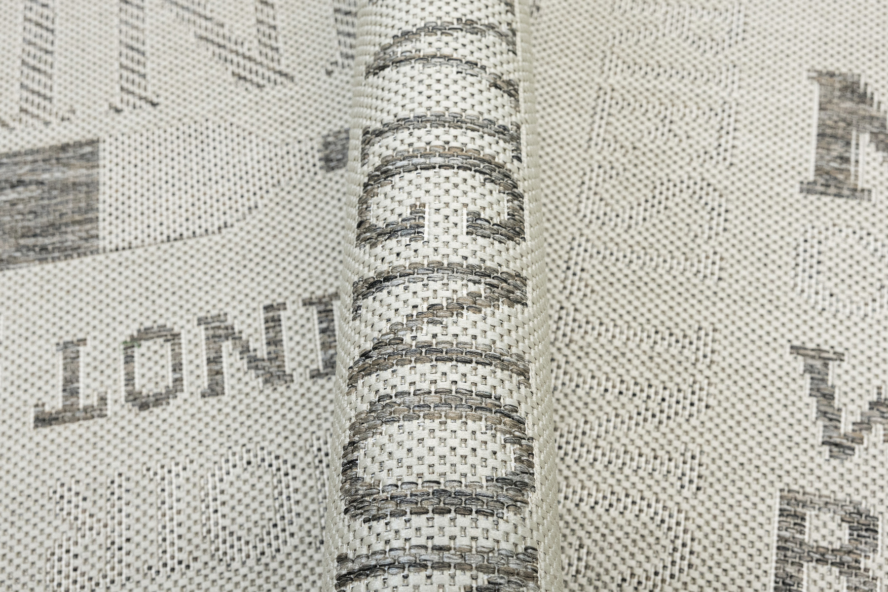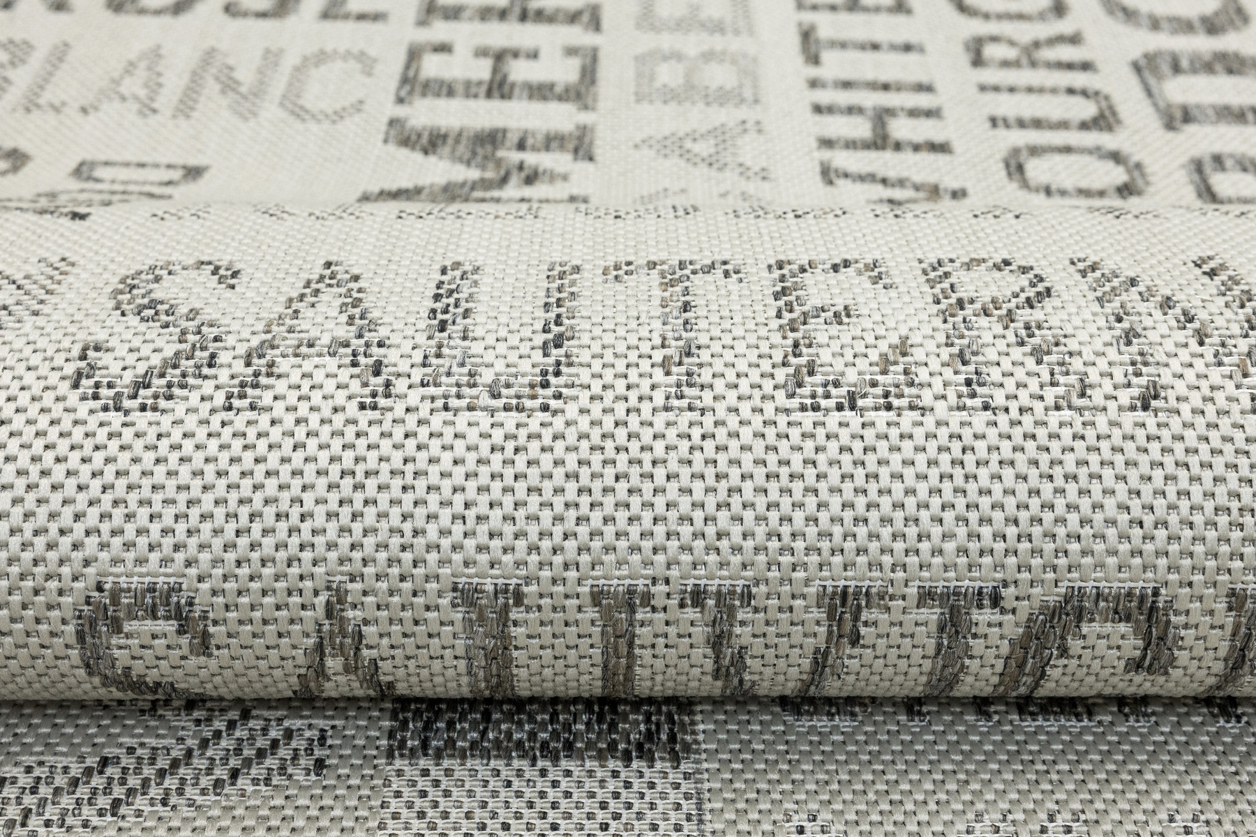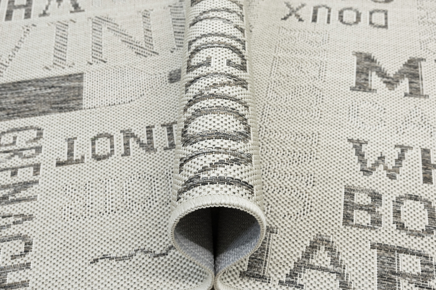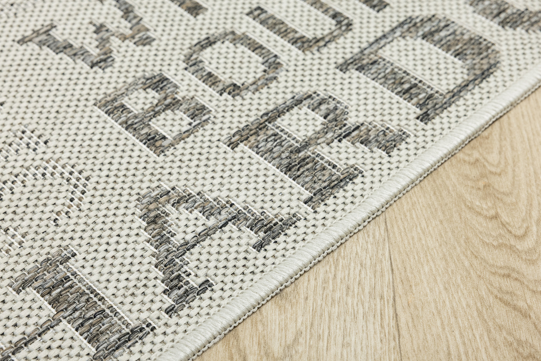 • Podgumowany, antypoślizgowy, sznurkowy dywan Flex z napisami i wzorem inspirowanym winem w odcieniach szarości, grafitu, kremu, brązu.