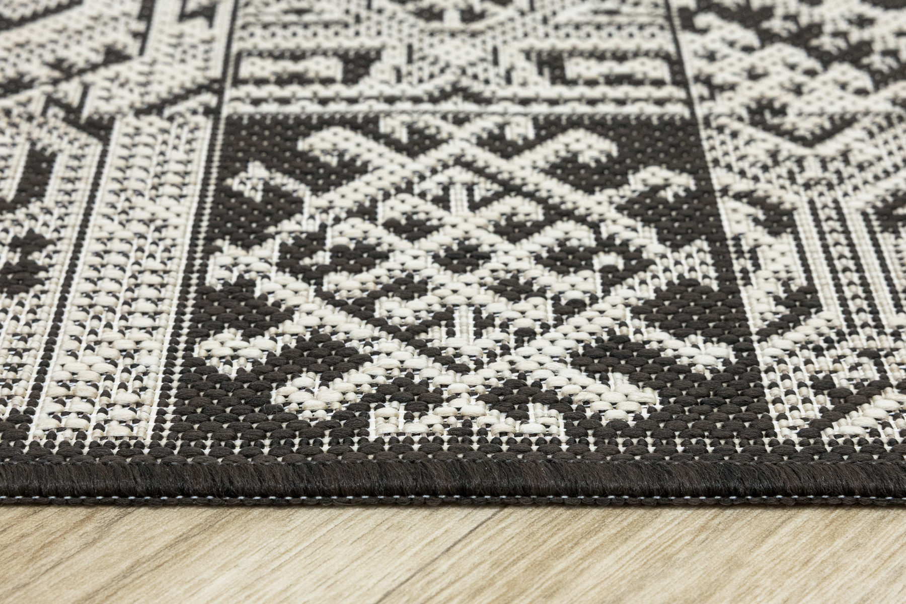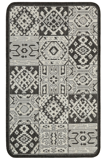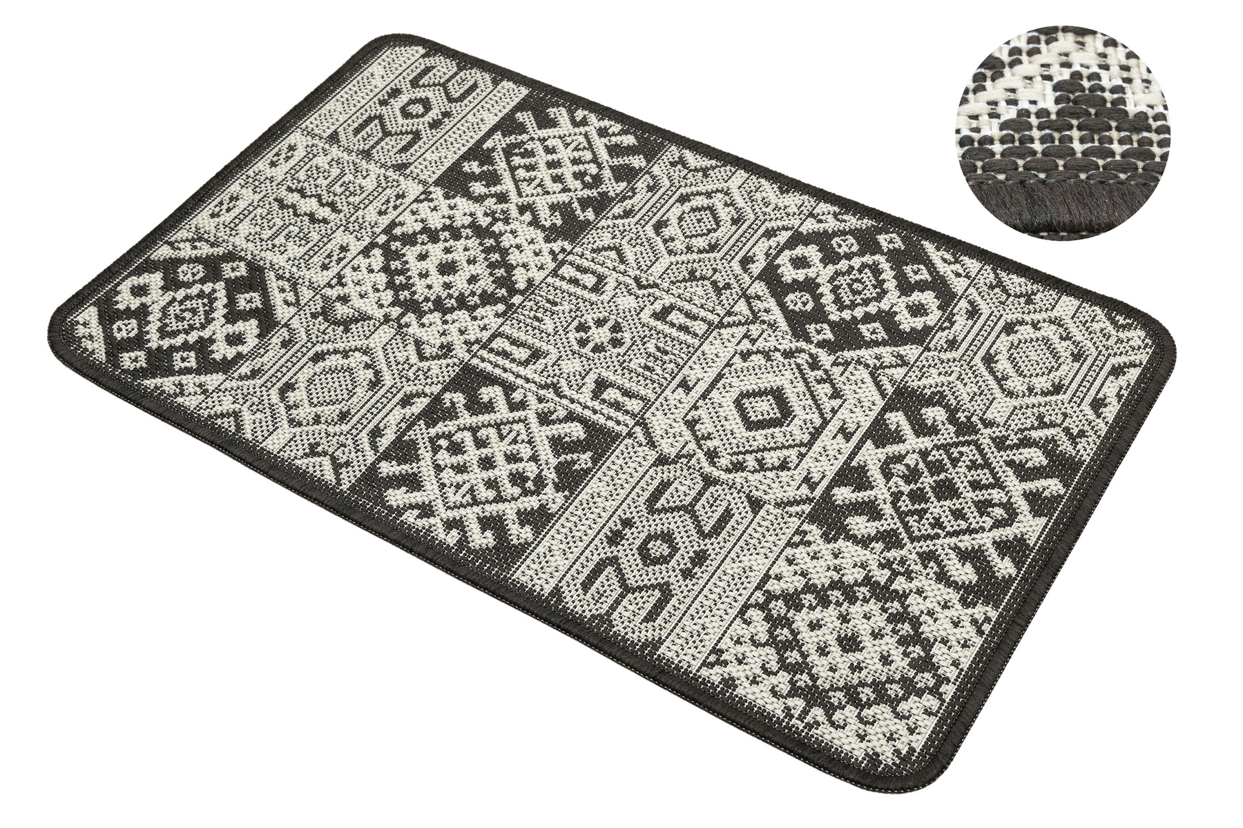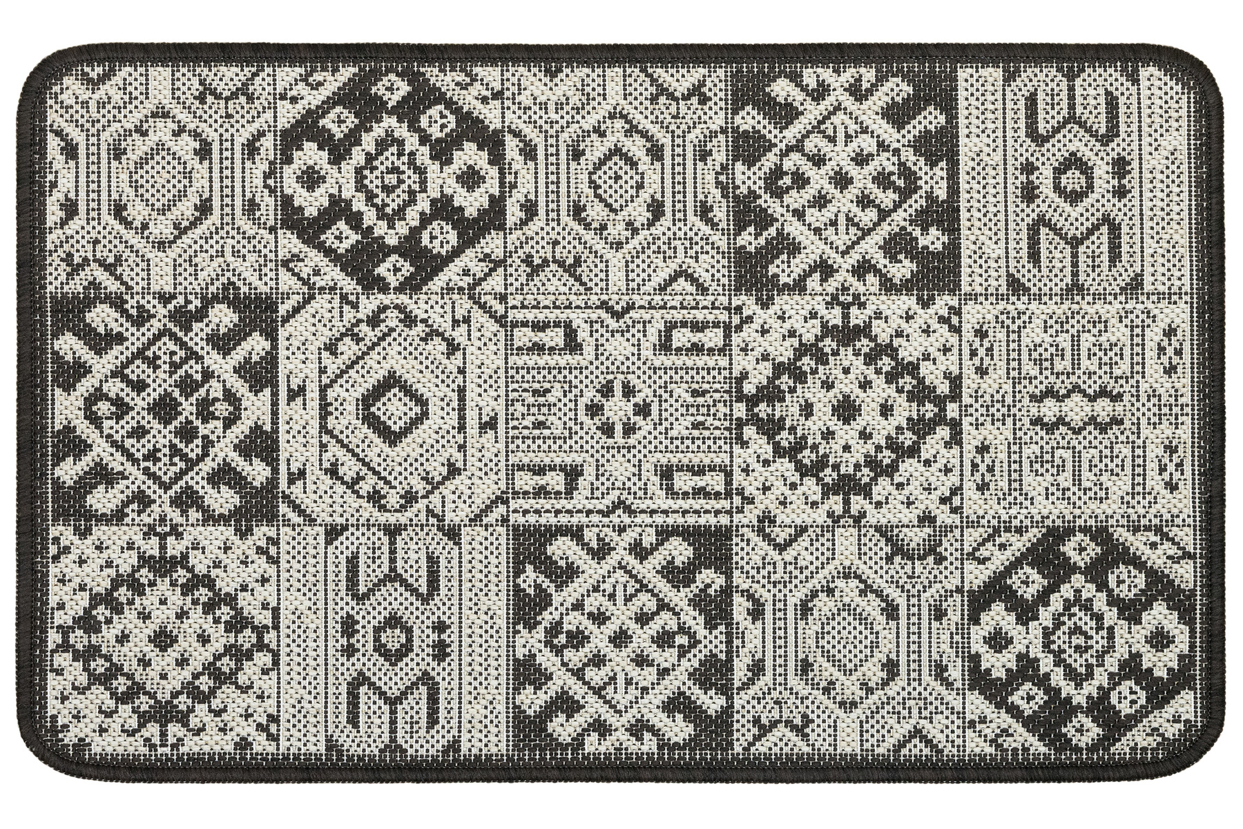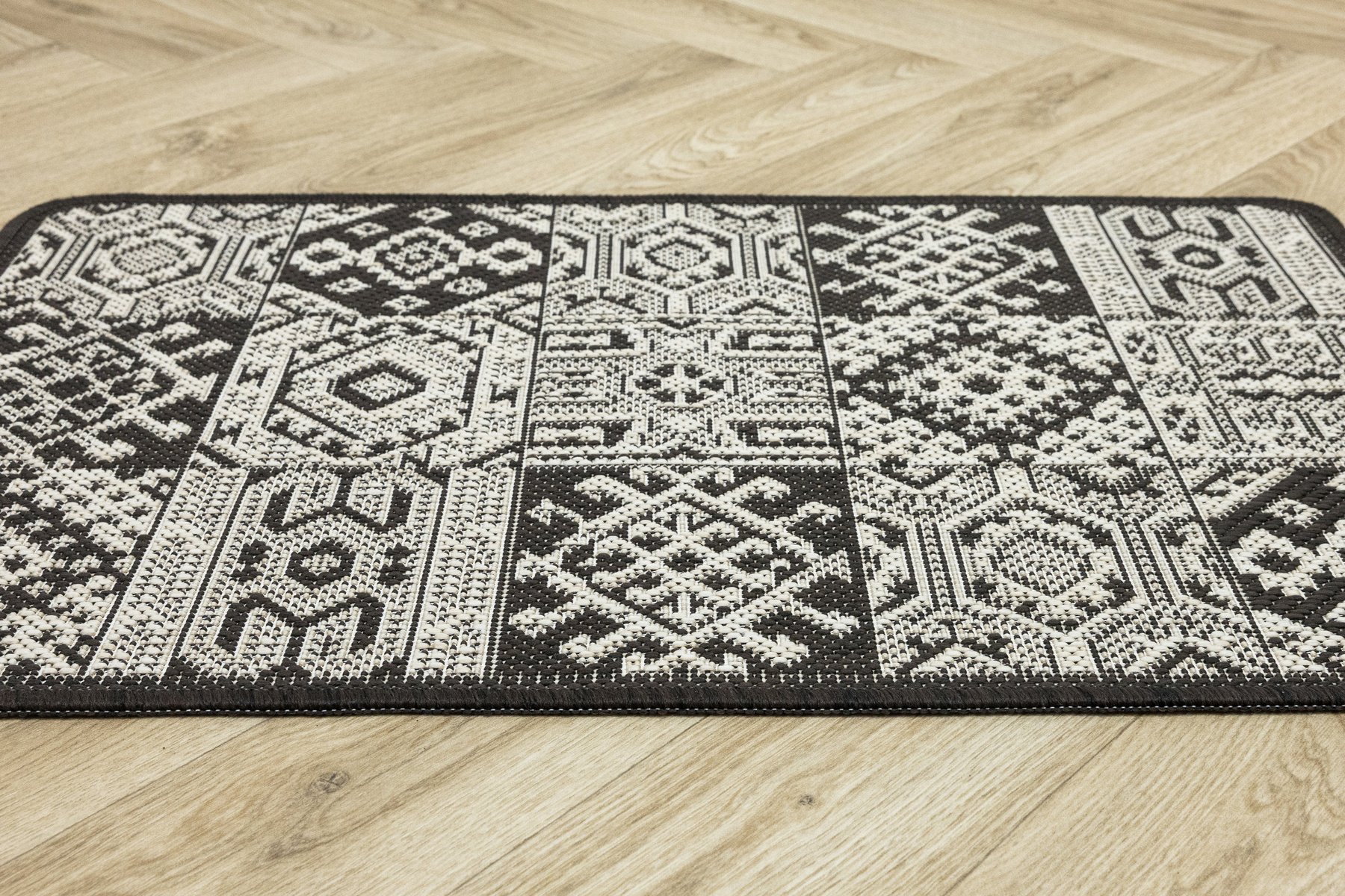 - Podgumowany, antypoślizgowy, sznurkowy dywan Flex ze wzorem w stylu etnicznym, patchworkowym w romby z podgumowanym spodem.