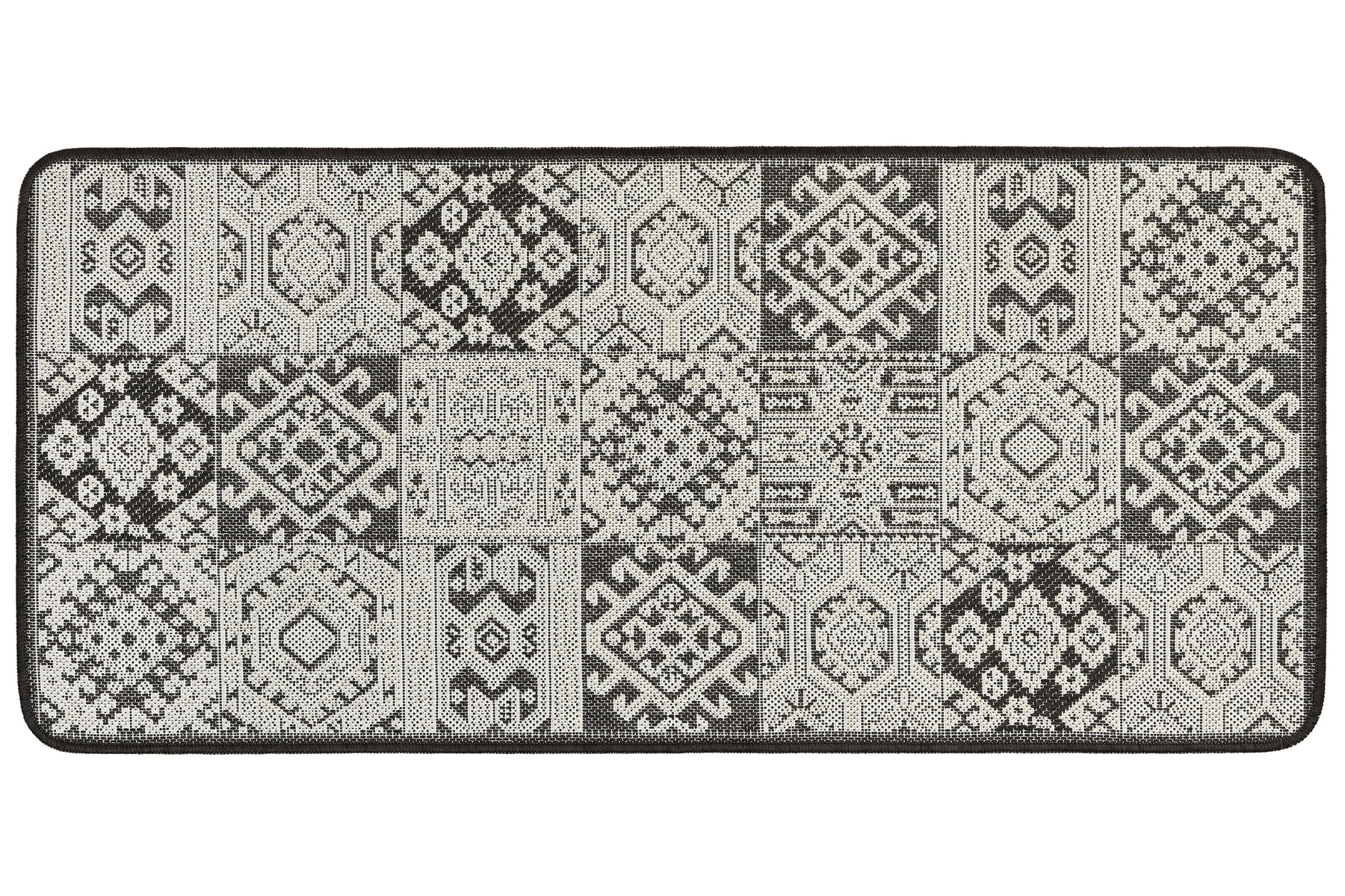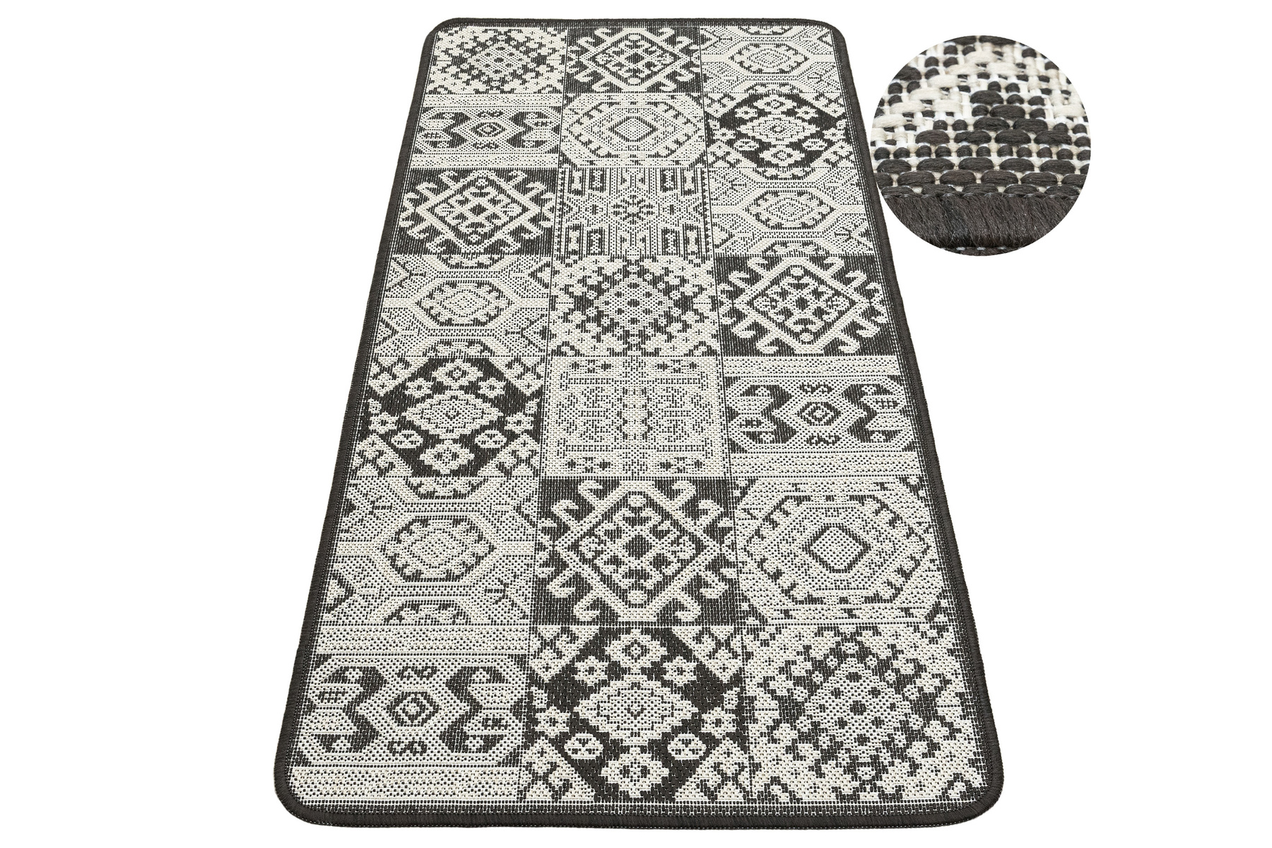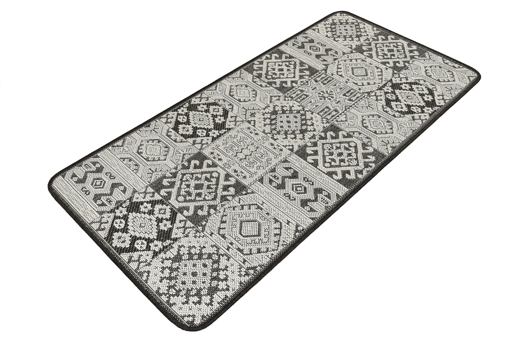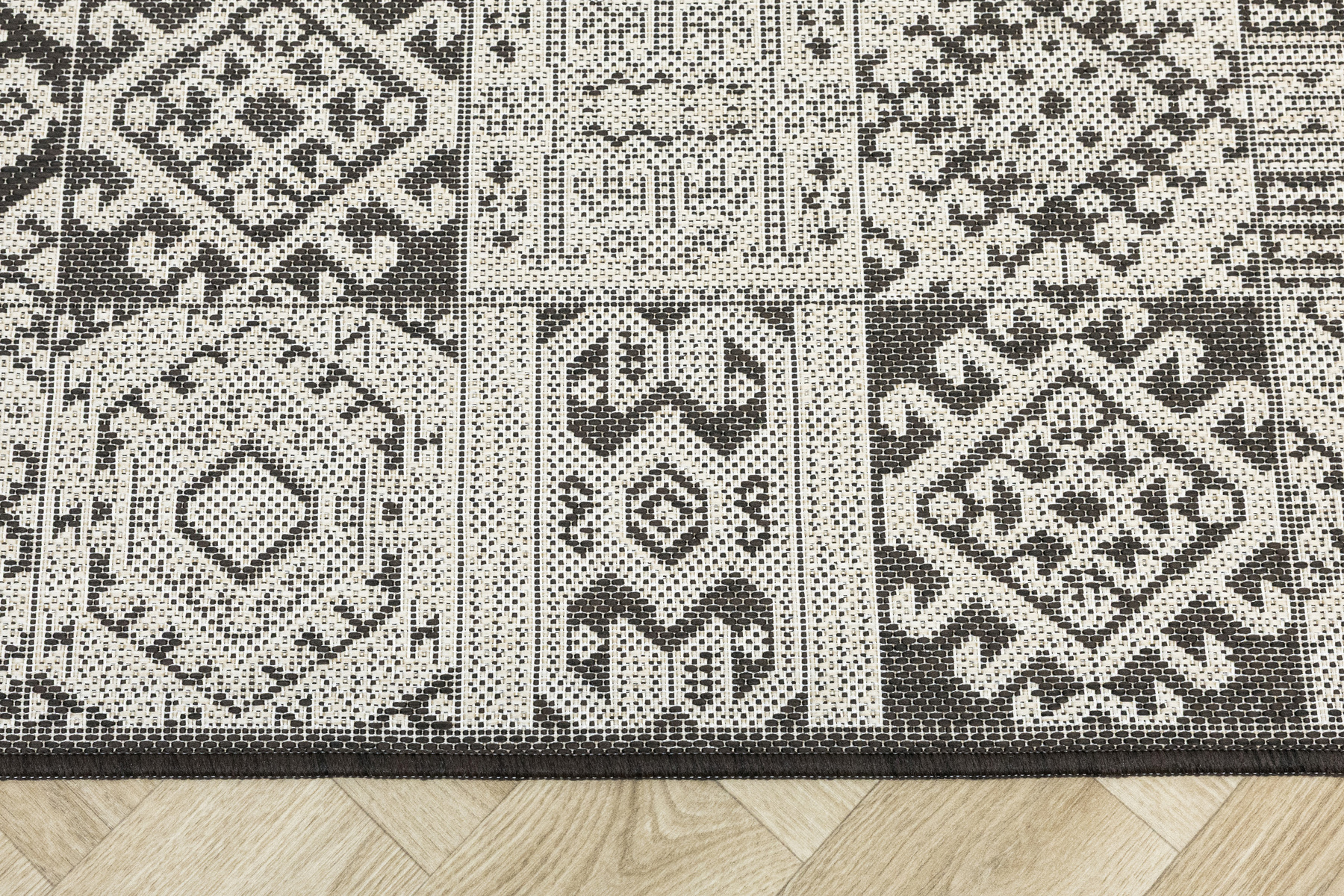 - Podgumowany, antypoślizgowy, sznurkowy dywan Flex ze wzorem w stylu etnicznym, patchworkowym w romby z podgumowanym spodem.