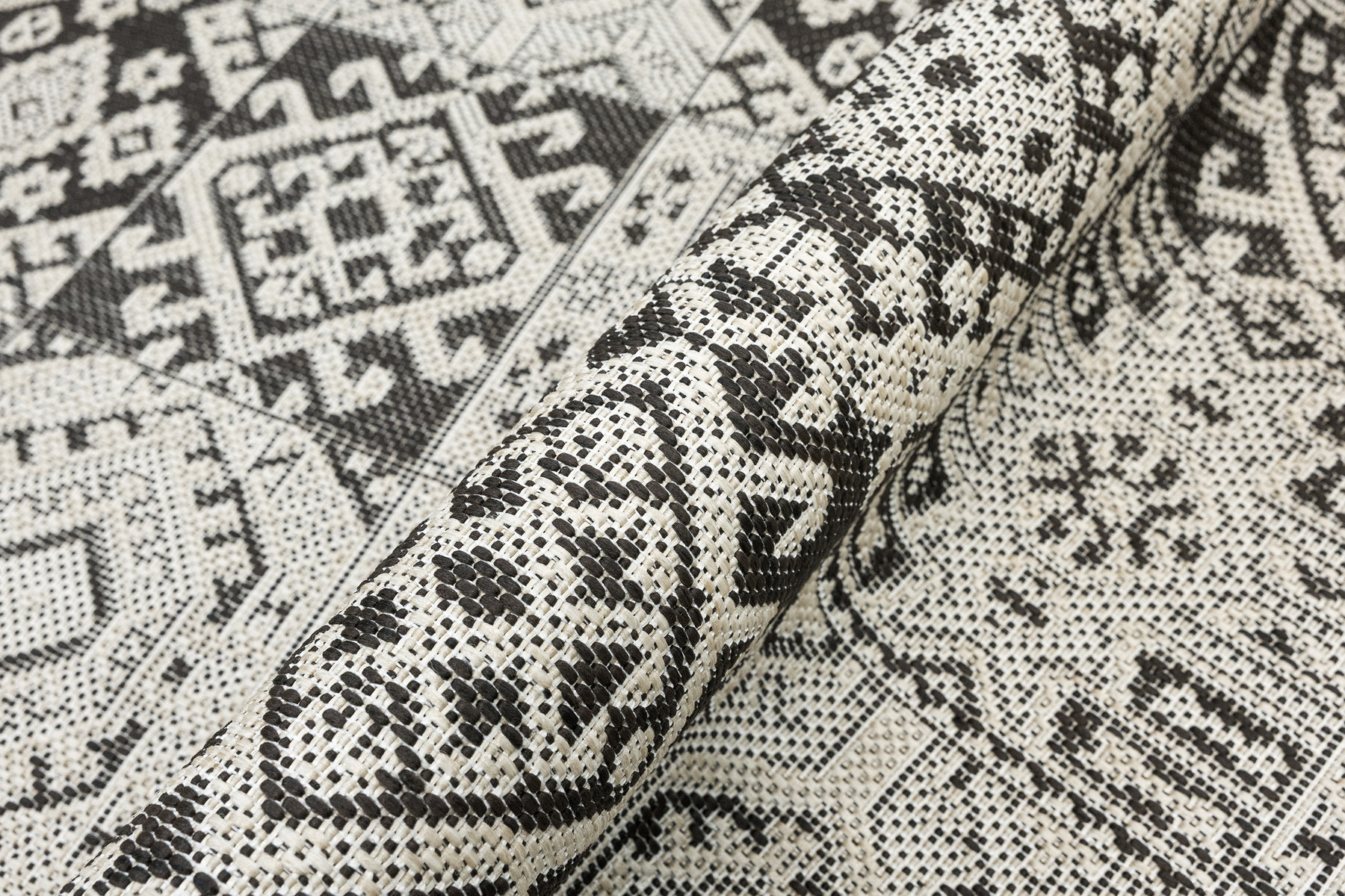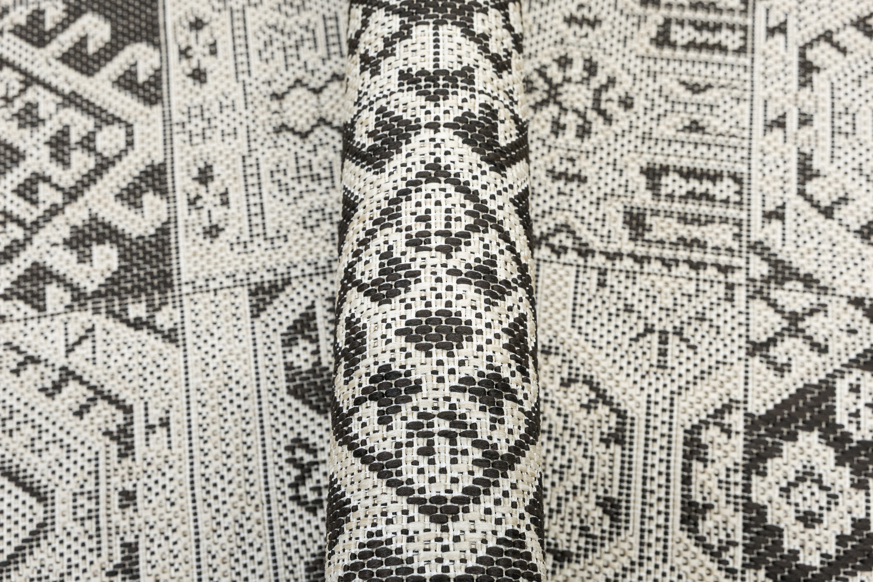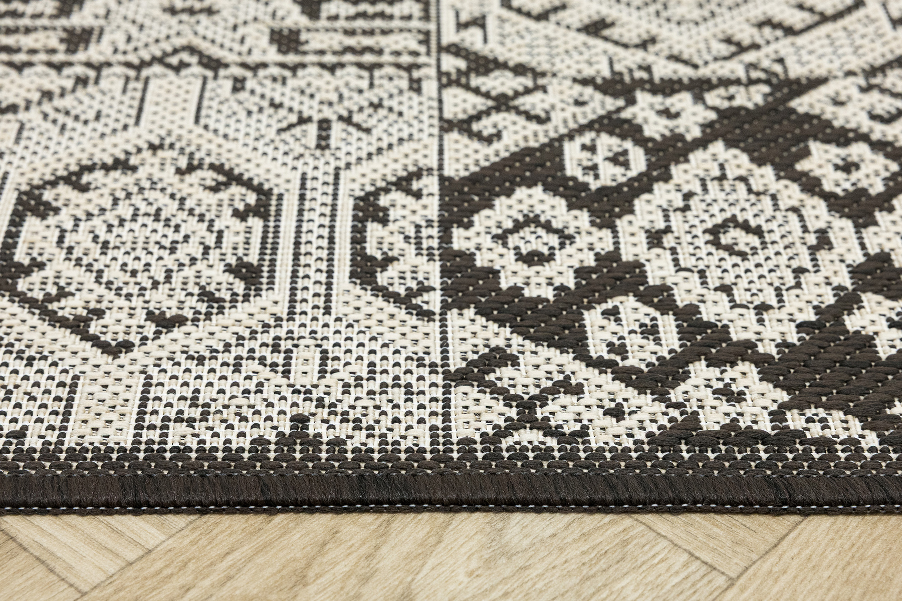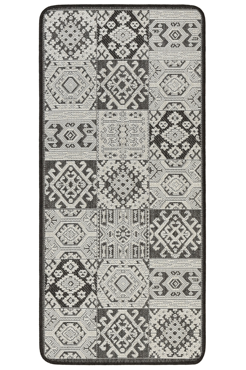 - Podgumowany, antypoślizgowy, sznurkowy dywan Flex ze wzorem w stylu etnicznym, patchworkowym w romby z podgumowanym spodem.