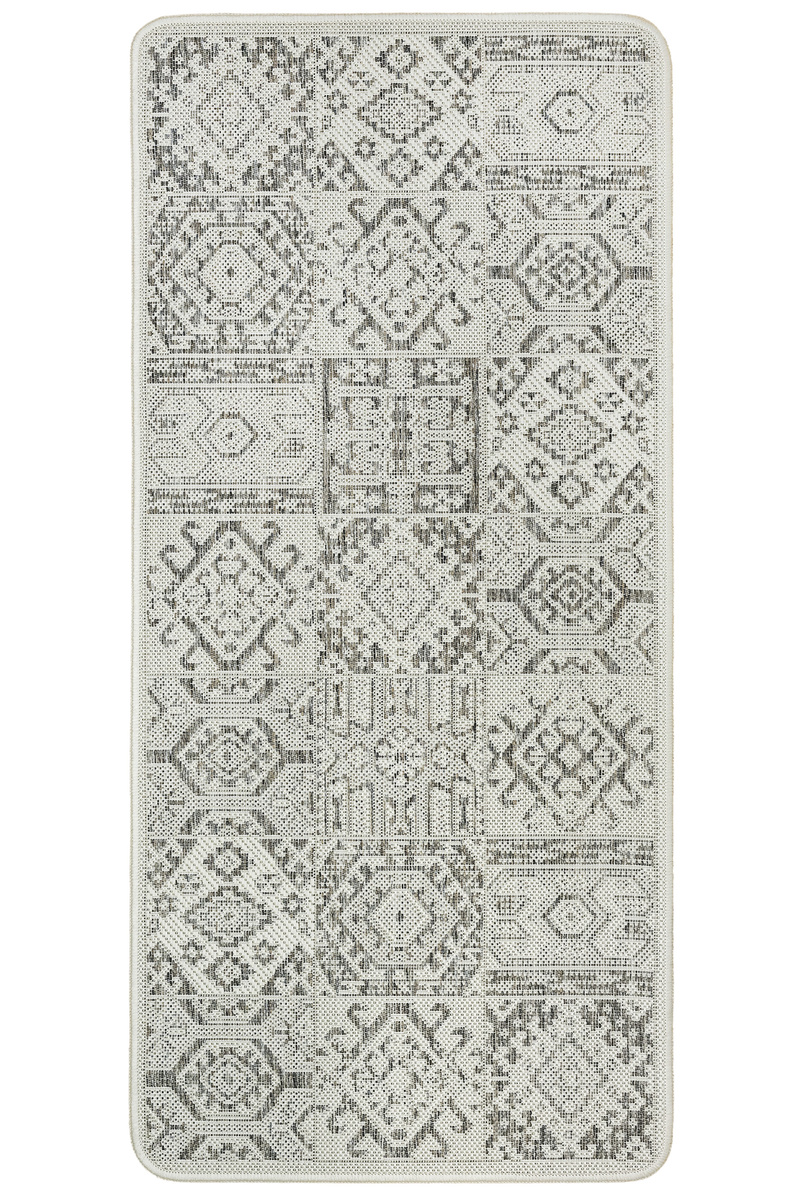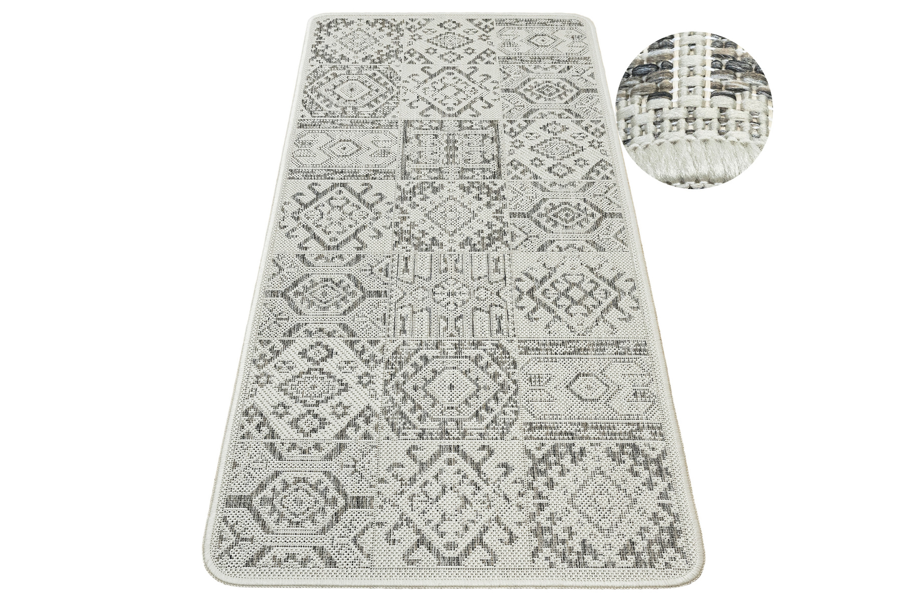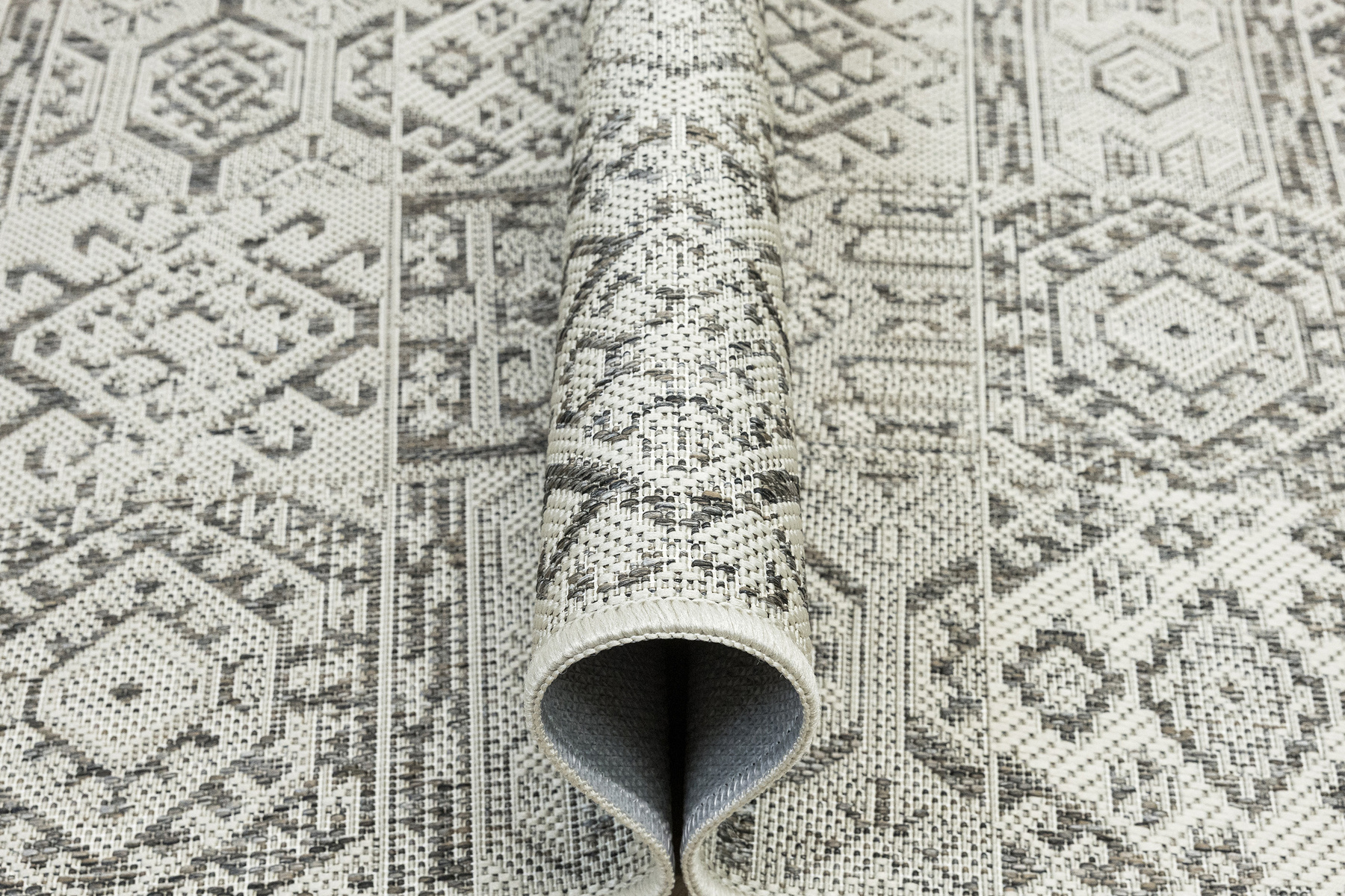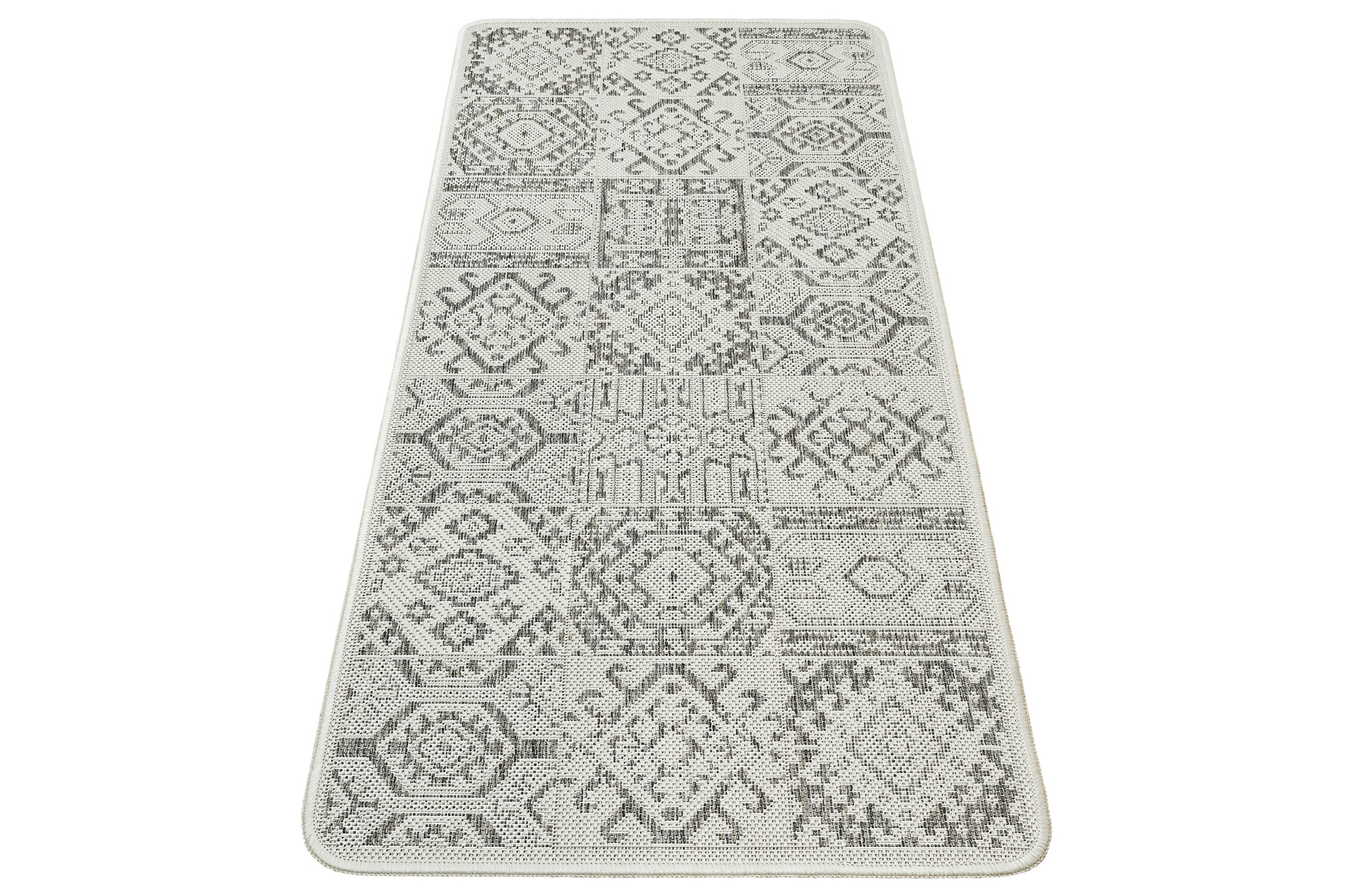 - Podgumowany, antypoślizgowy, sznurkowy dywan Flex ze wzorem w stylu etnicznym, patchworkowym w romby z podgumowanym spodem.