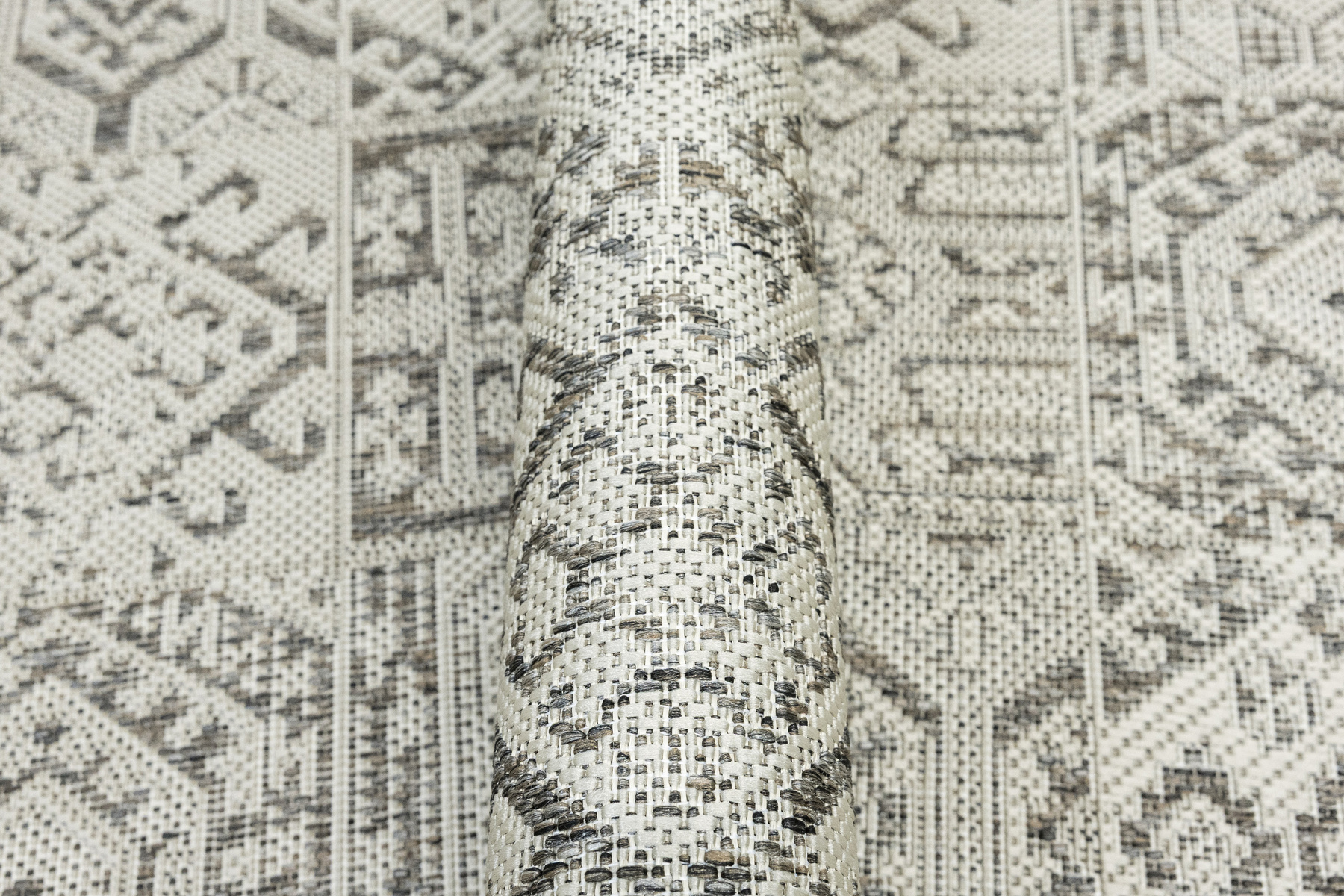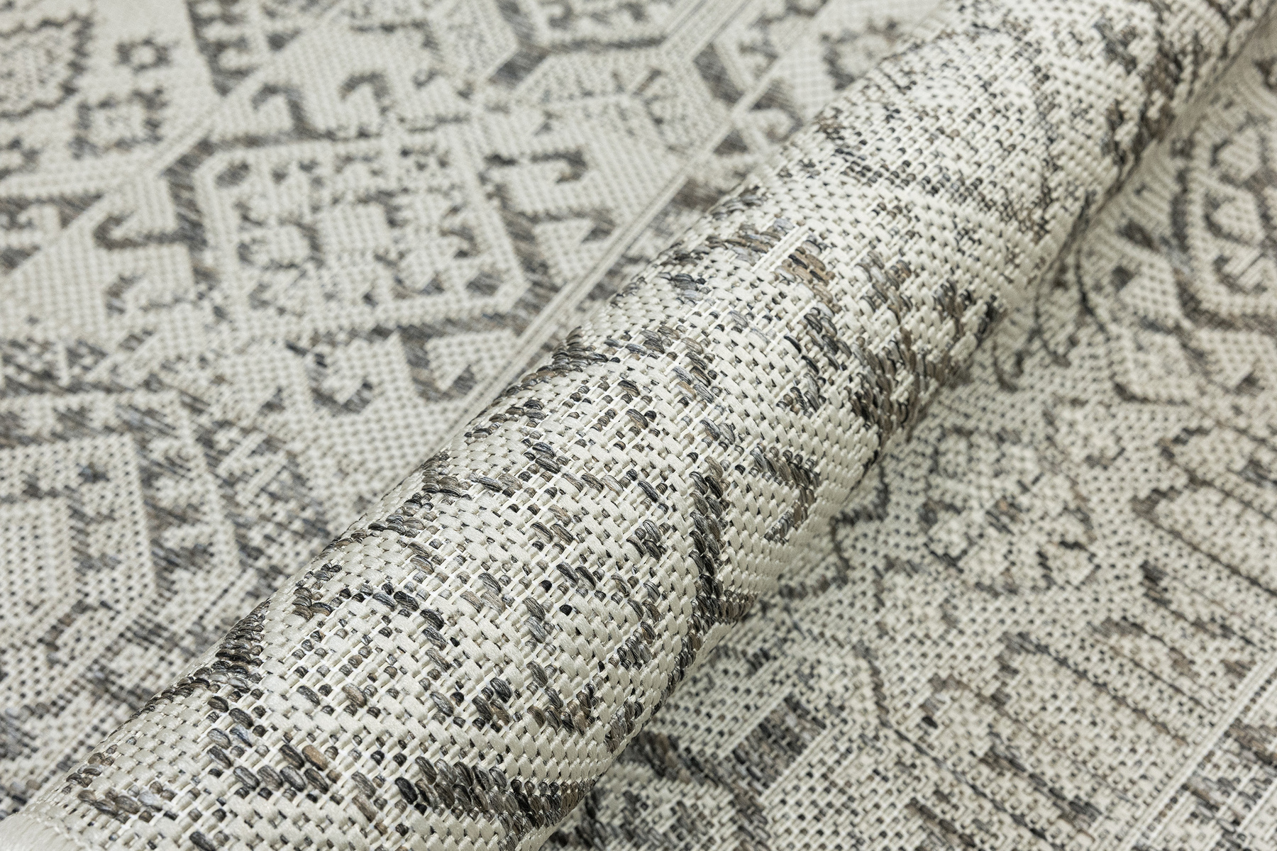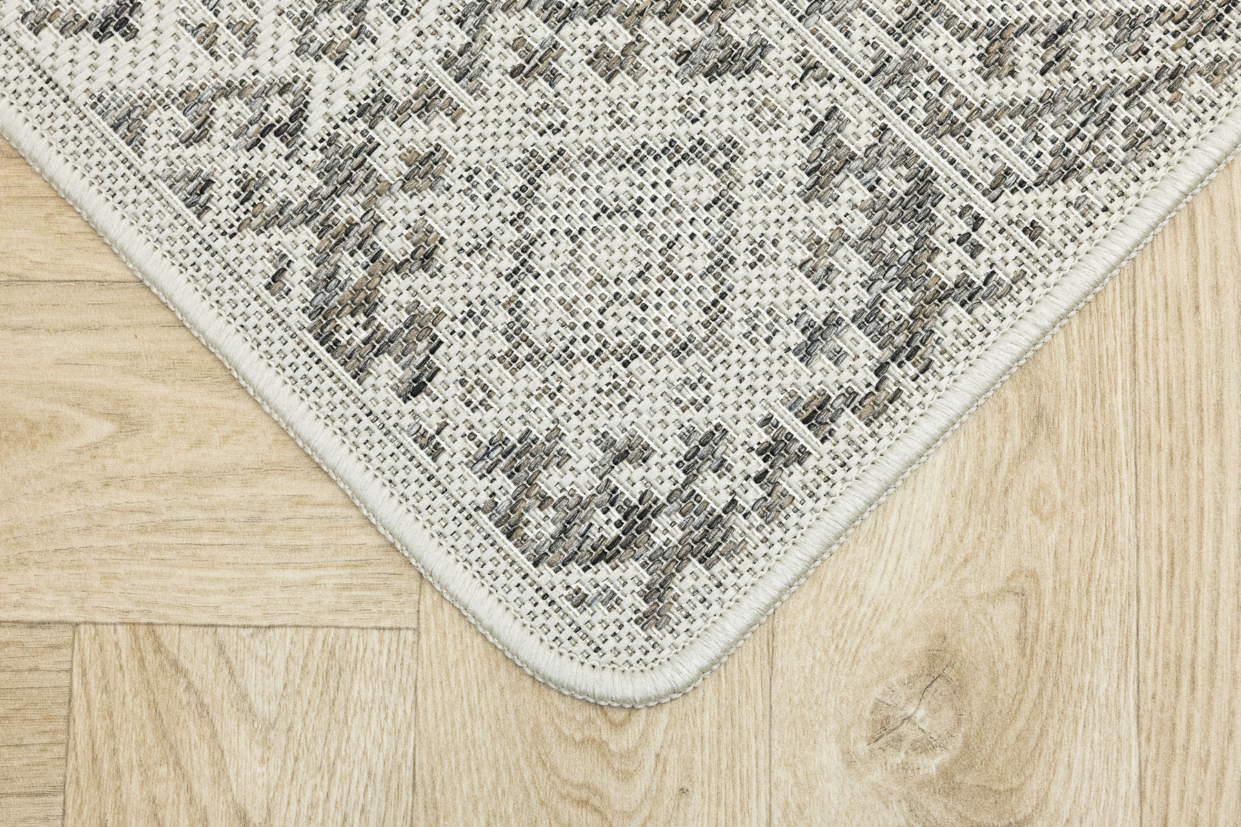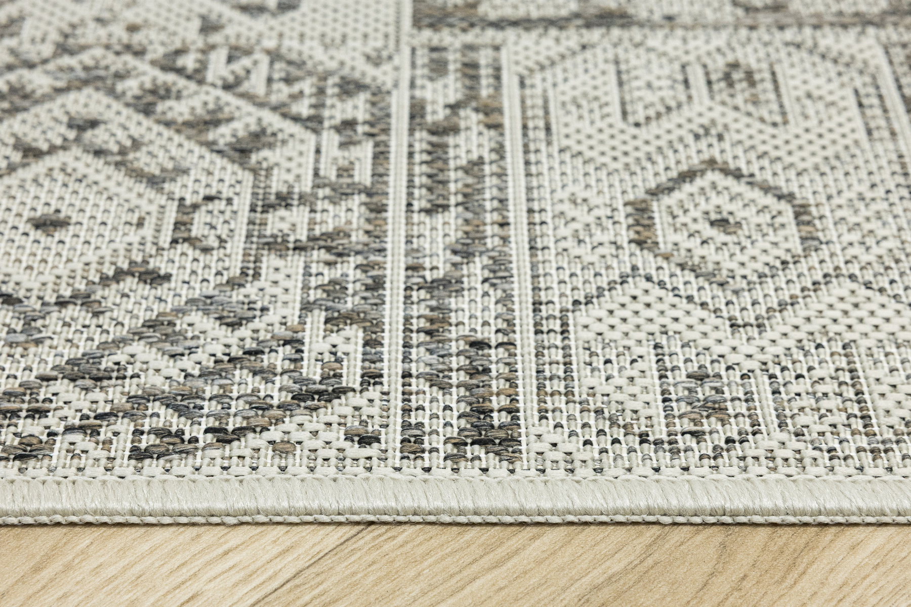 - Podgumowany, antypoślizgowy, sznurkowy dywan Flex ze wzorem w stylu etnicznym, patchworkowym w romby z podgumowanym spodem.