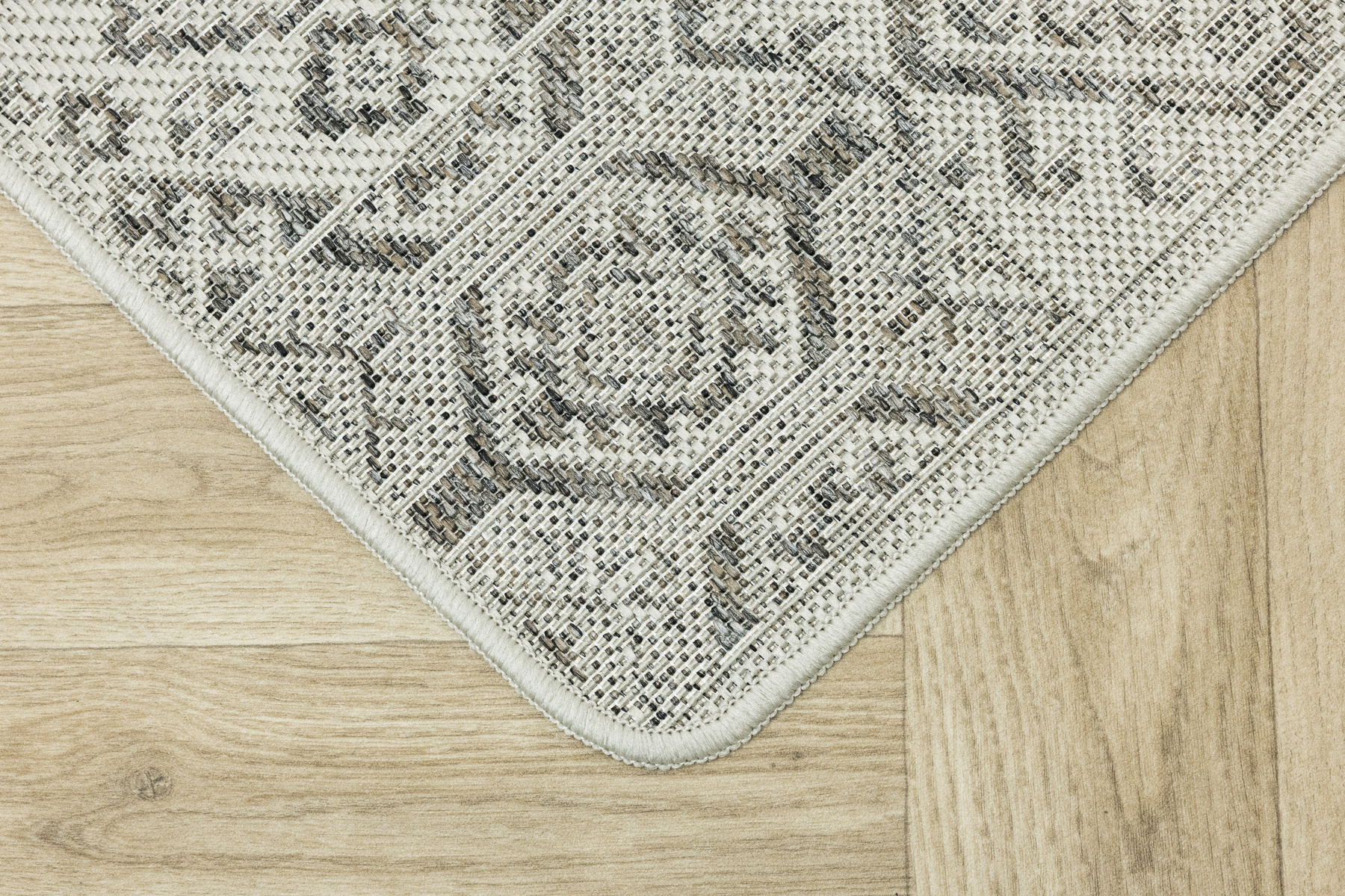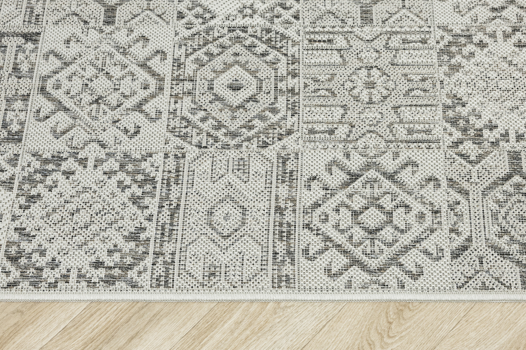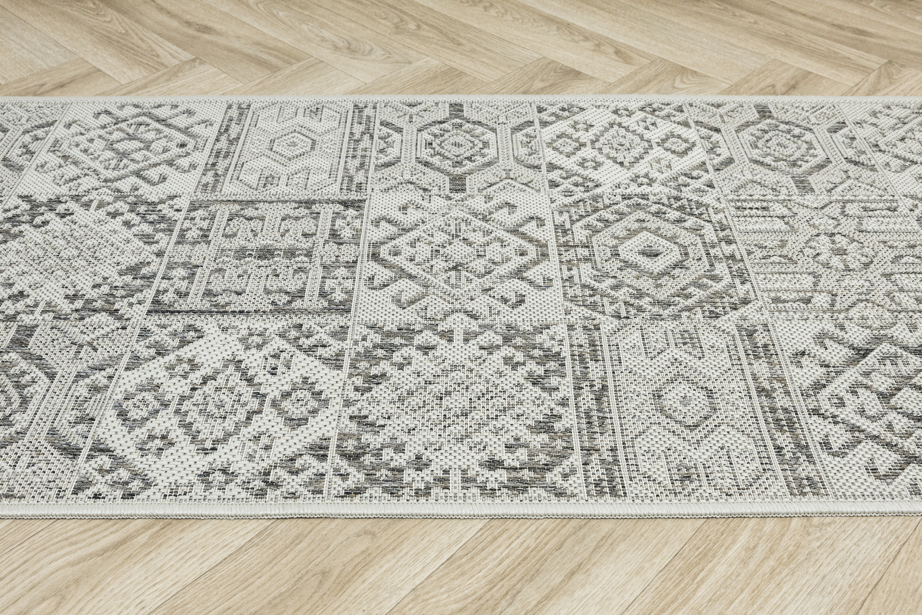 - Podgumowany, antypoślizgowy, sznurkowy dywan Flex ze wzorem w stylu etnicznym, patchworkowym w romby z podgumowanym spodem.