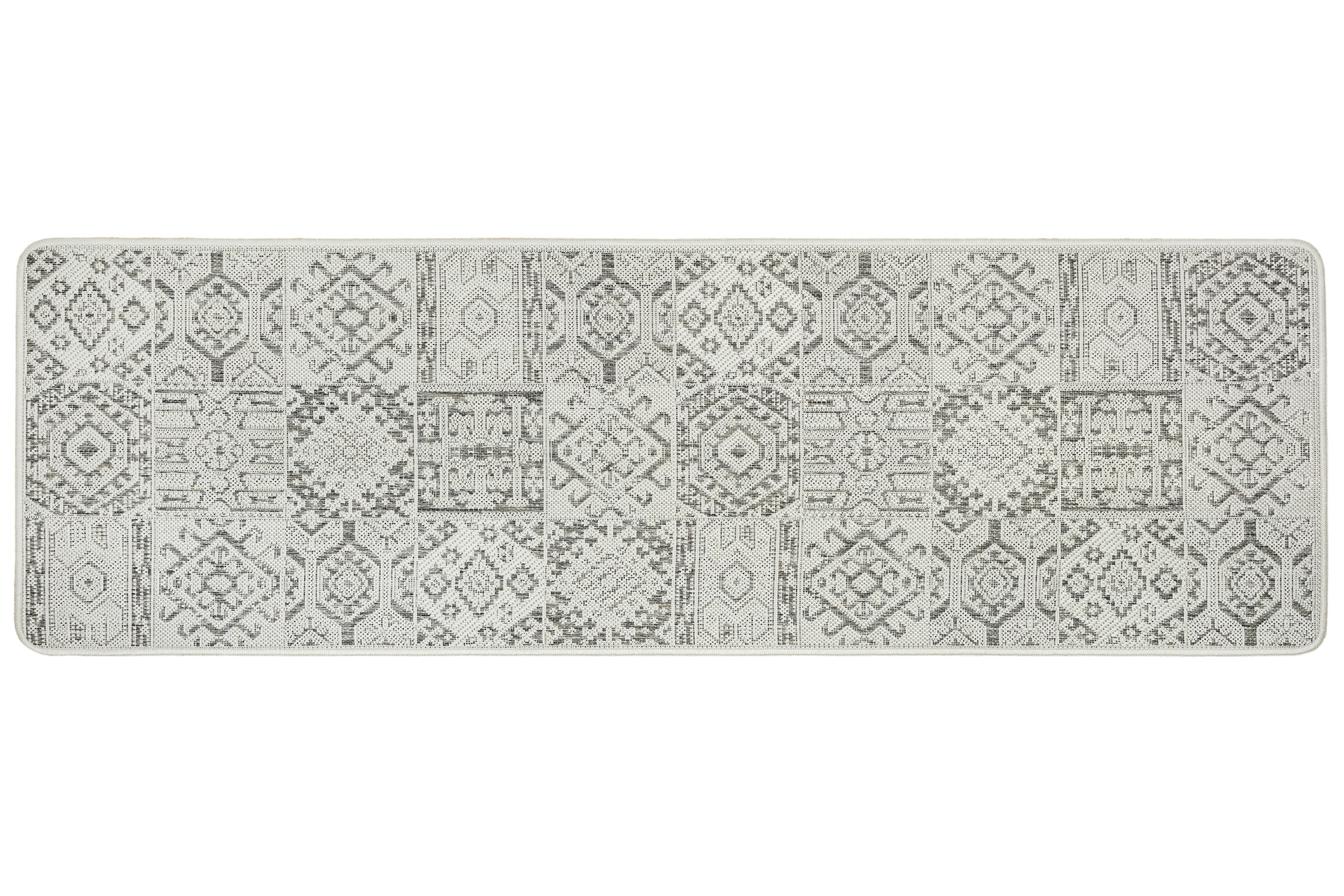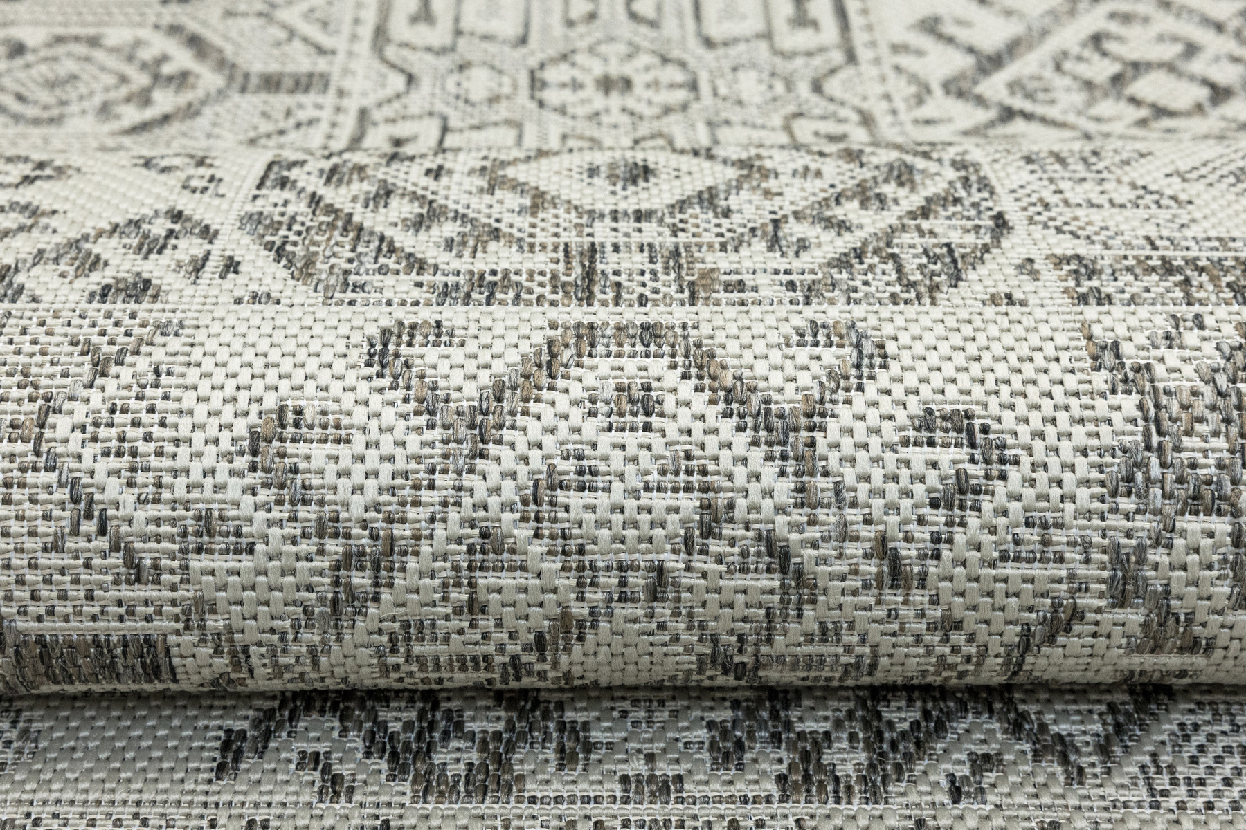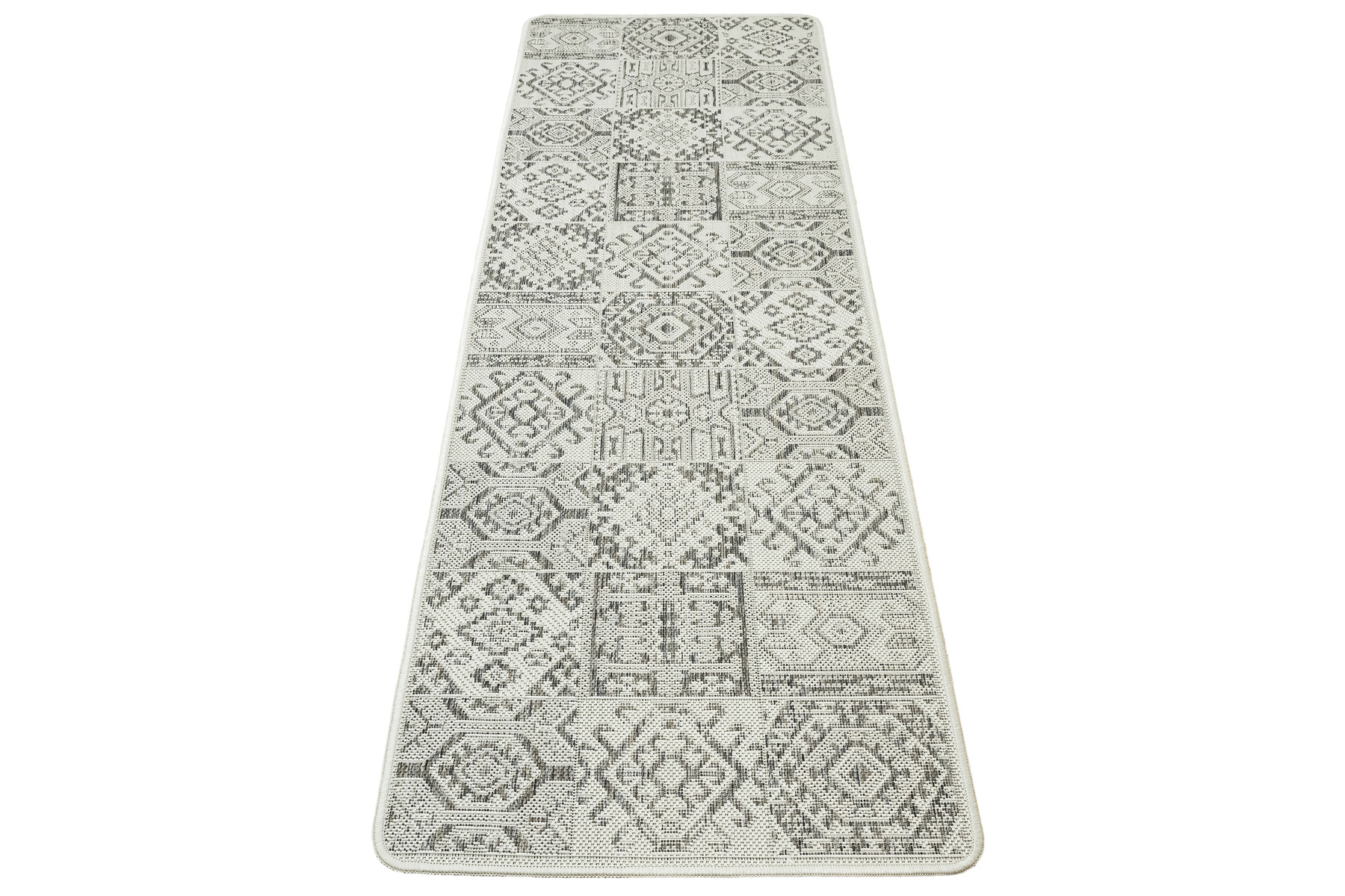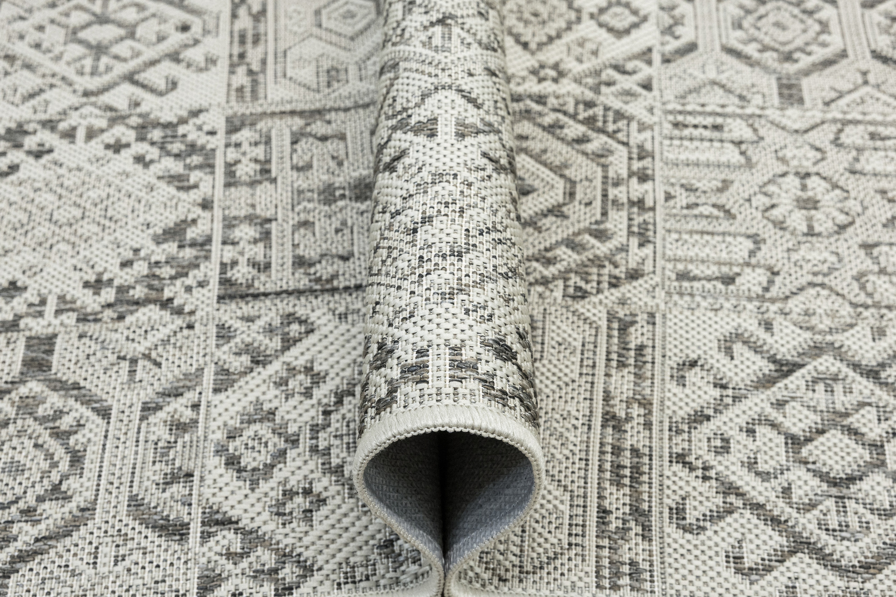 - Podgumowany, antypoślizgowy, sznurkowy dywan Flex ze wzorem w stylu etnicznym, patchworkowym w romby z podgumowanym spodem.