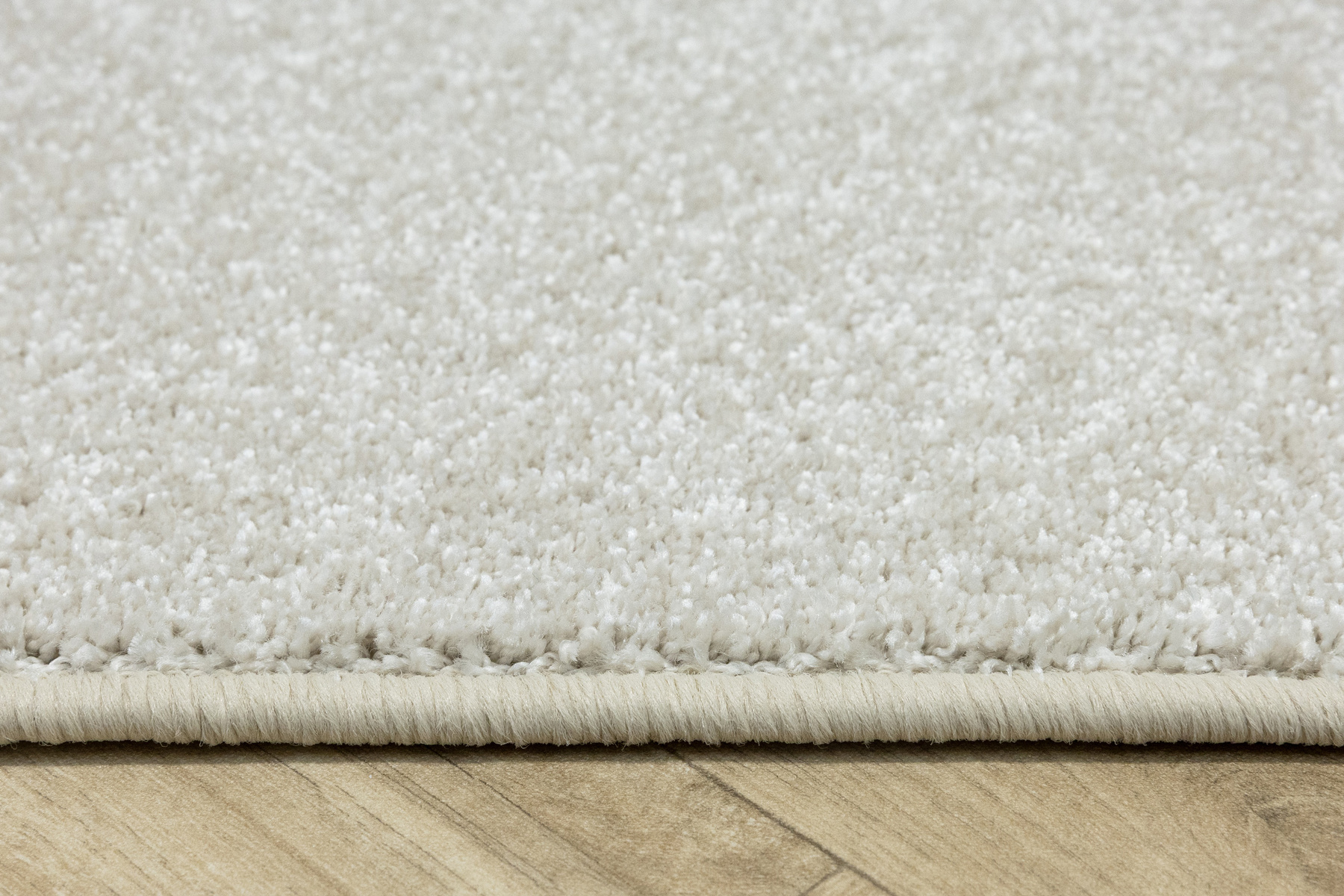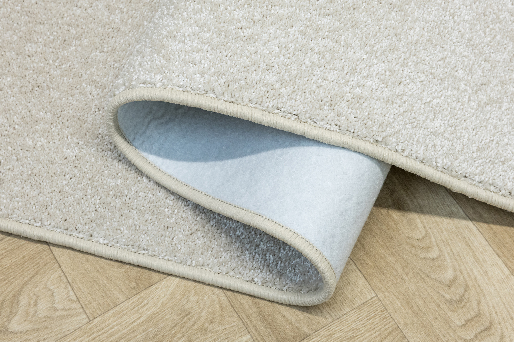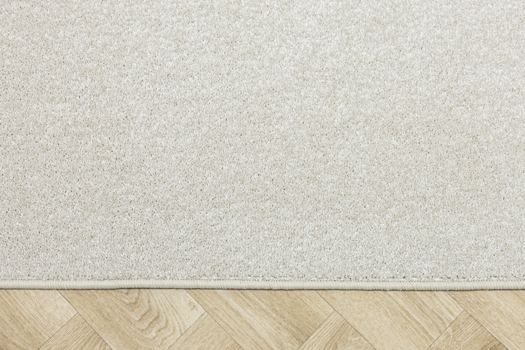 - Miękki i przyjemny w dotyku dywan z wykładziny Sundae o zastosowaniu typowo domowym z runem w jasnym odcieniu lśniącego kaszmirowego beżu oraz spodem wykończonym filcem.