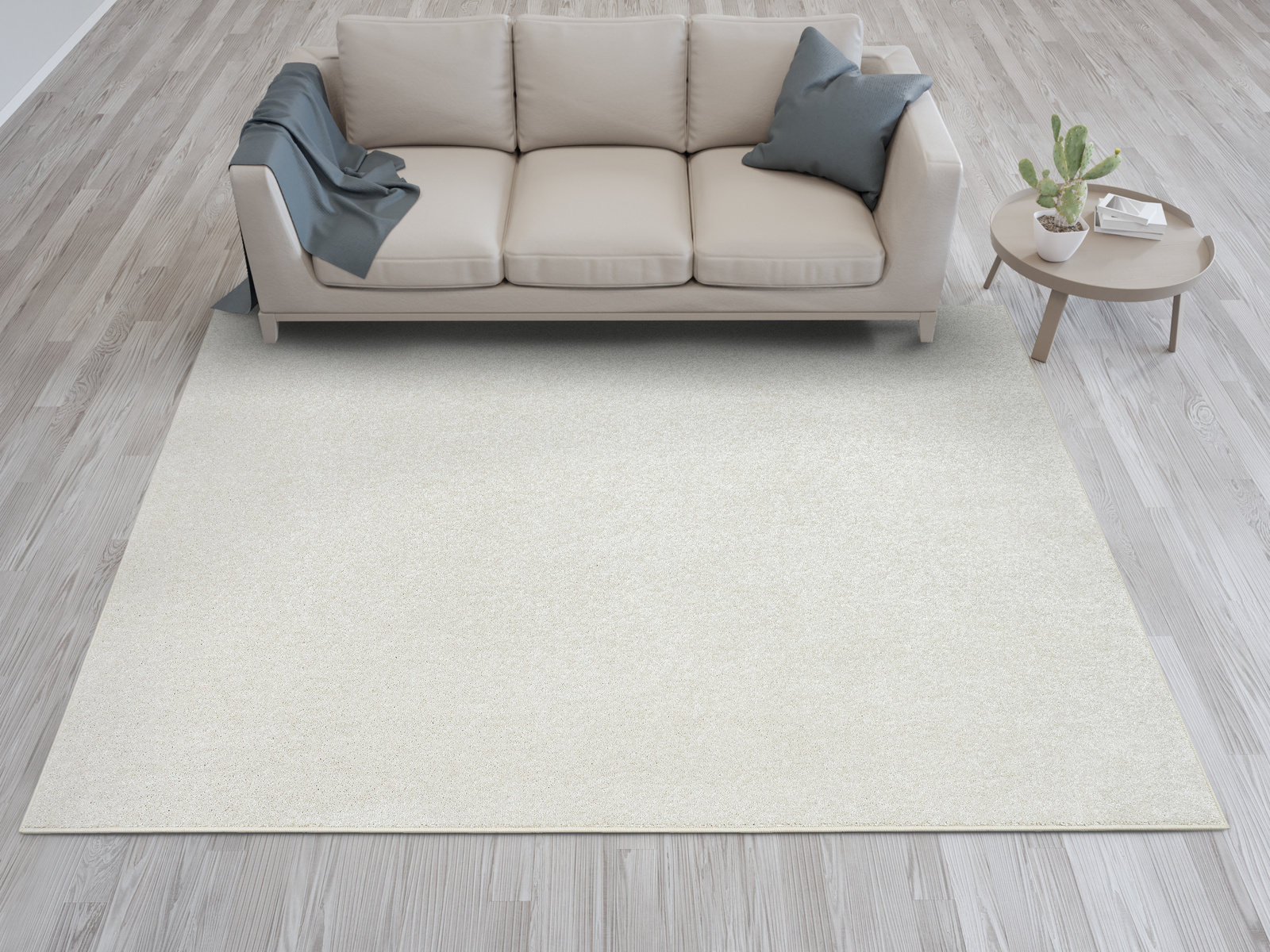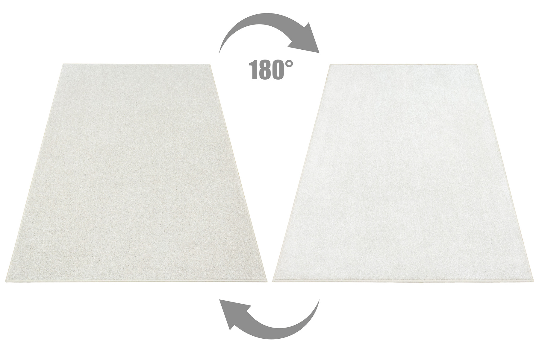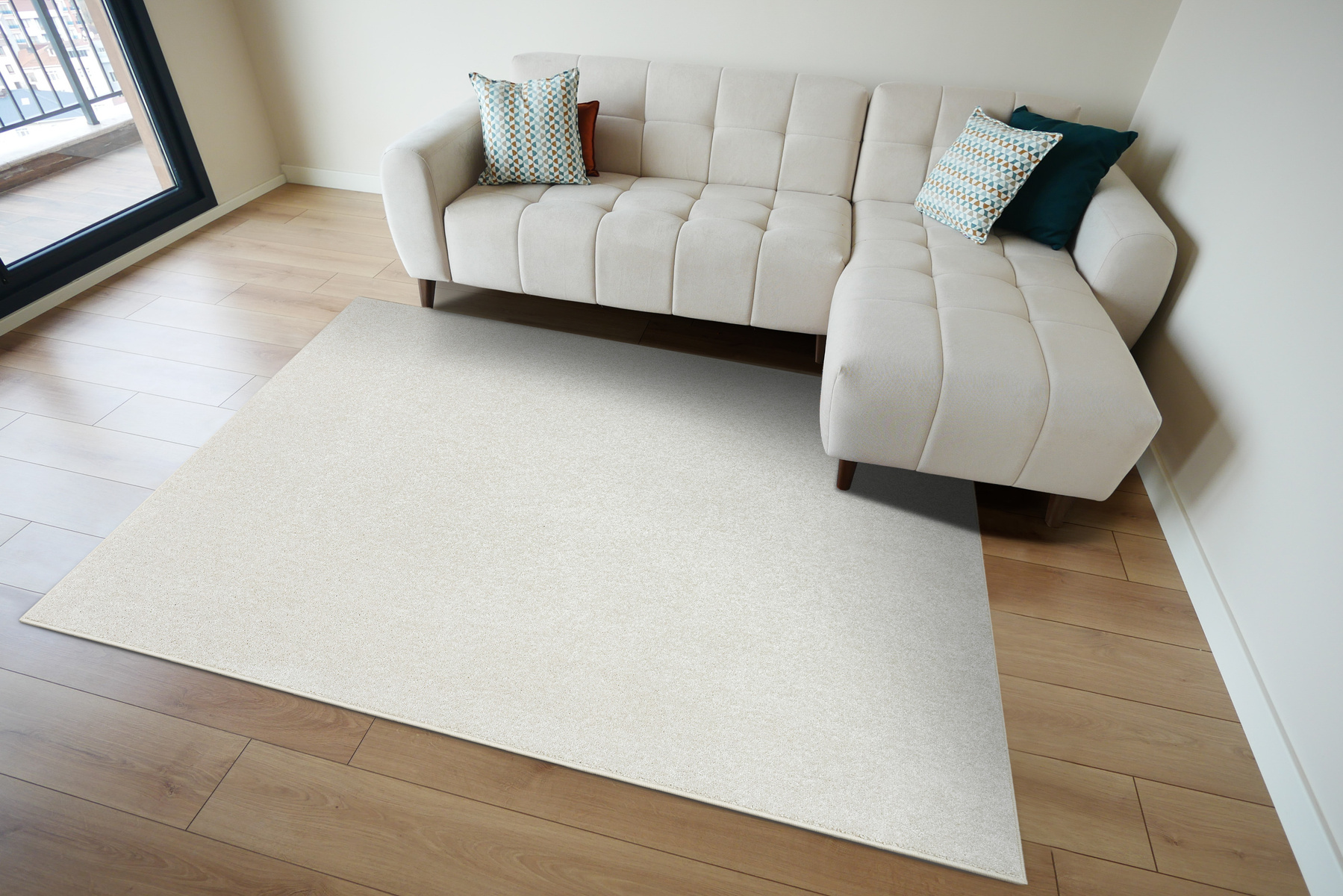 - Miękki i przyjemny w dotyku dywan z wykładziny Sundae o zastosowaniu typowo domowym z runem w jasnym odcieniu lśniącego kaszmirowego beżu oraz spodem wykończonym filcem.