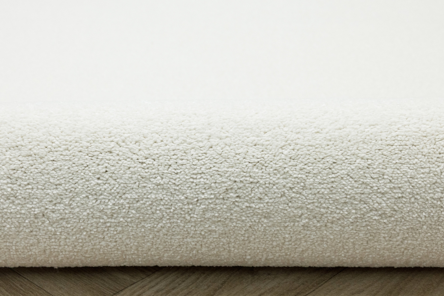 - Dywan wykładziny Jubilee Twist z miękkim runem ciętym typu saxon w lśniącym odcieniu kremu i spodem wykończonym filcem.