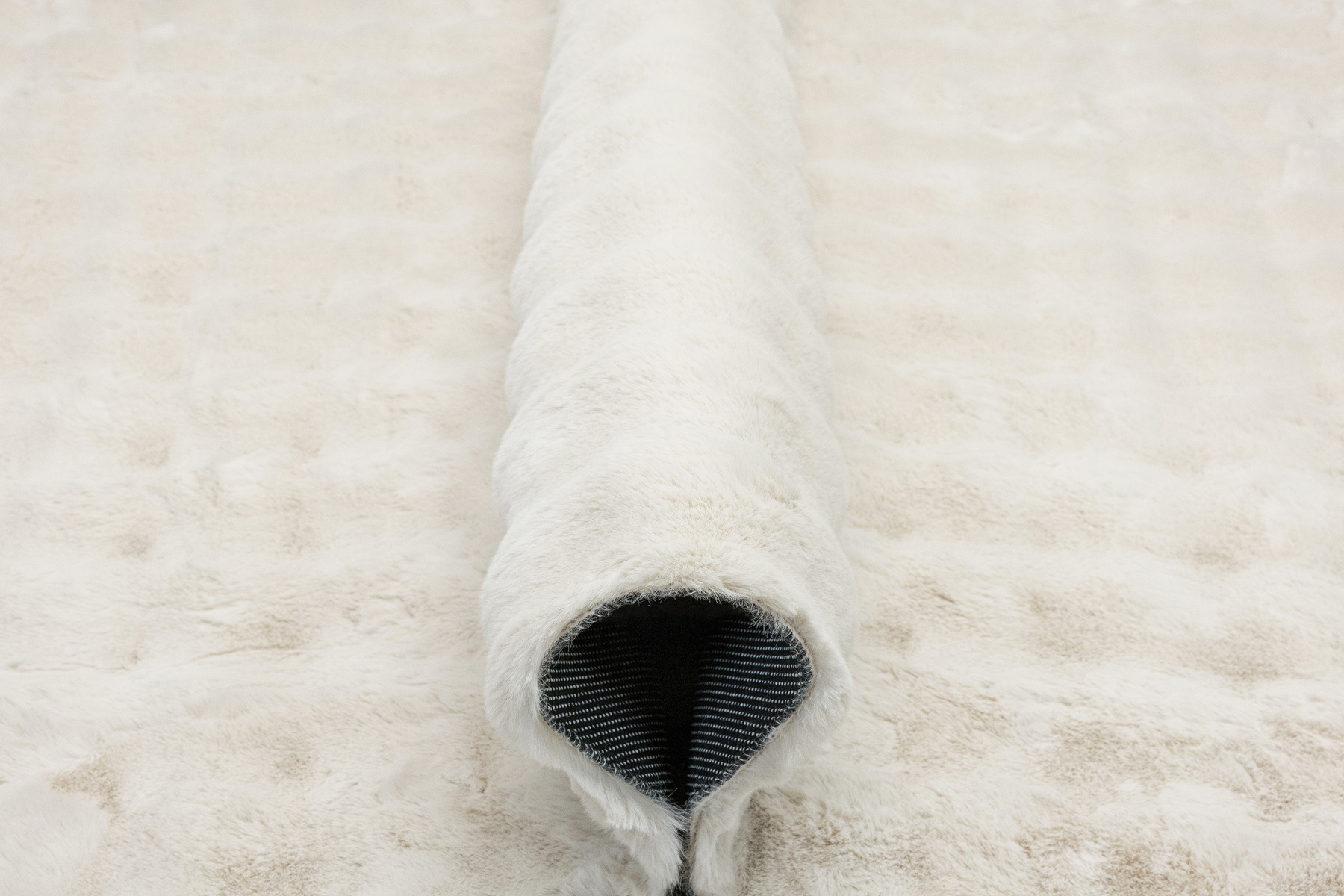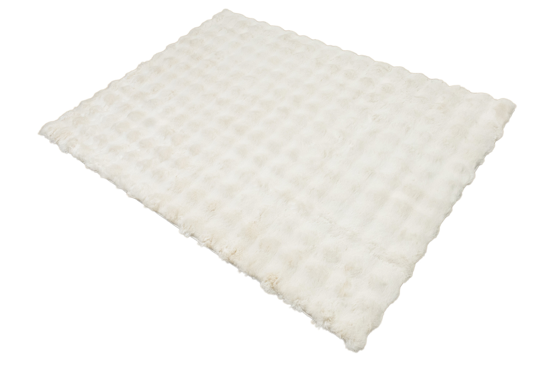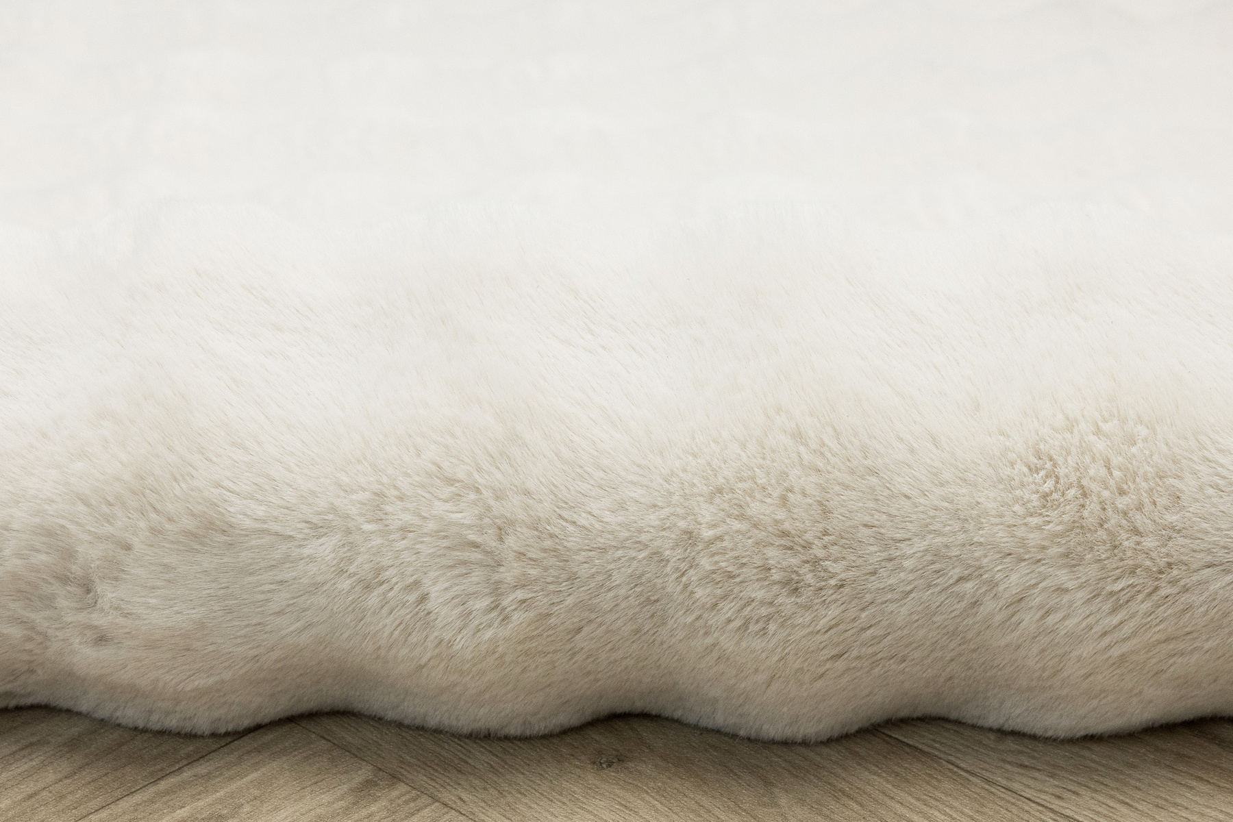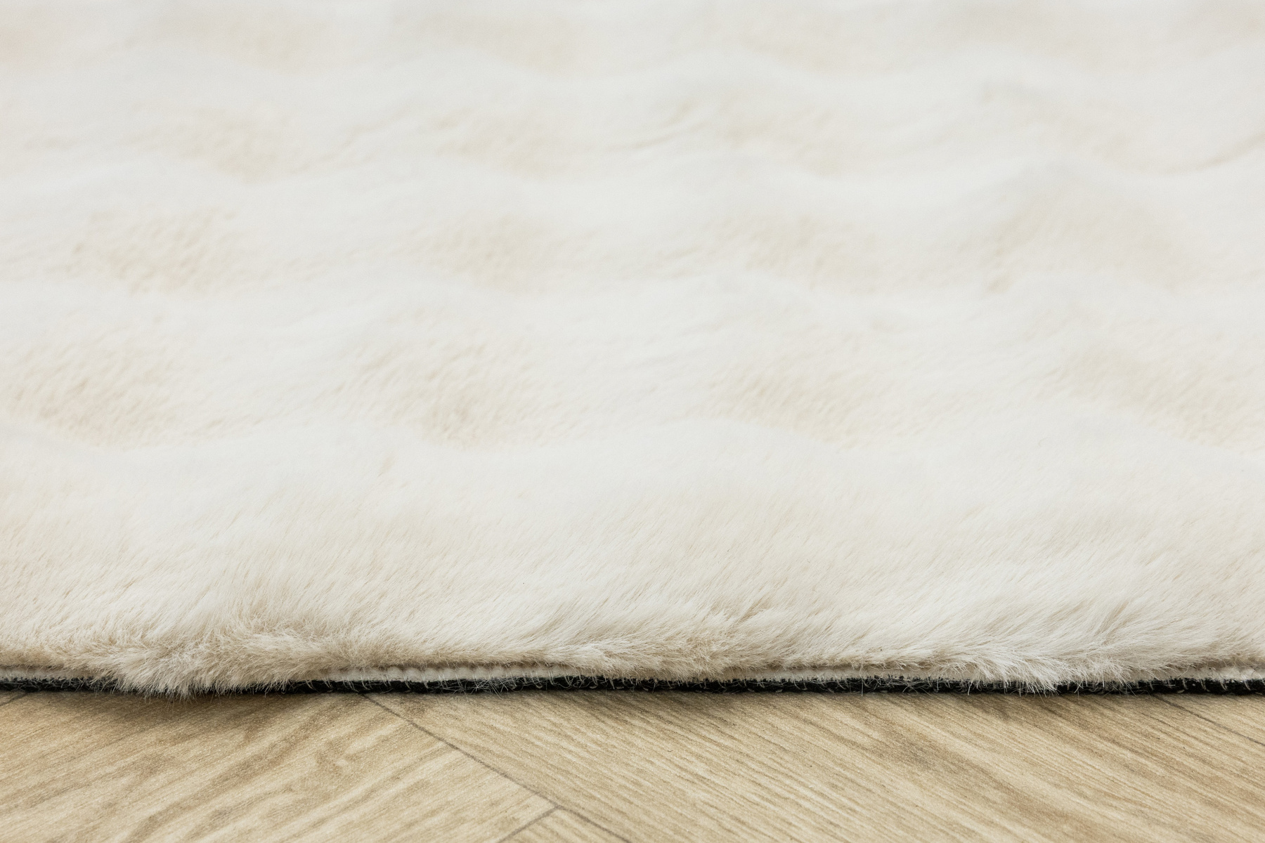 - Miękki i puszysty dywan Oslo z runem w kolorze ecru przypominającym w dotyku królicze futerko z geometrycznym dwupoziomowym runem i nakrapianym antypoślizgowym spodem.