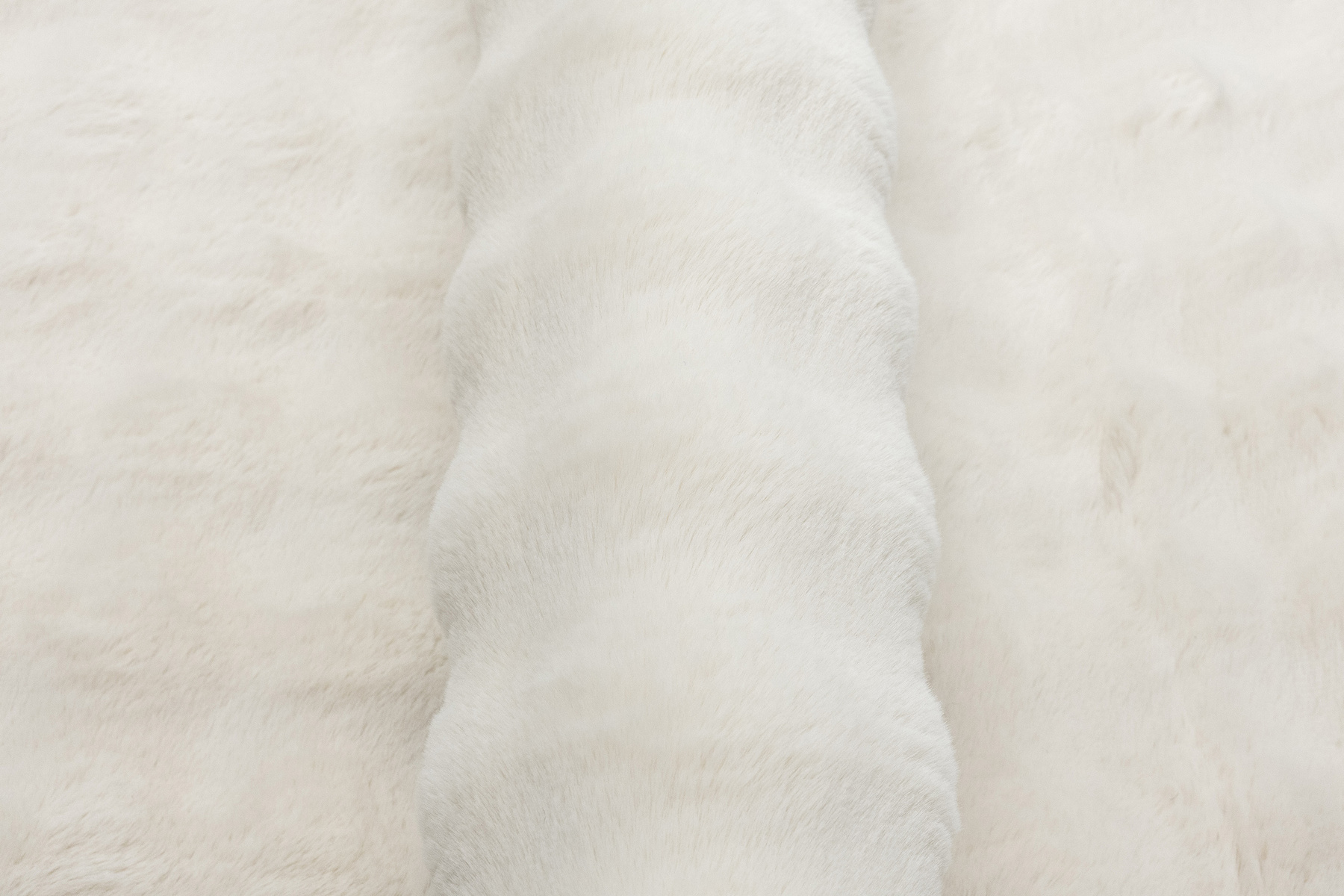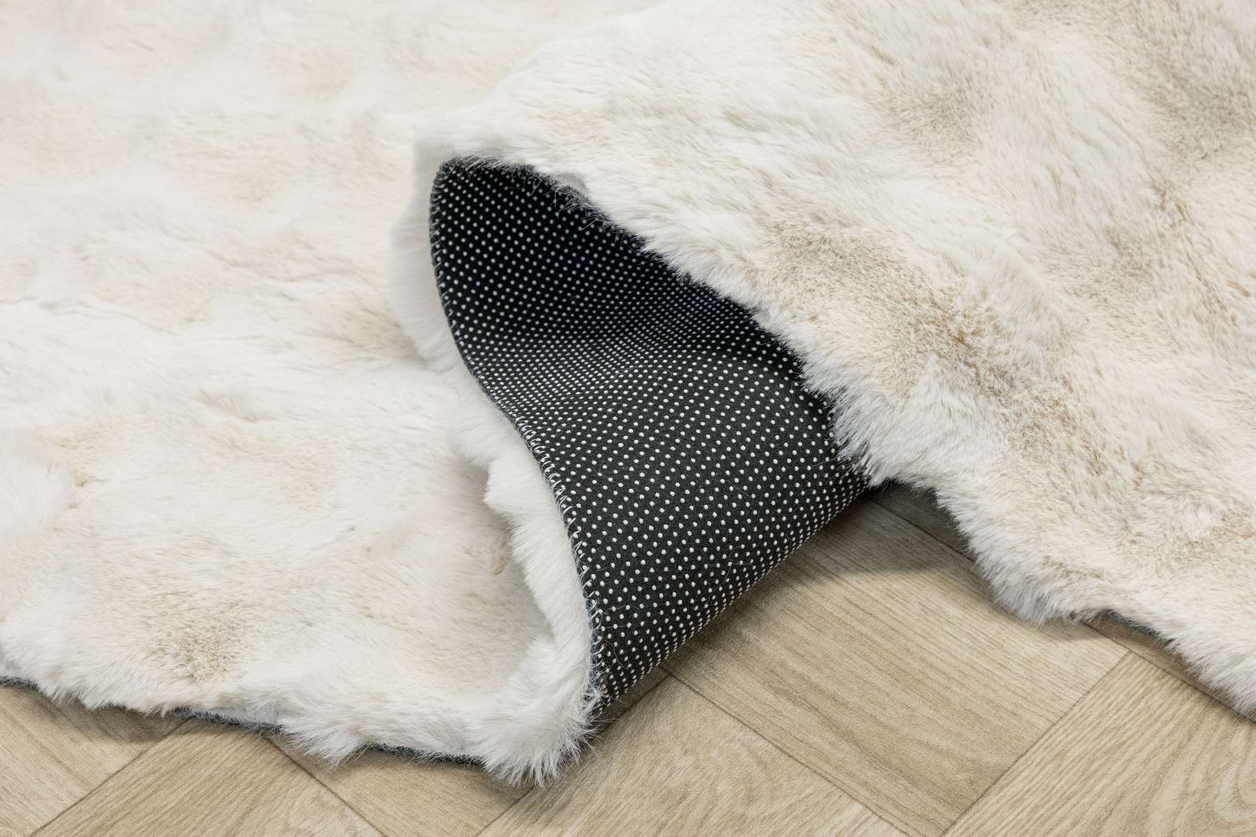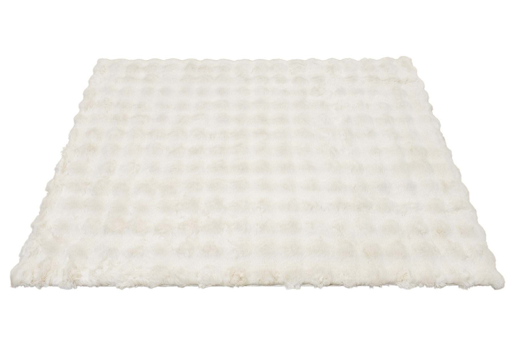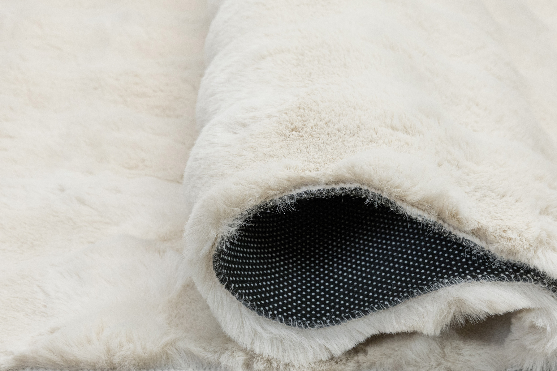 - Miękki i puszysty dywan Oslo z runem w kolorze ecru przypominającym w dotyku królicze futerko z geometrycznym dwupoziomowym runem i nakrapianym antypoślizgowym spodem.