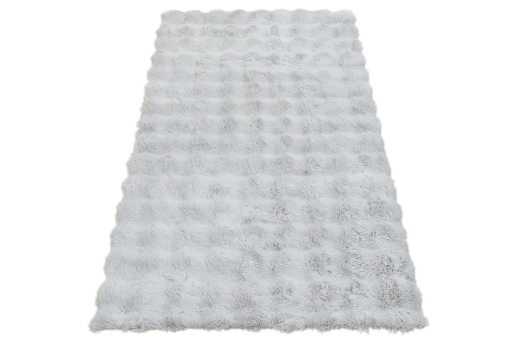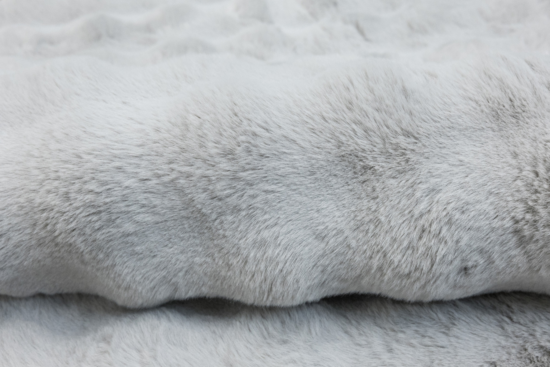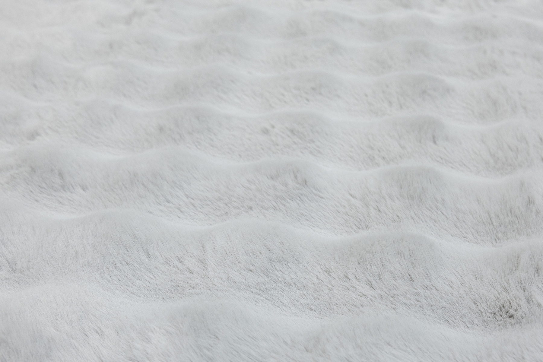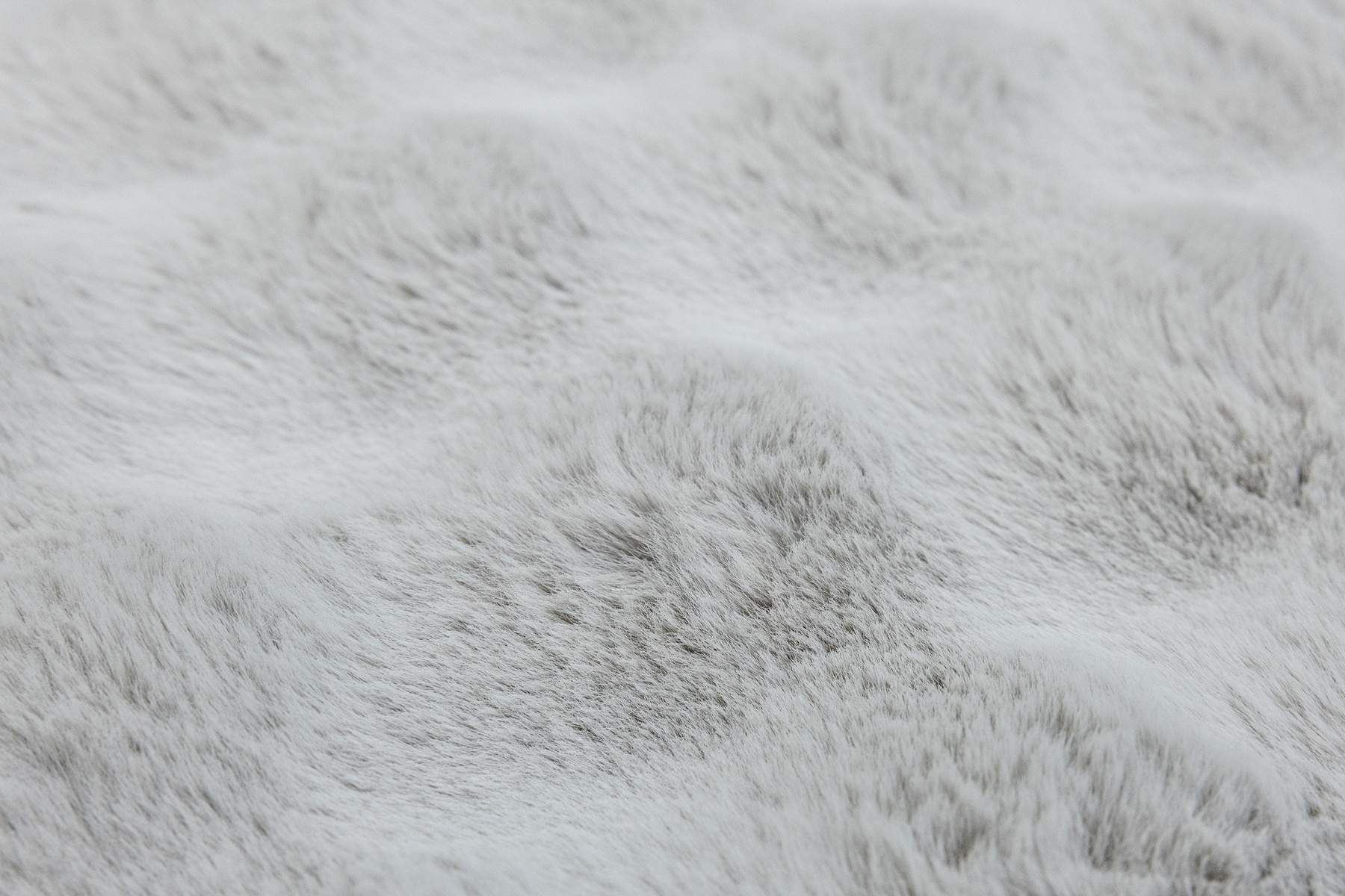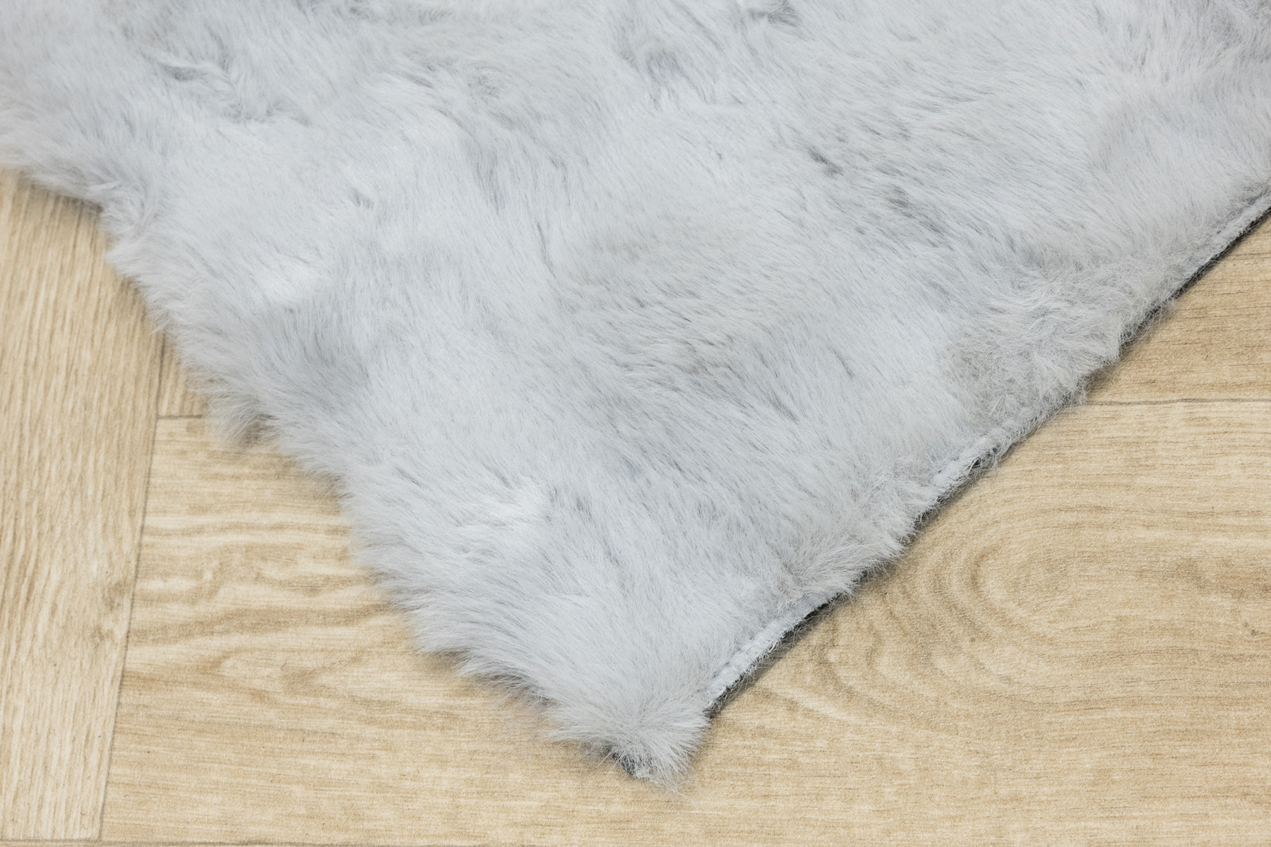 - Miękki i puszysty dywan Oslo z jasnym szarym runem przypominającym w dotyku królicze futerko z geometrycznym dwupoziomowym runem i nakrapianym antypoślizgowym spodem.