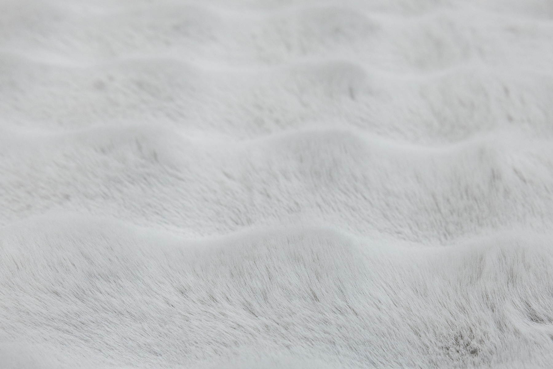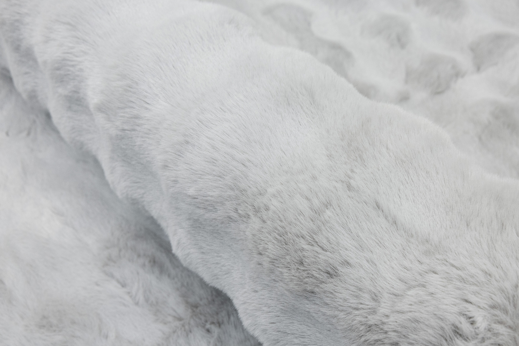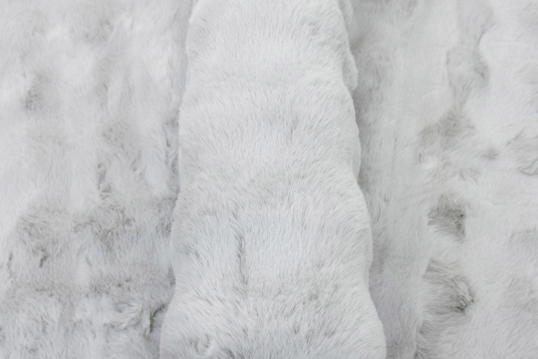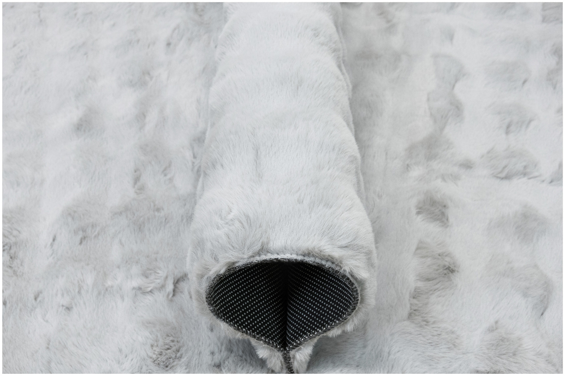 - Miękki i puszysty dywan Oslo z jasnym szarym runem przypominającym w dotyku królicze futerko z geometrycznym dwupoziomowym runem i nakrapianym antypoślizgowym spodem.