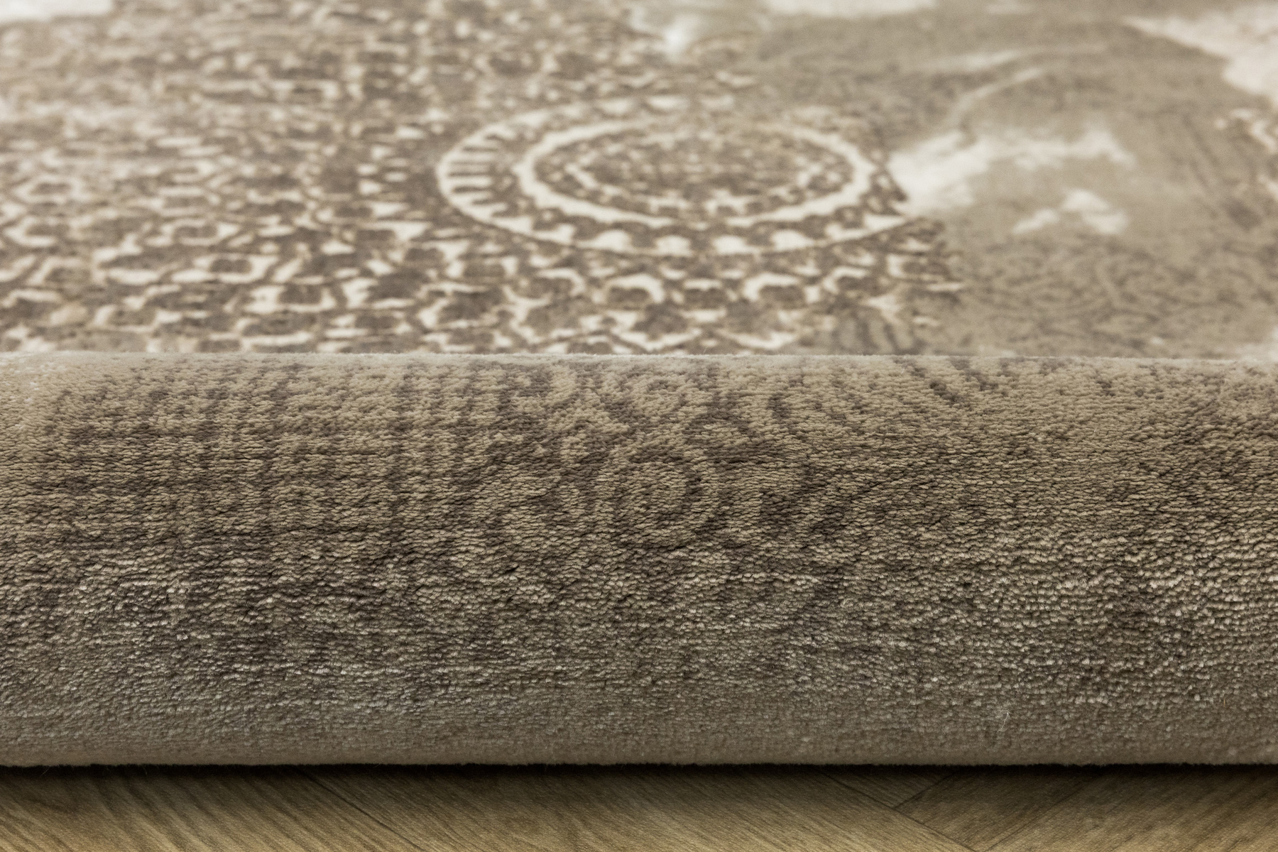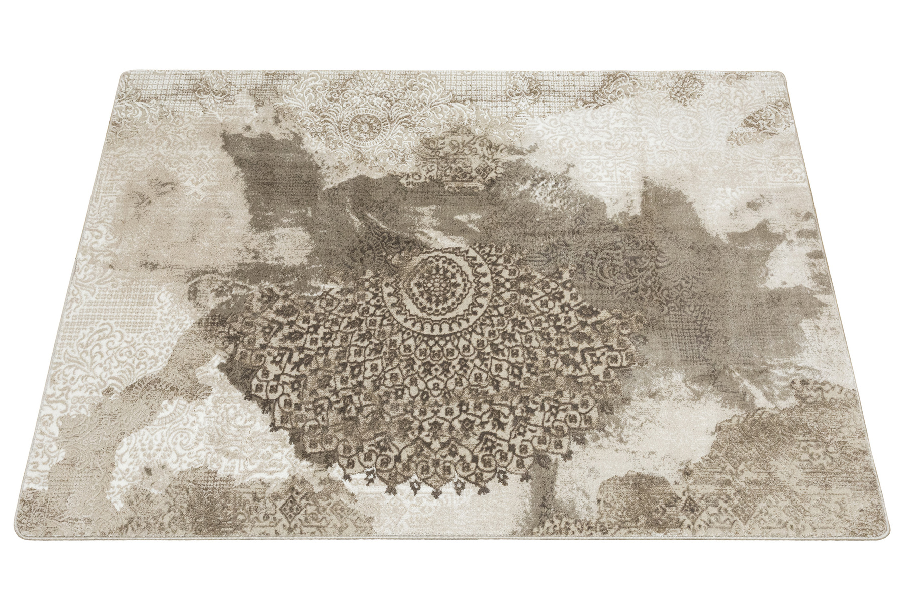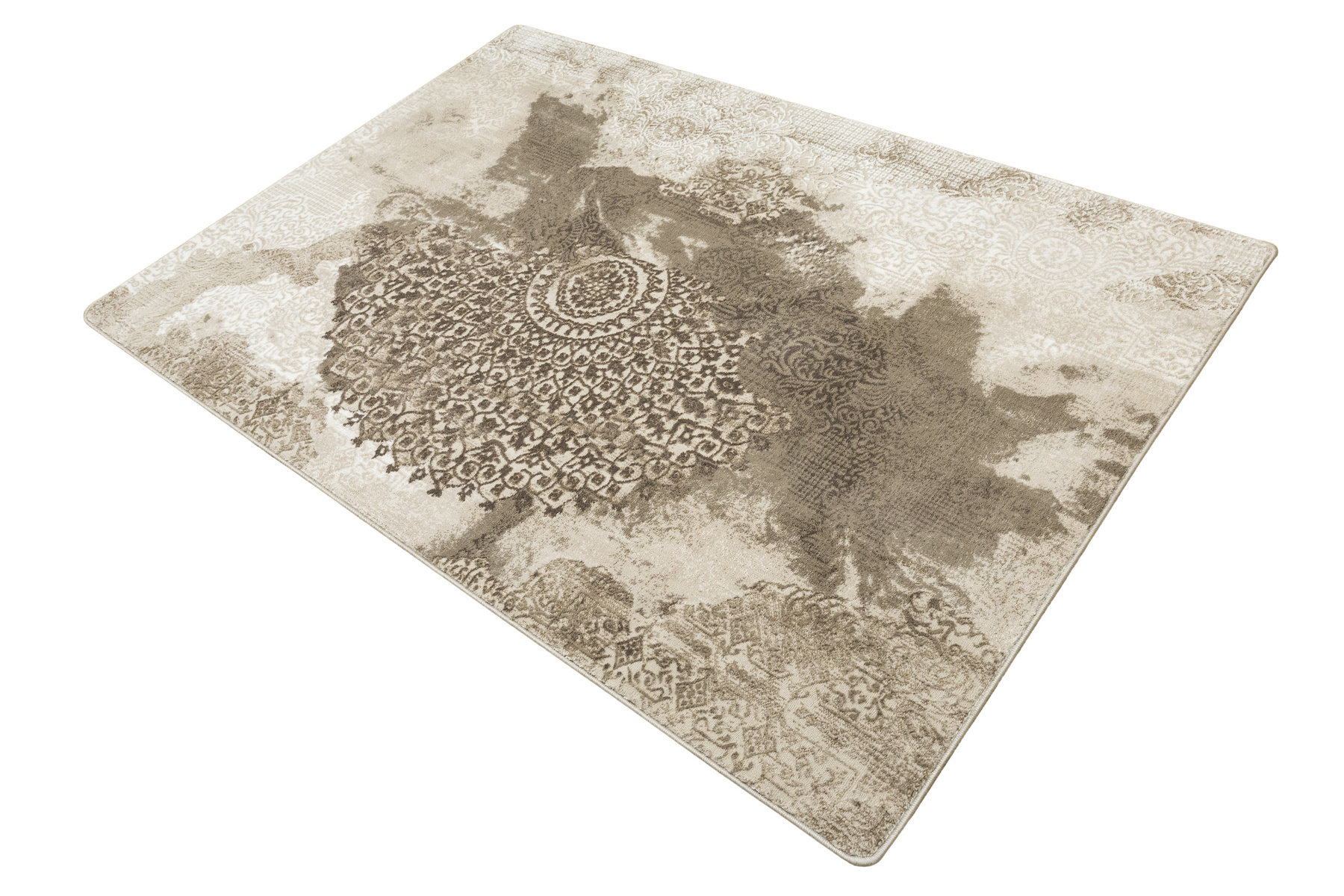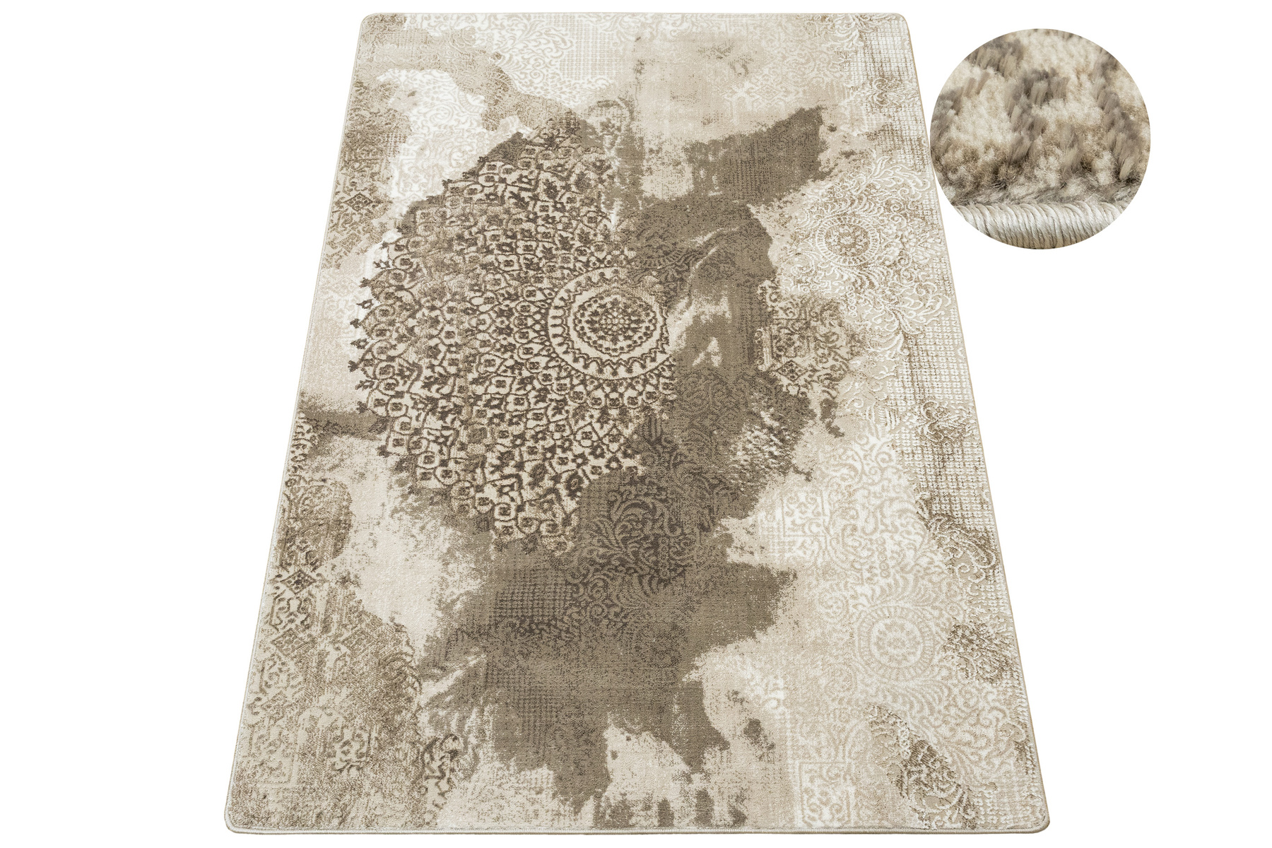 - Miękki dywan Galya z ornamentowym wzorem w stylu boutique, z dwupoziomowym mięciutkim runem w odcieniach beżu i kremu oraz spodem wykończonym jutą.