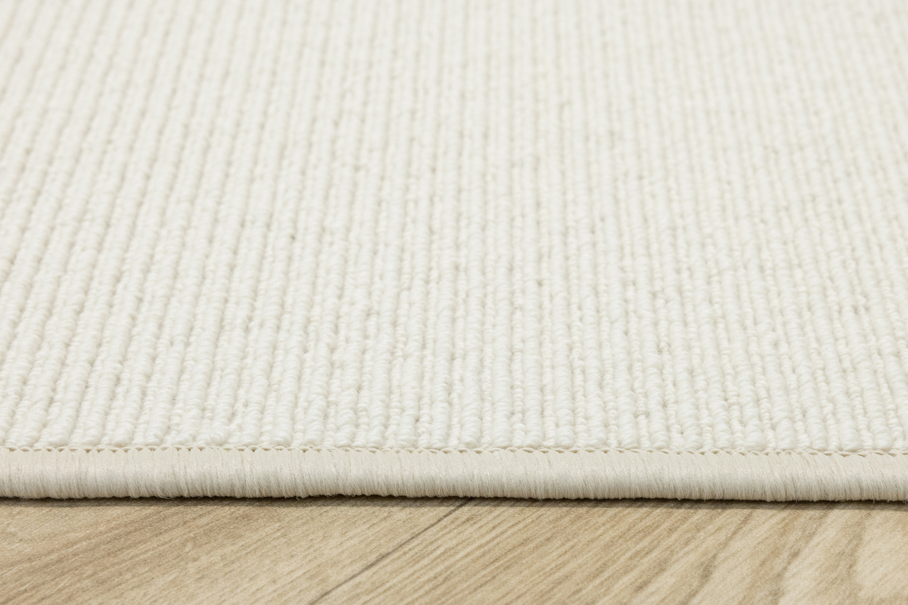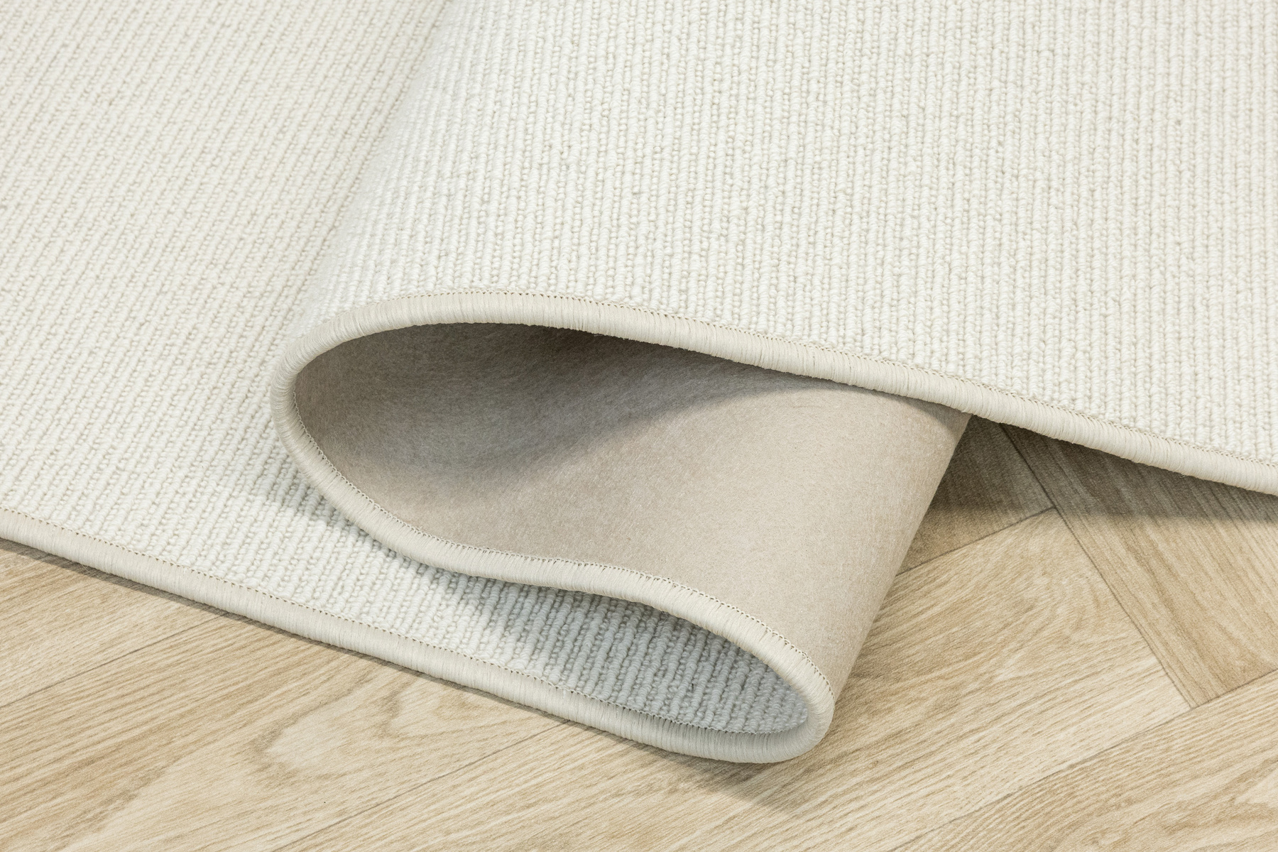 - Wełniana wykładzina Avondale z o podwyższonej klasie wytrzymałości, pętelkowym, prążkowanym runem w naturalnym odcieniu kremu i spodem wykończonym filcem.