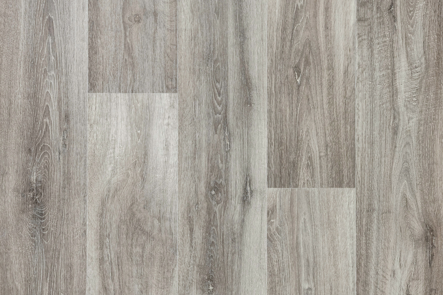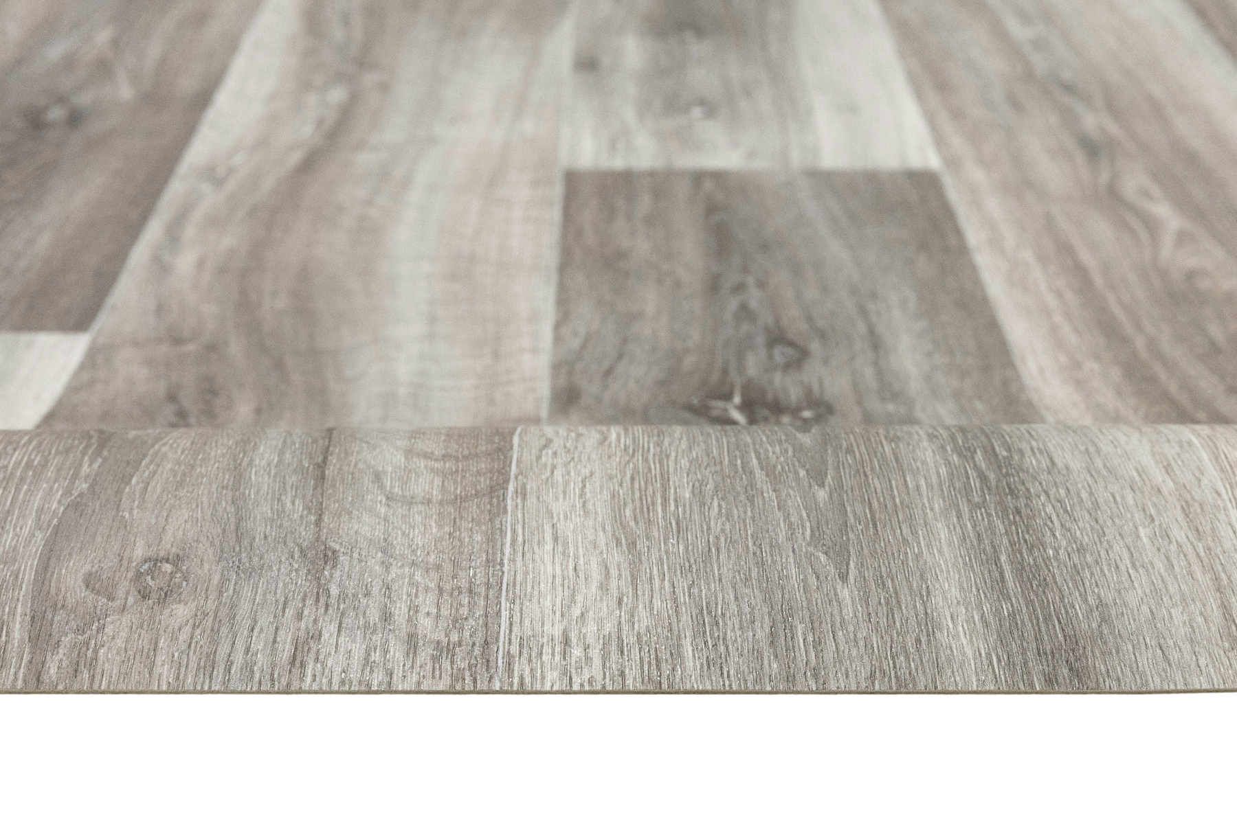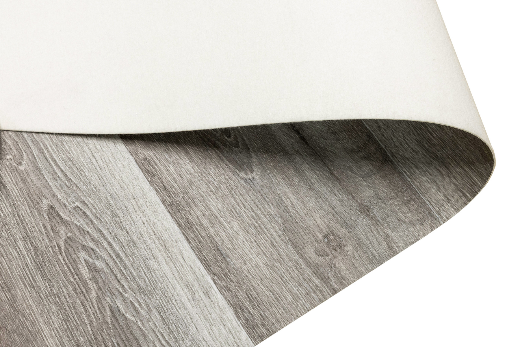 - Elastyczna wykładzina PCV Tex-Style Lime Oak o podwyższonej wytrzymałości ze wzorem imitującym podłogę z desek w odcieniach szarości, kremu i beżu oraz spodem wykończonym filcem.