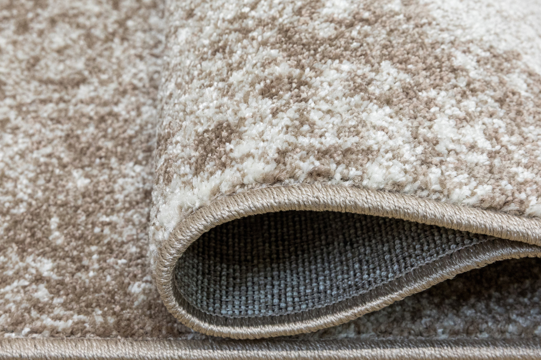 - Miękki i przyjemny w dotyku chodnik Mira z nowoczesnym, abstrakcyjnym wzorem przecieranym inspirowanym strukturą przecieranego betonu w beżu z akcentami szarości.