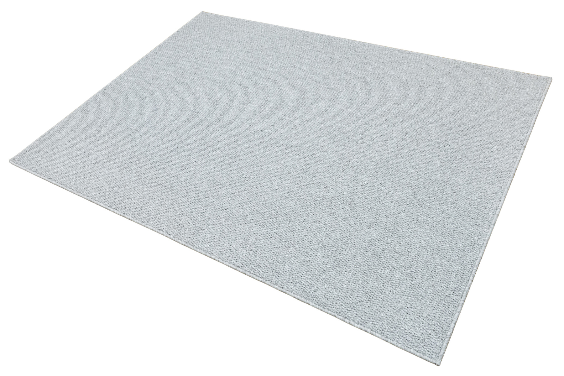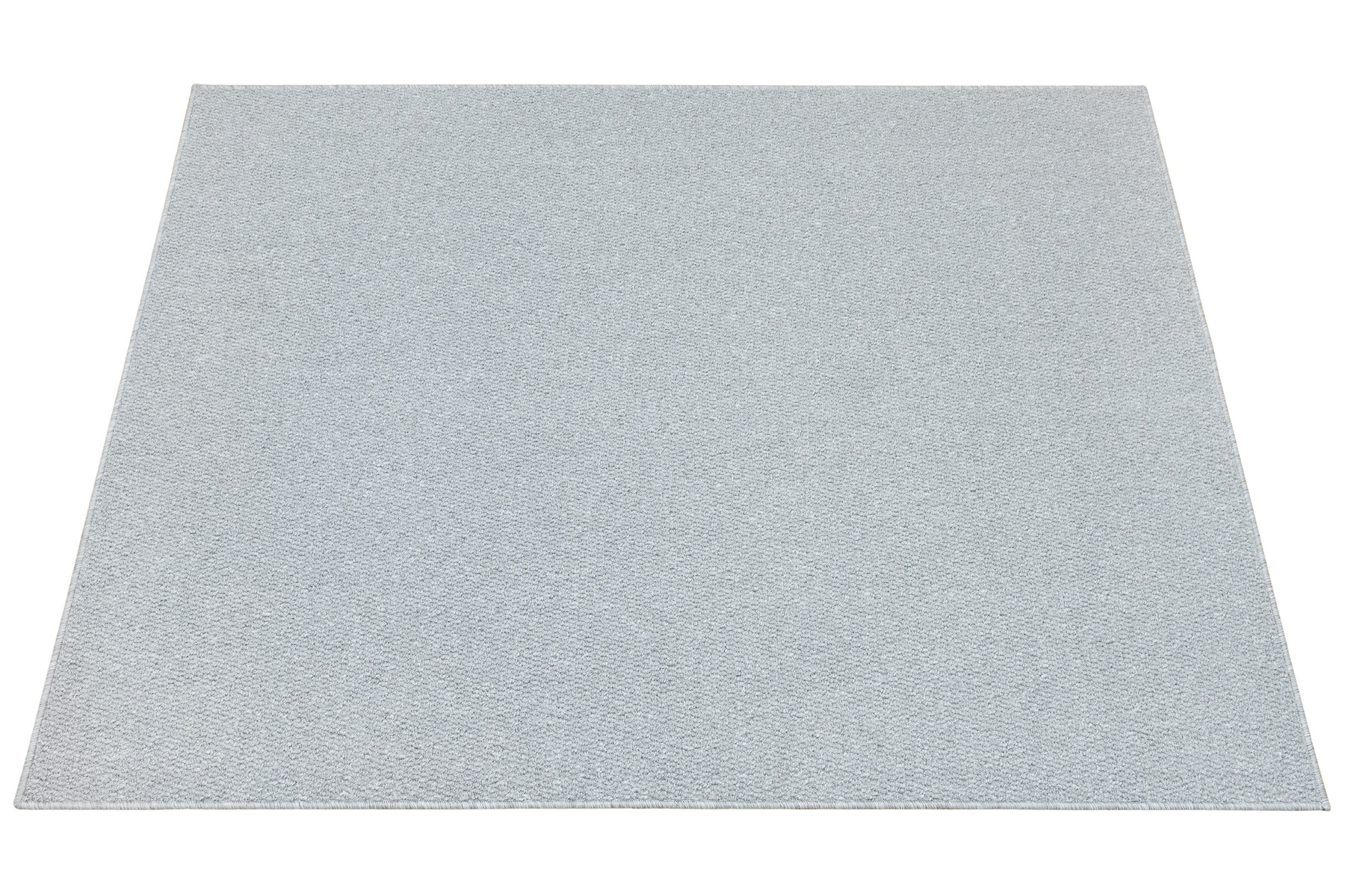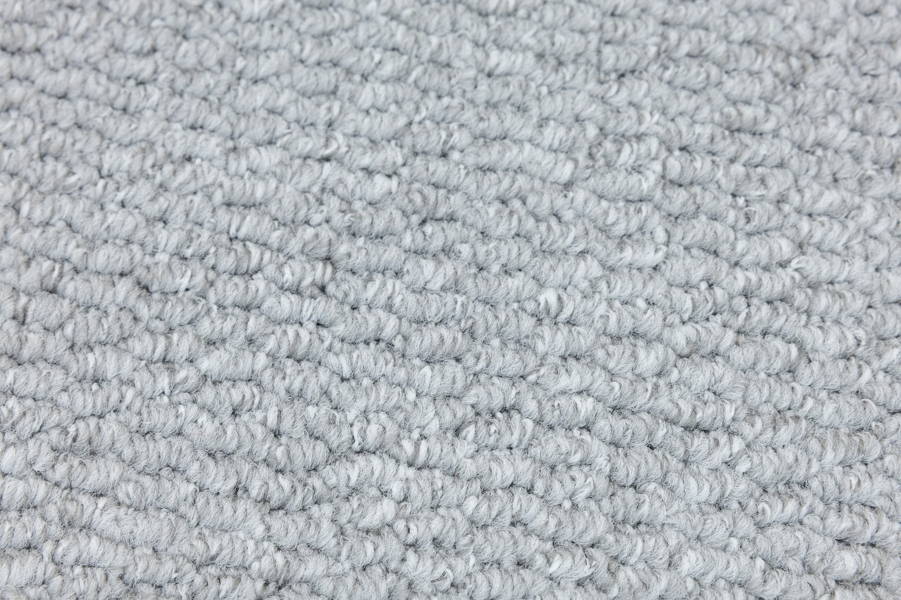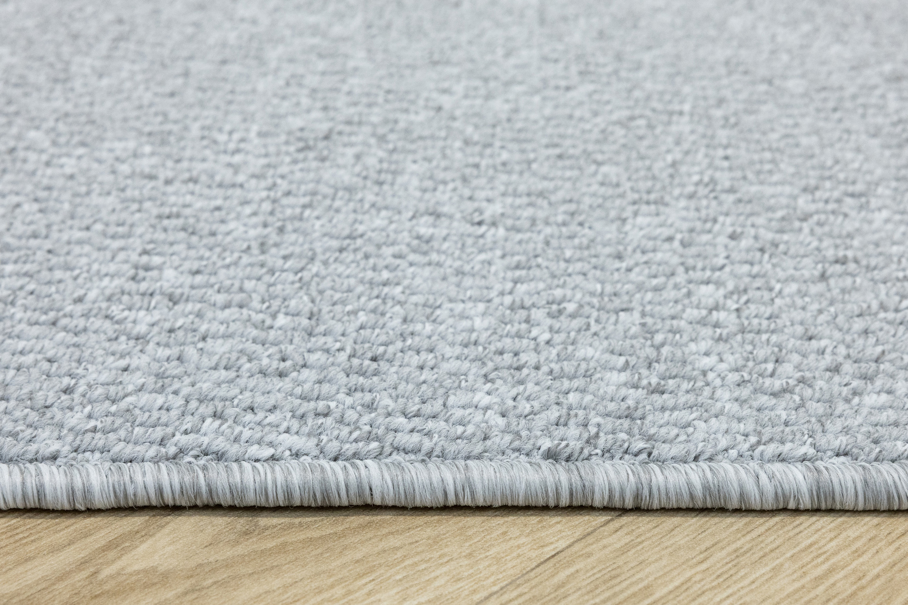 - Wykładzina pętelkowa Brasil z unikalnym, oryginalnym grubym splotem w odcieniu jasnej szarości i spodem wykończonym niebieskim filcem.