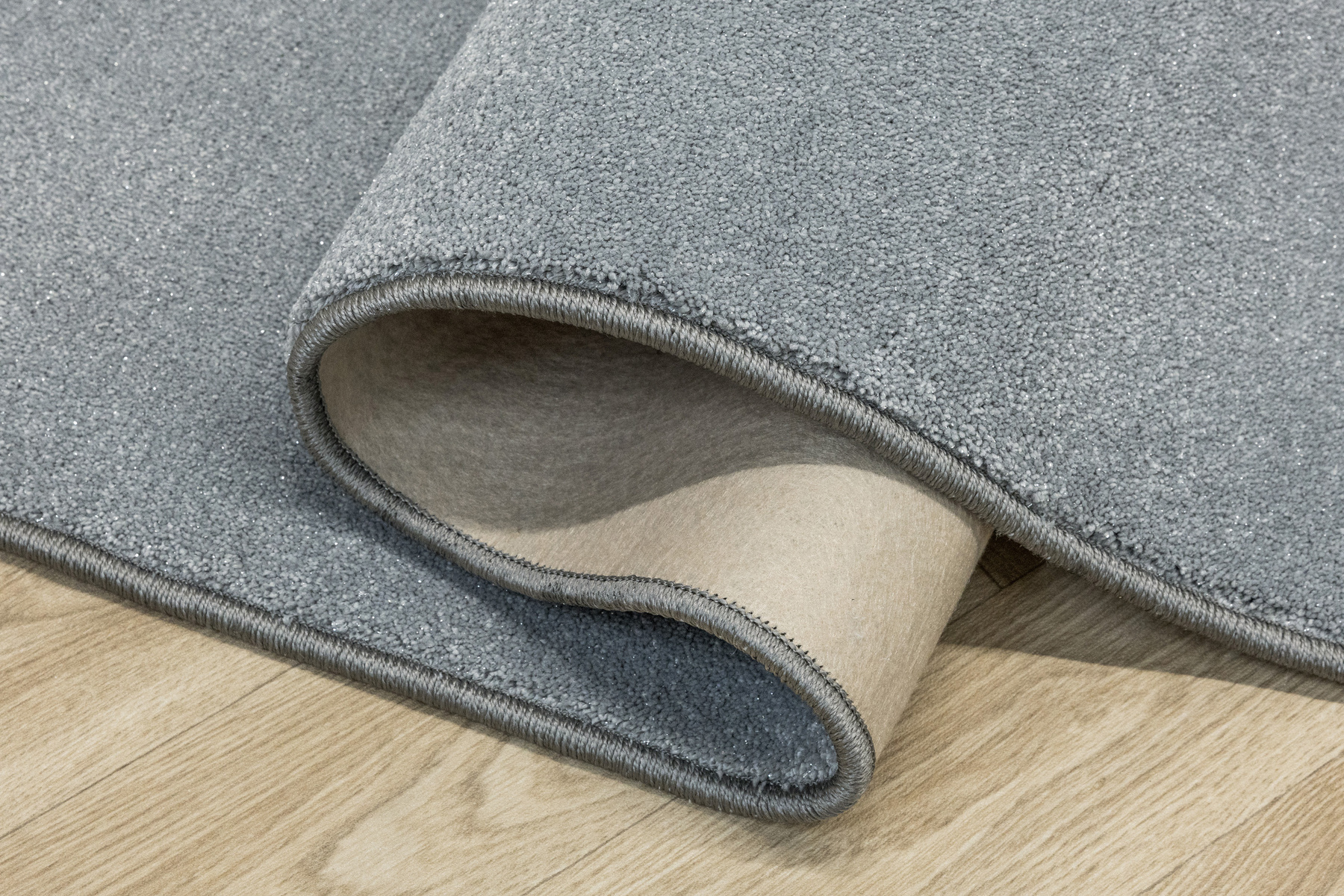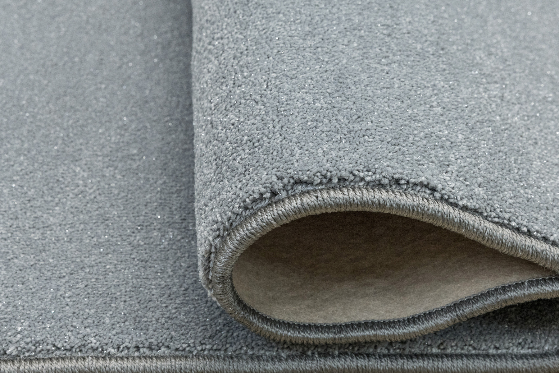 • Luksusowa wykładzina dywanowa Pearl-Flash z grubym, miękkim runem ciętym w szarości ze srebrną nitką i spodem wykończonym filcem.