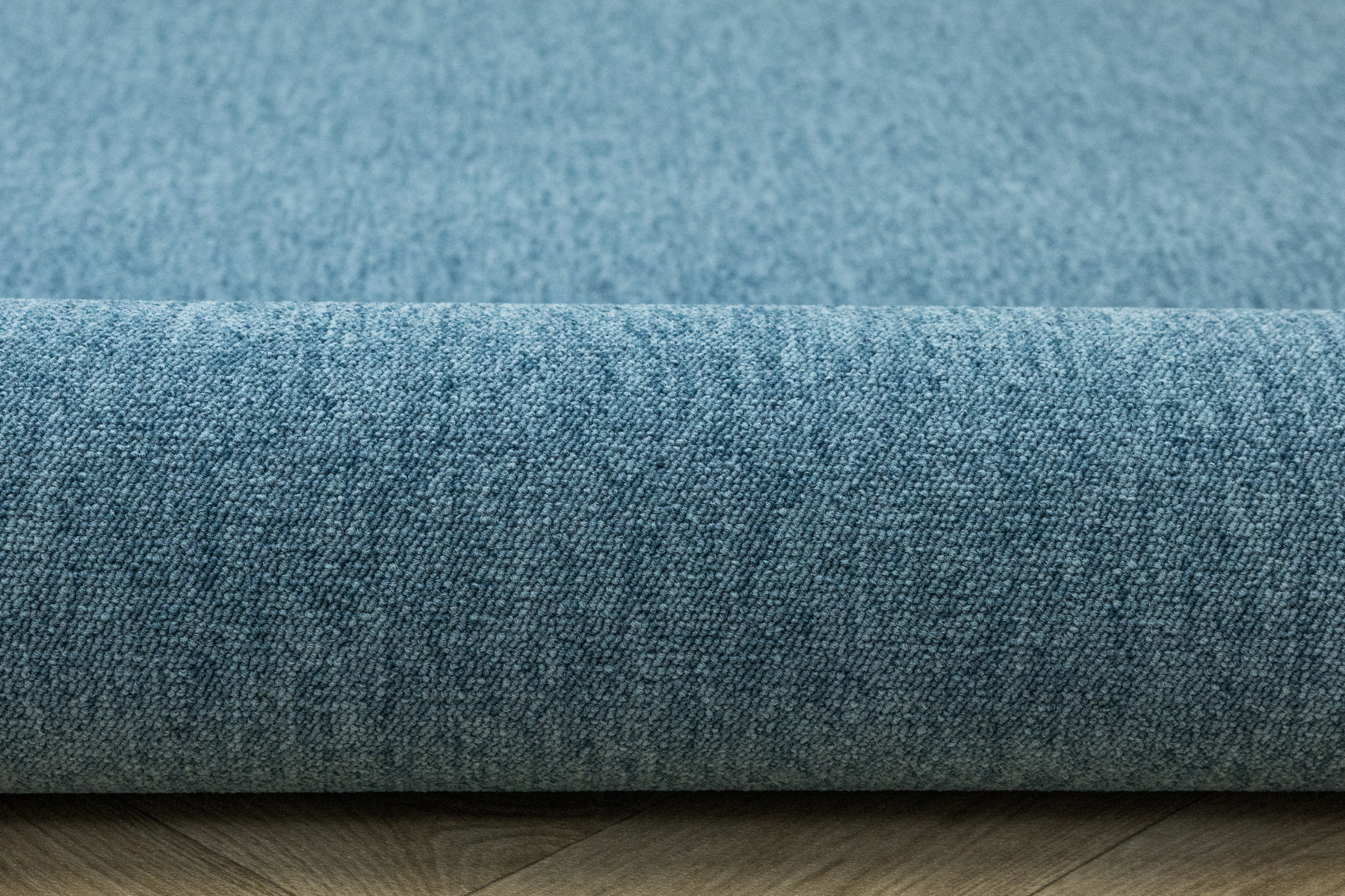 - Wykładzina Mustang z o podwyższonej klasie wytrzymałości, pętelkowym runem poliamidowym w odcieniu turkusu i spodem wykończonym filcem.