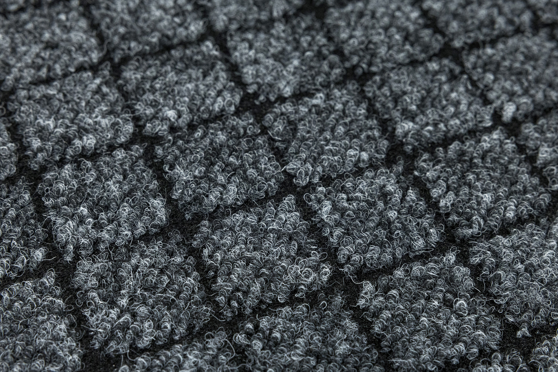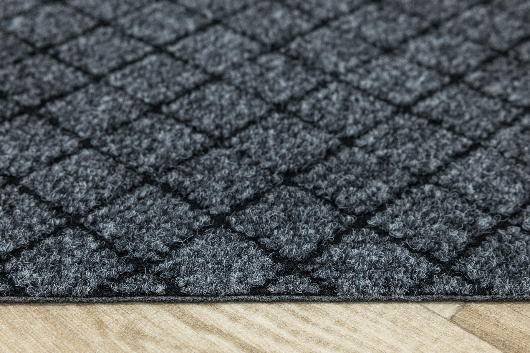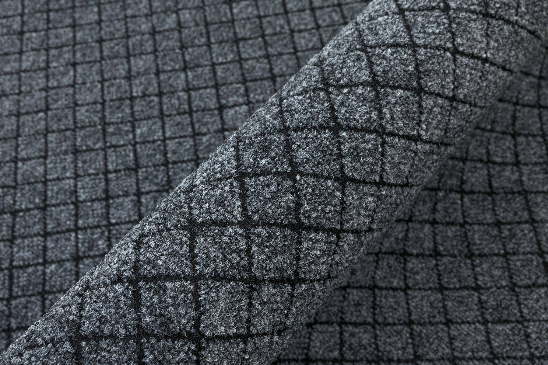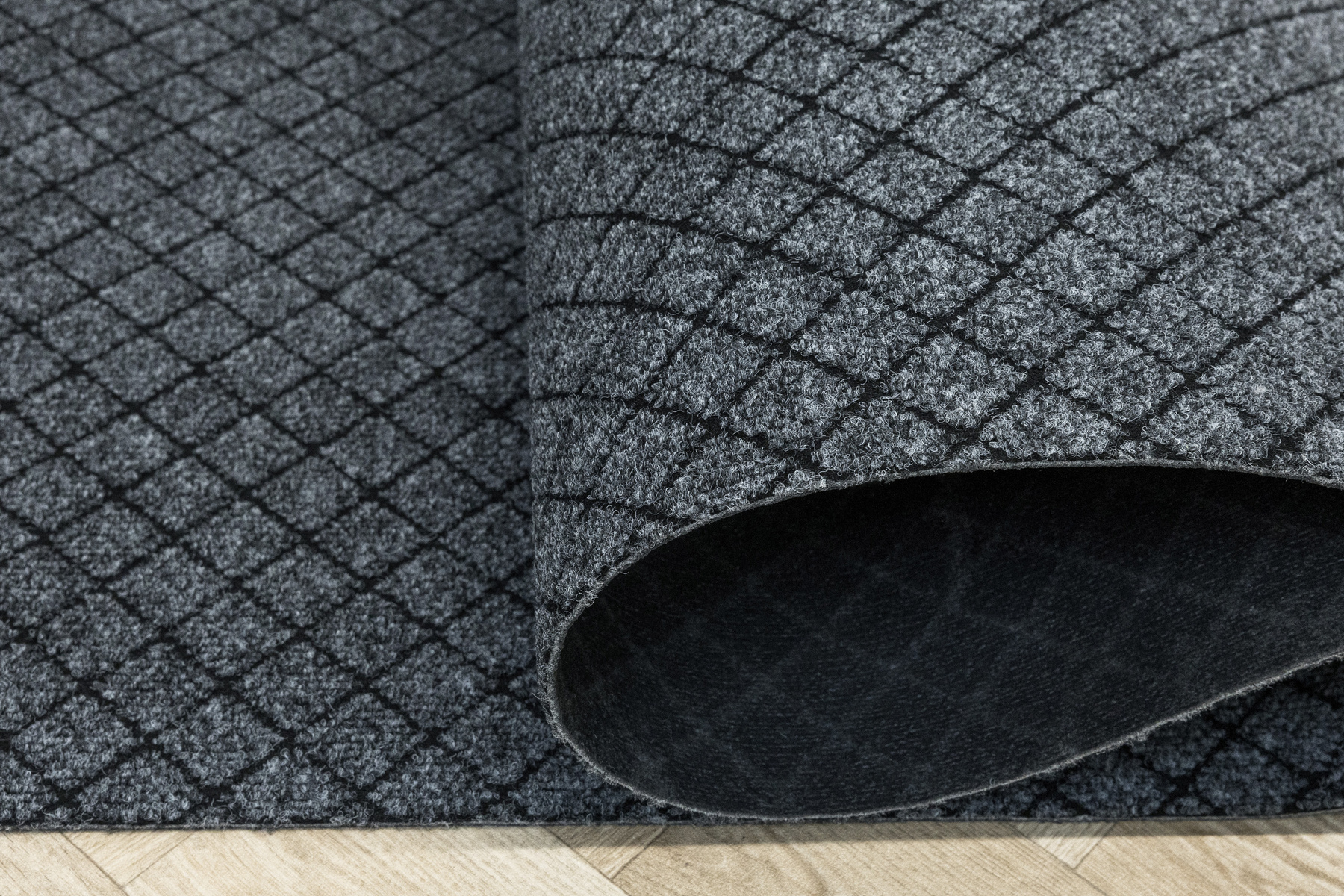 - Antypoślizgowy chodnik wycieraczka Lider 1402 z igłowanym runem ze wzorem w romby w odcieniach szarości i antracytu oraz podgumowanym spodem.