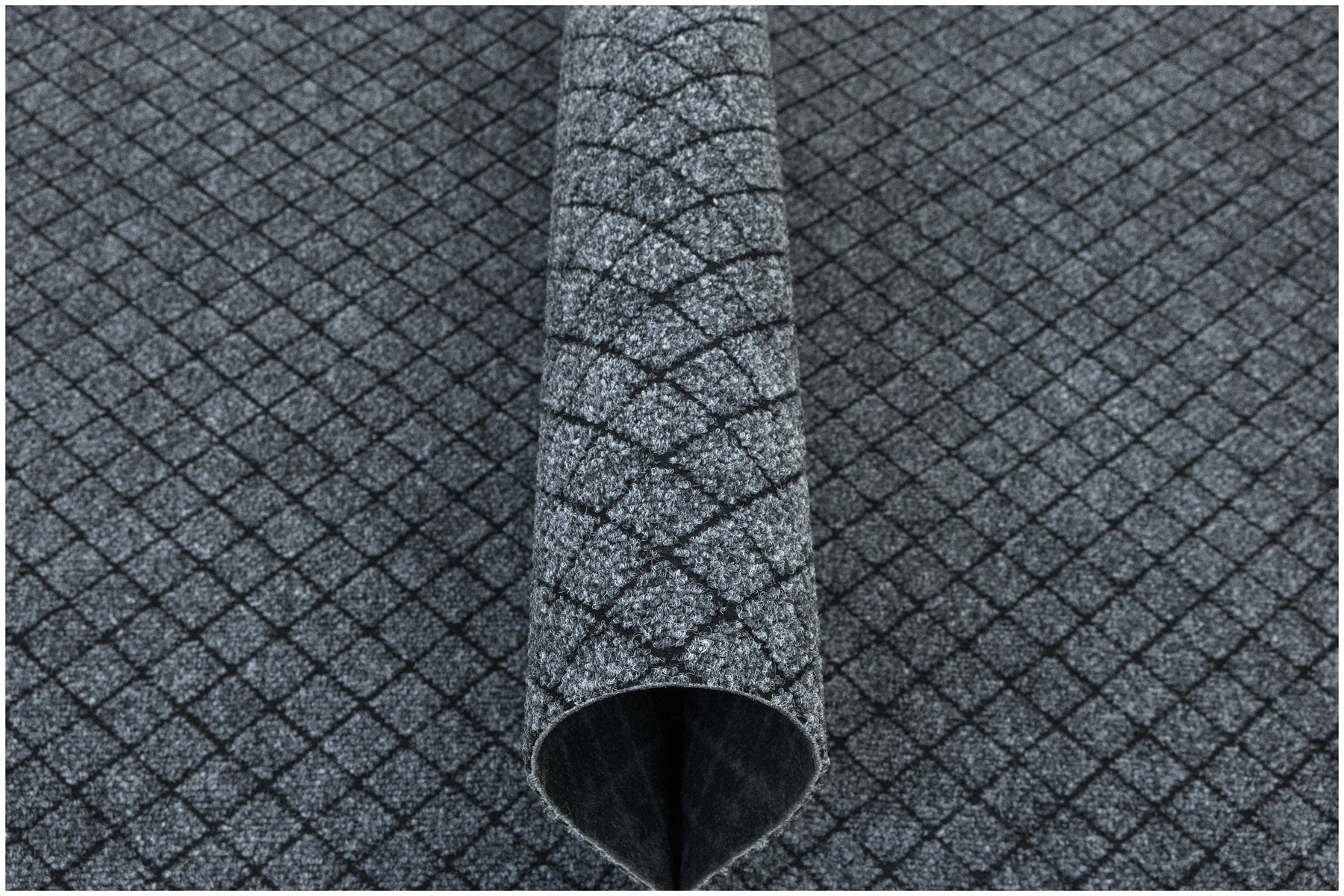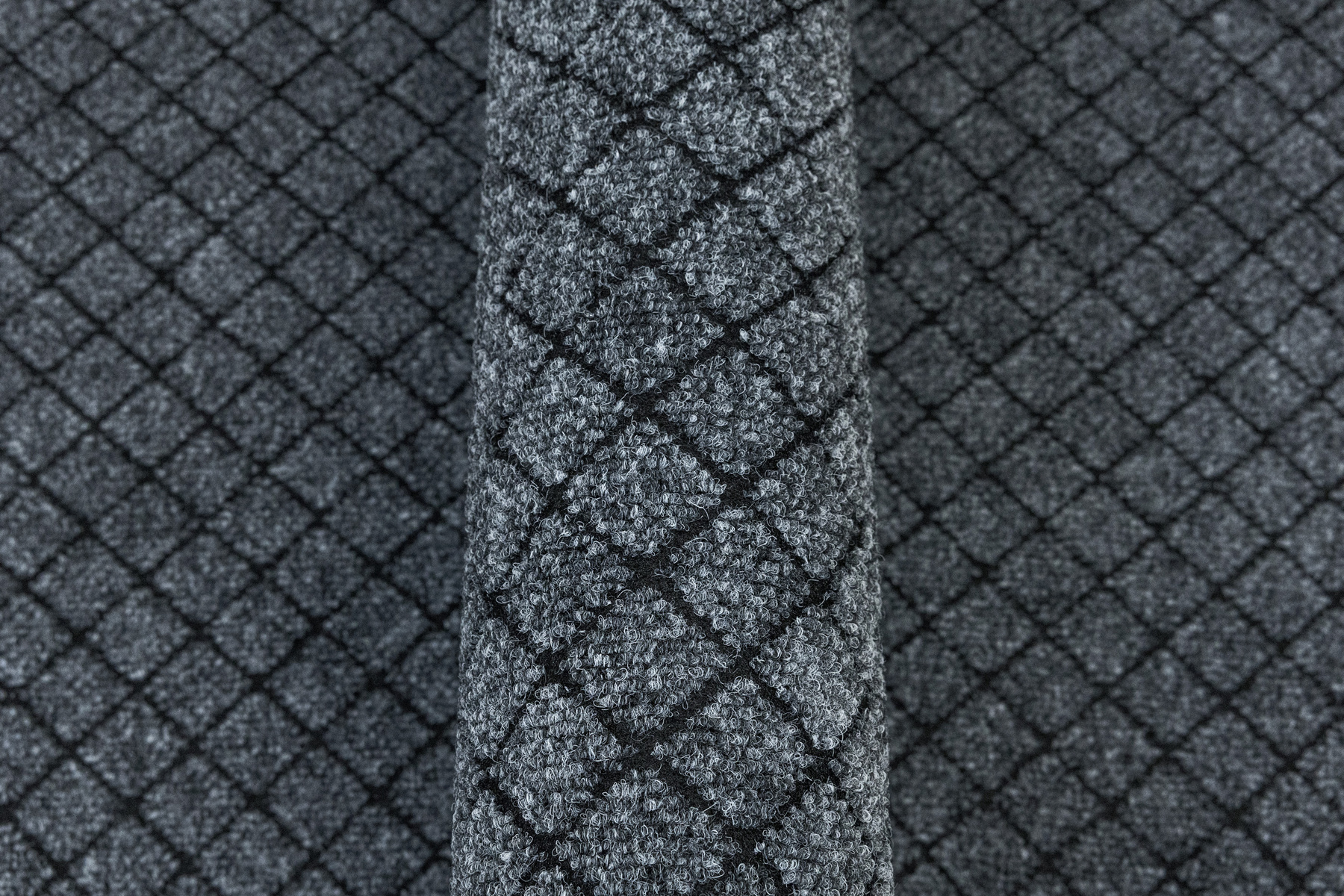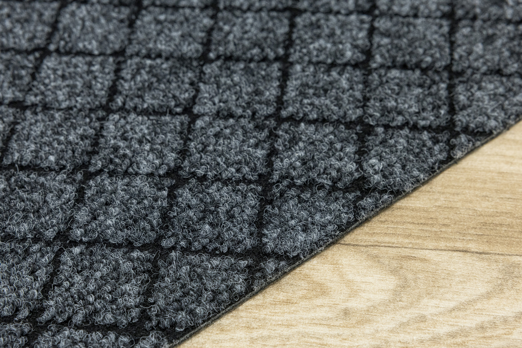 - Antypoślizgowy chodnik wycieraczka Lider 1402 z igłowanym runem ze wzorem w romby w odcieniach szarości i antracytu oraz podgumowanym spodem.