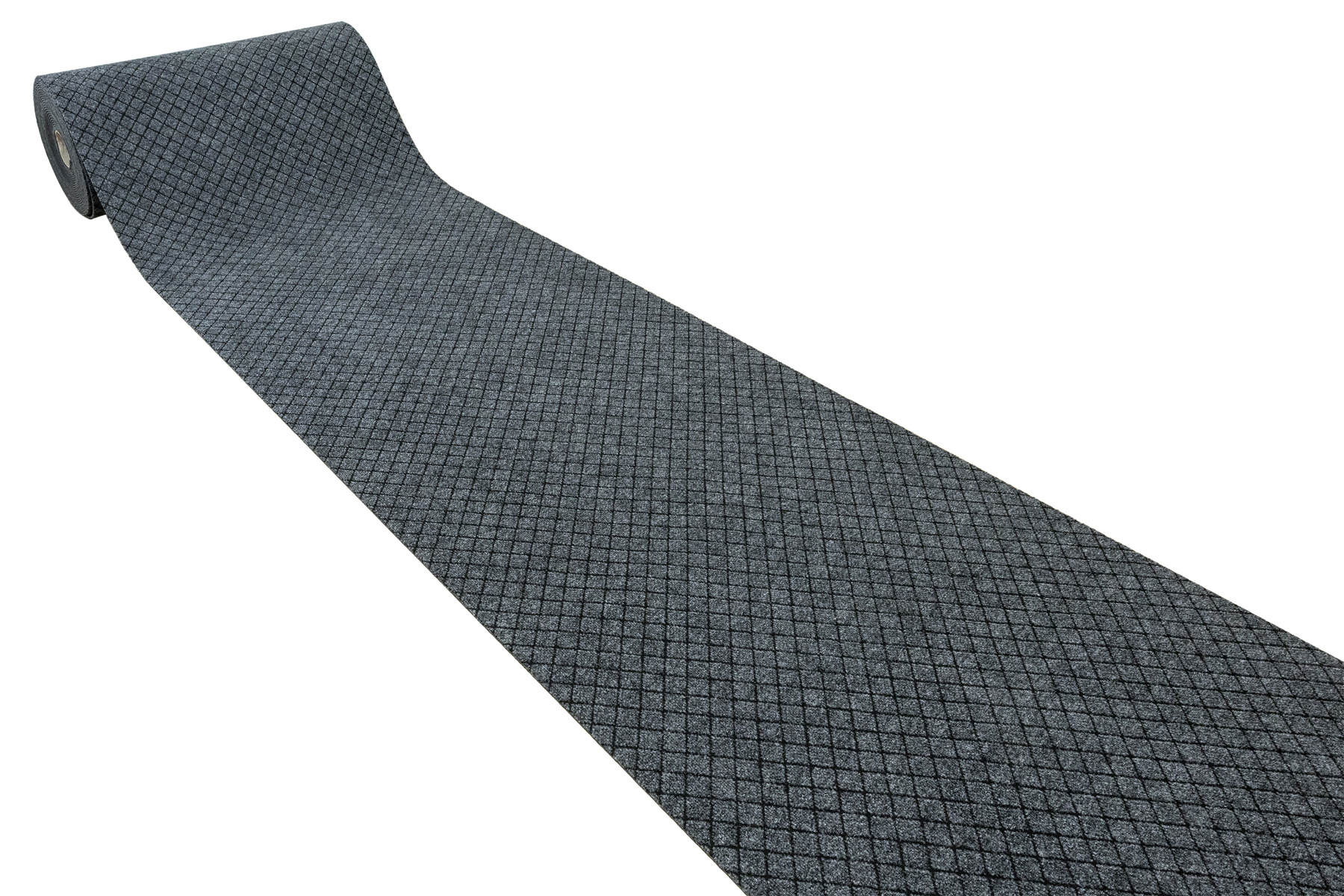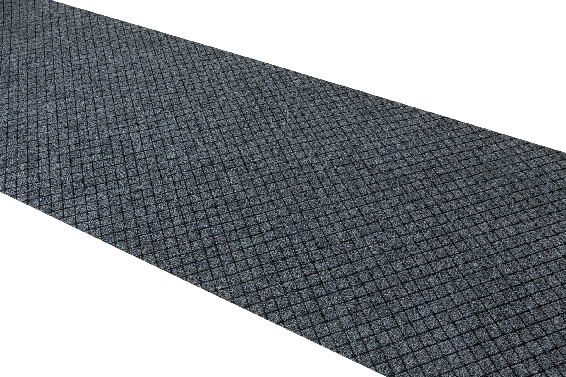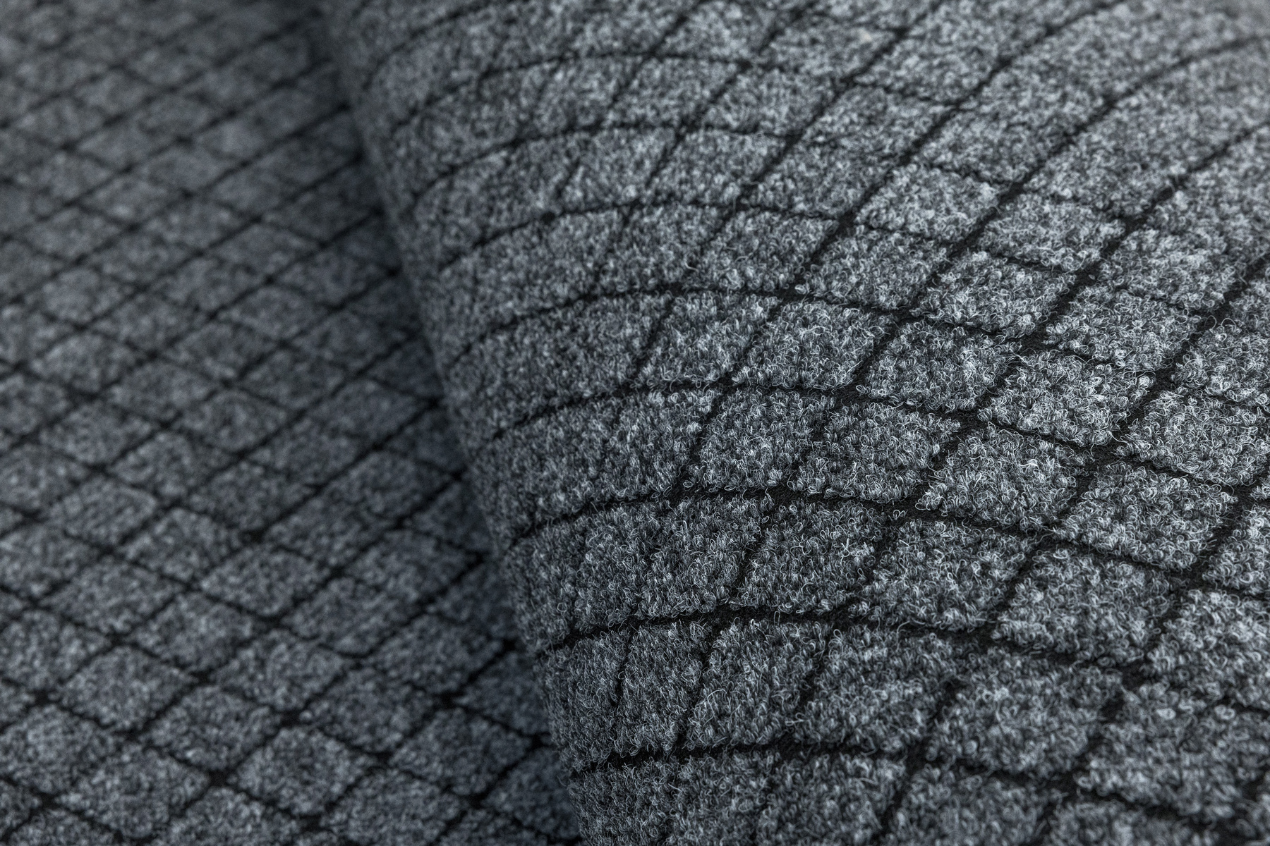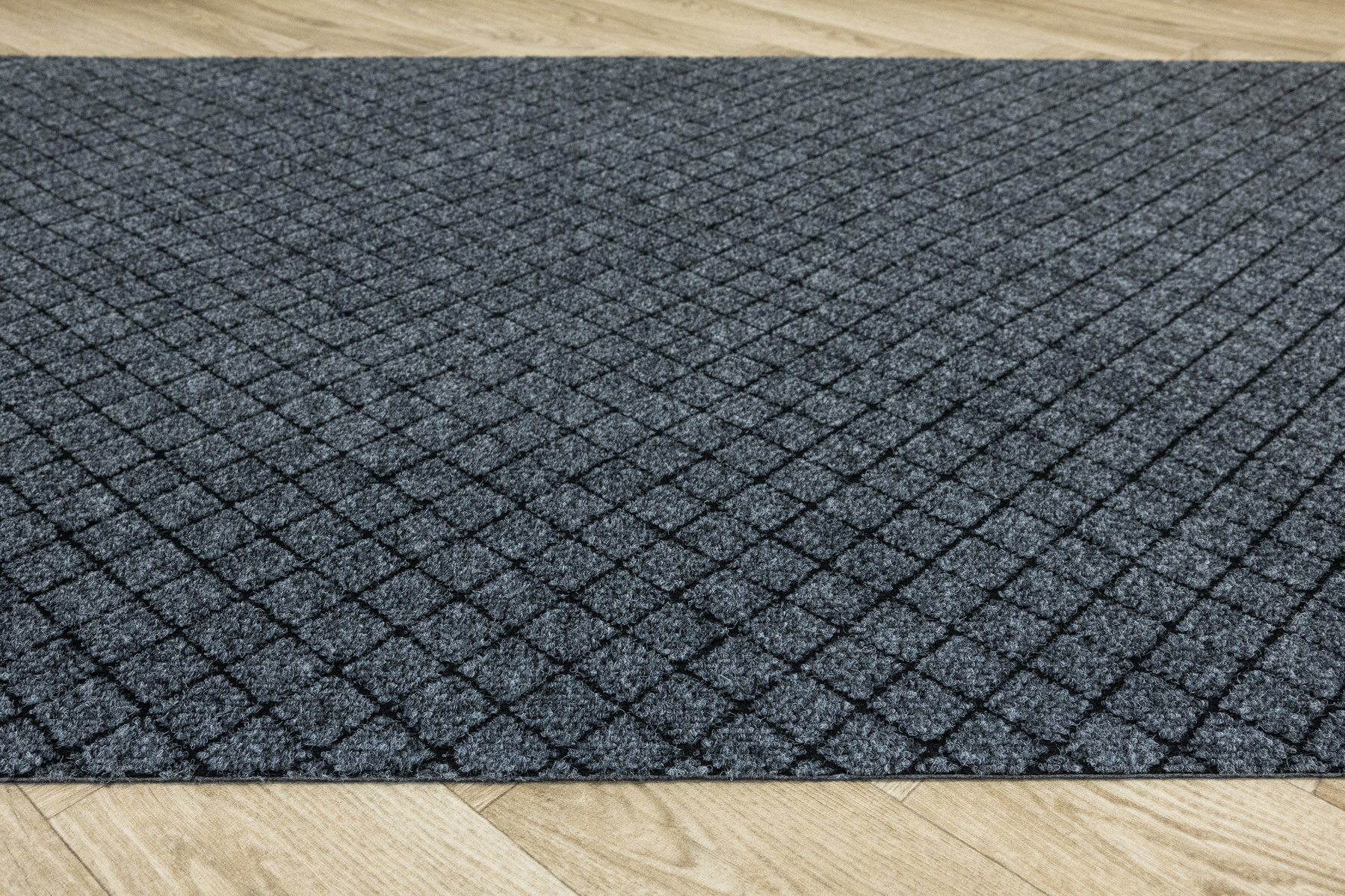 - Antypoślizgowy chodnik wycieraczka Lider 1402 z igłowanym runem ze wzorem w romby w odcieniach szarości i antracytu oraz podgumowanym spodem.