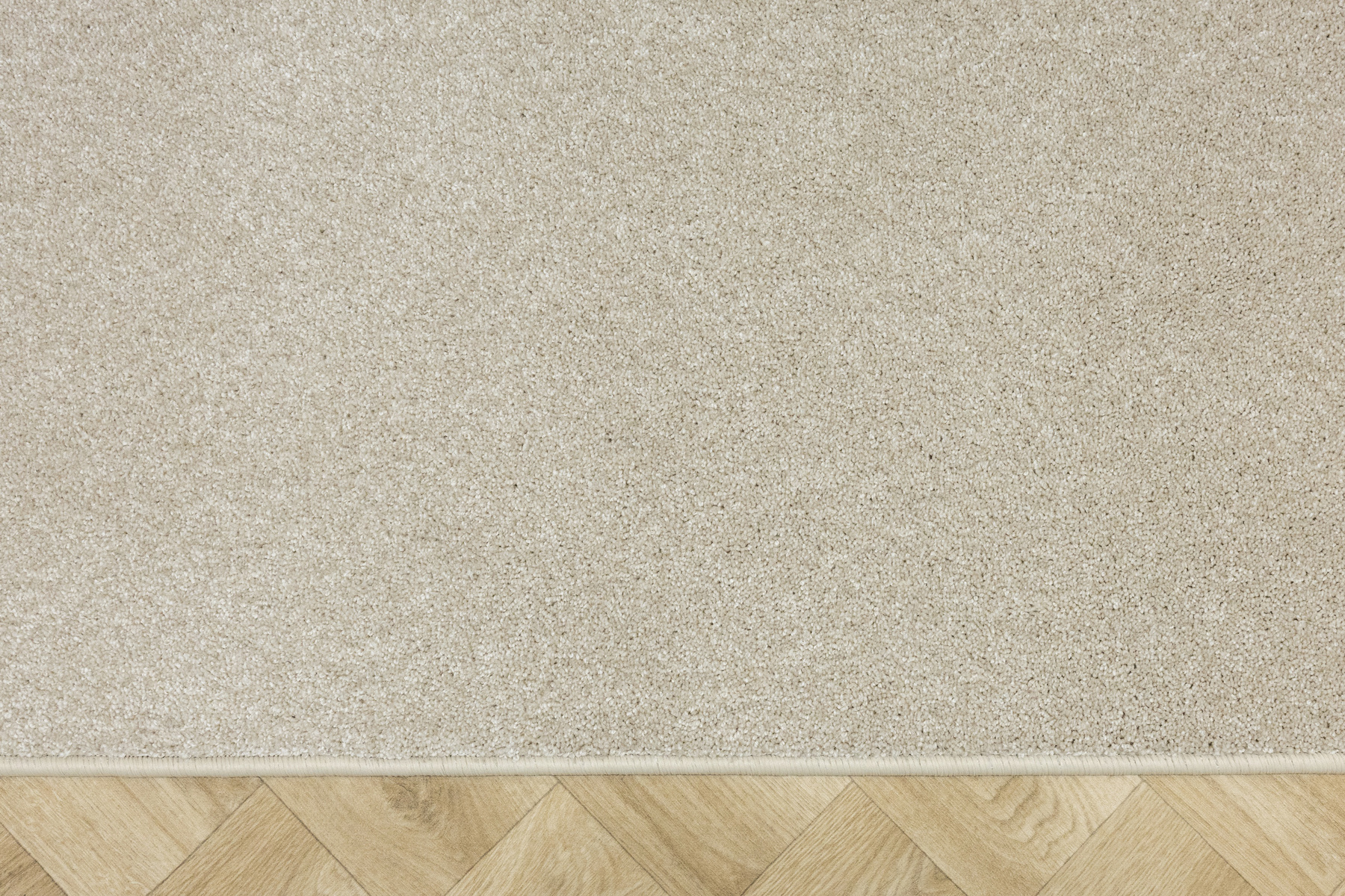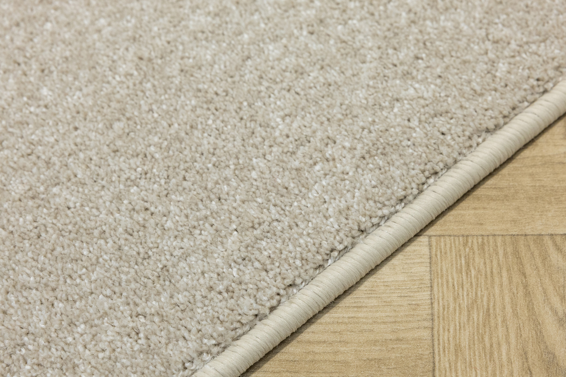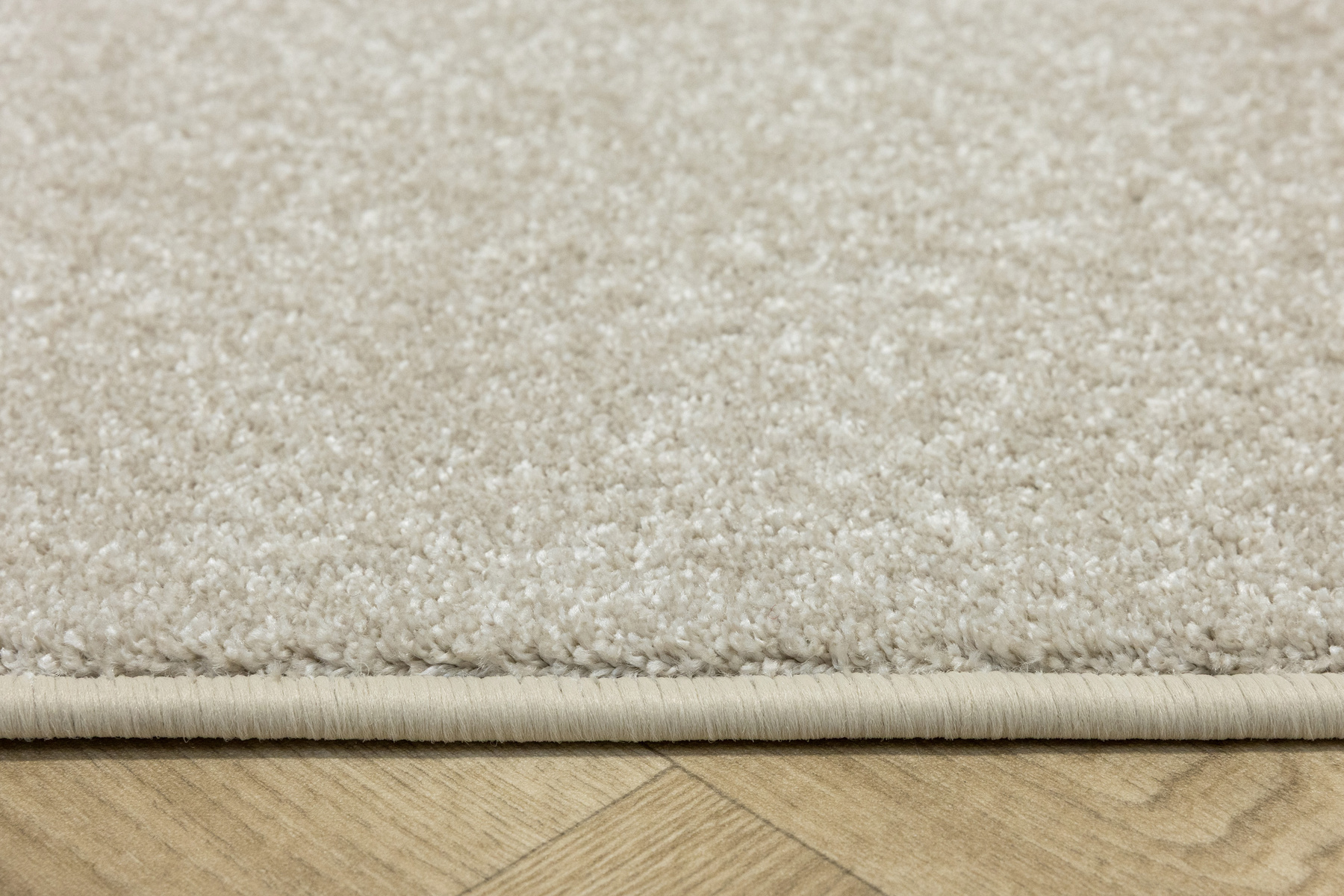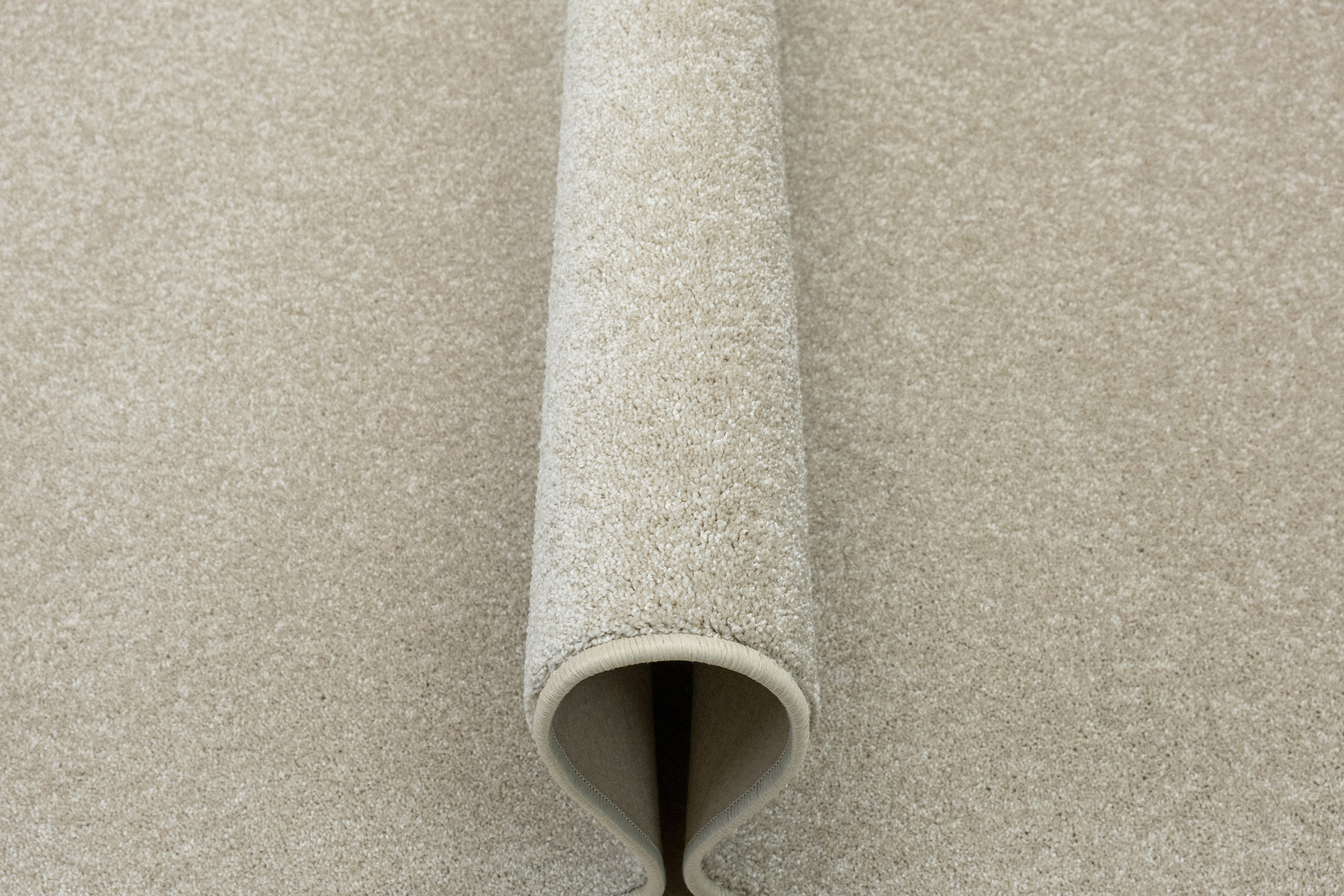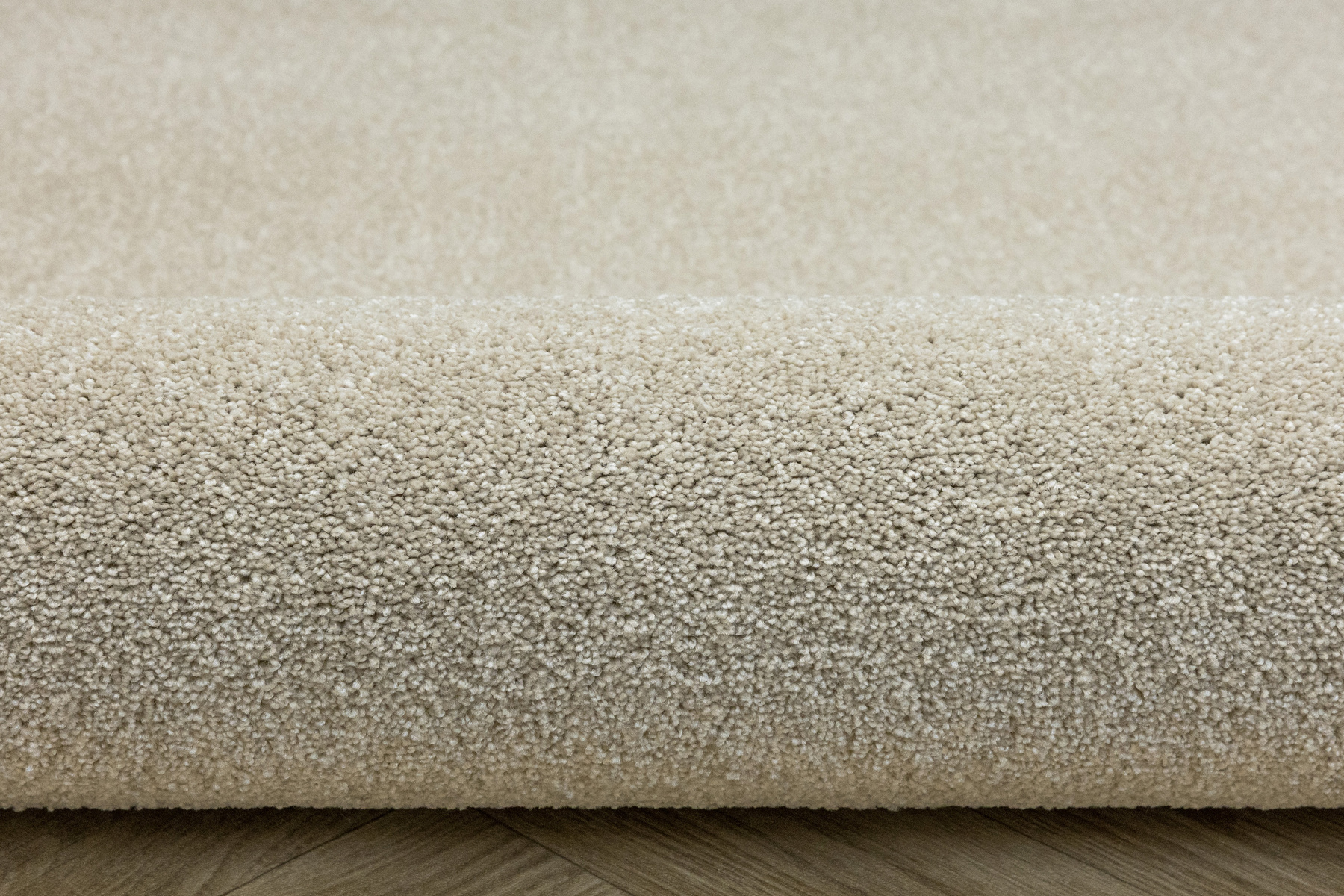 - Nowoczesny dywan z wykładziny Brighton z grubym runem w odcieniu kaszmirowego beżu i spodem wykończonym filcem.