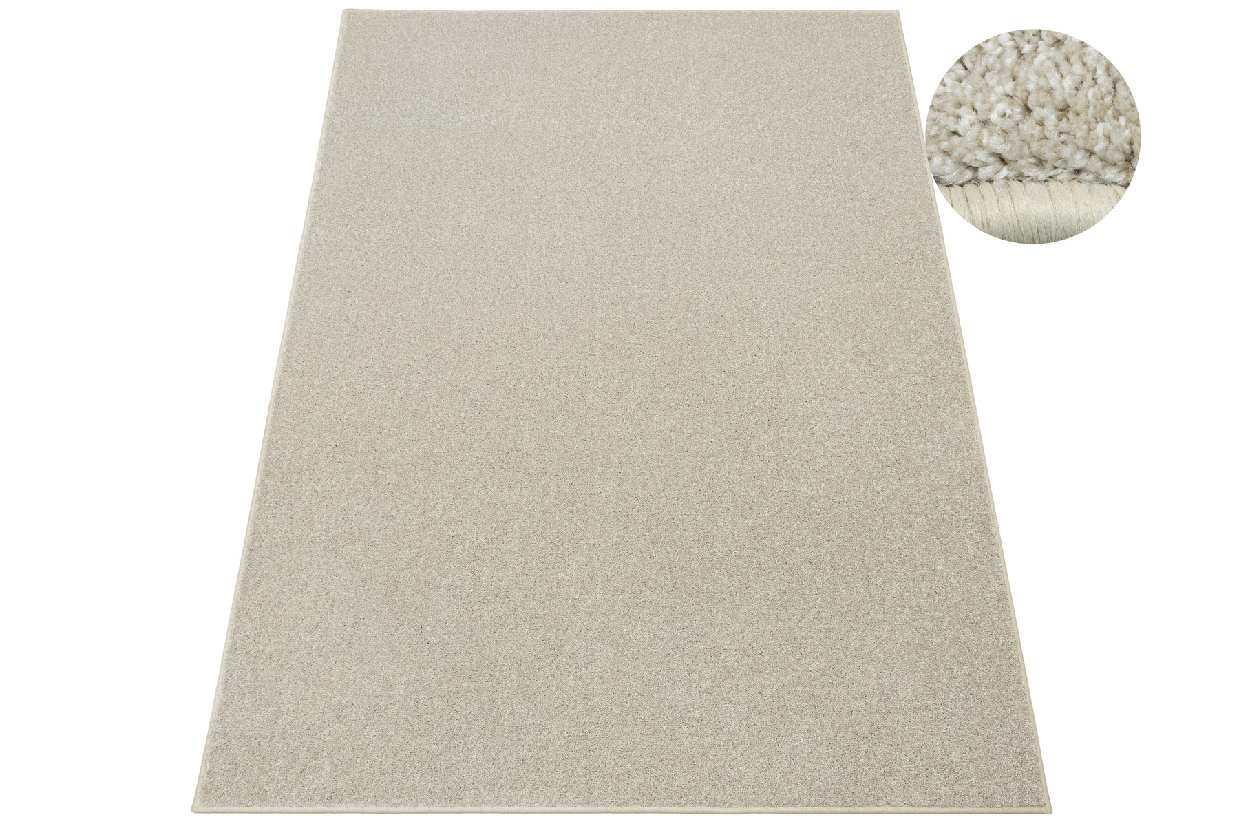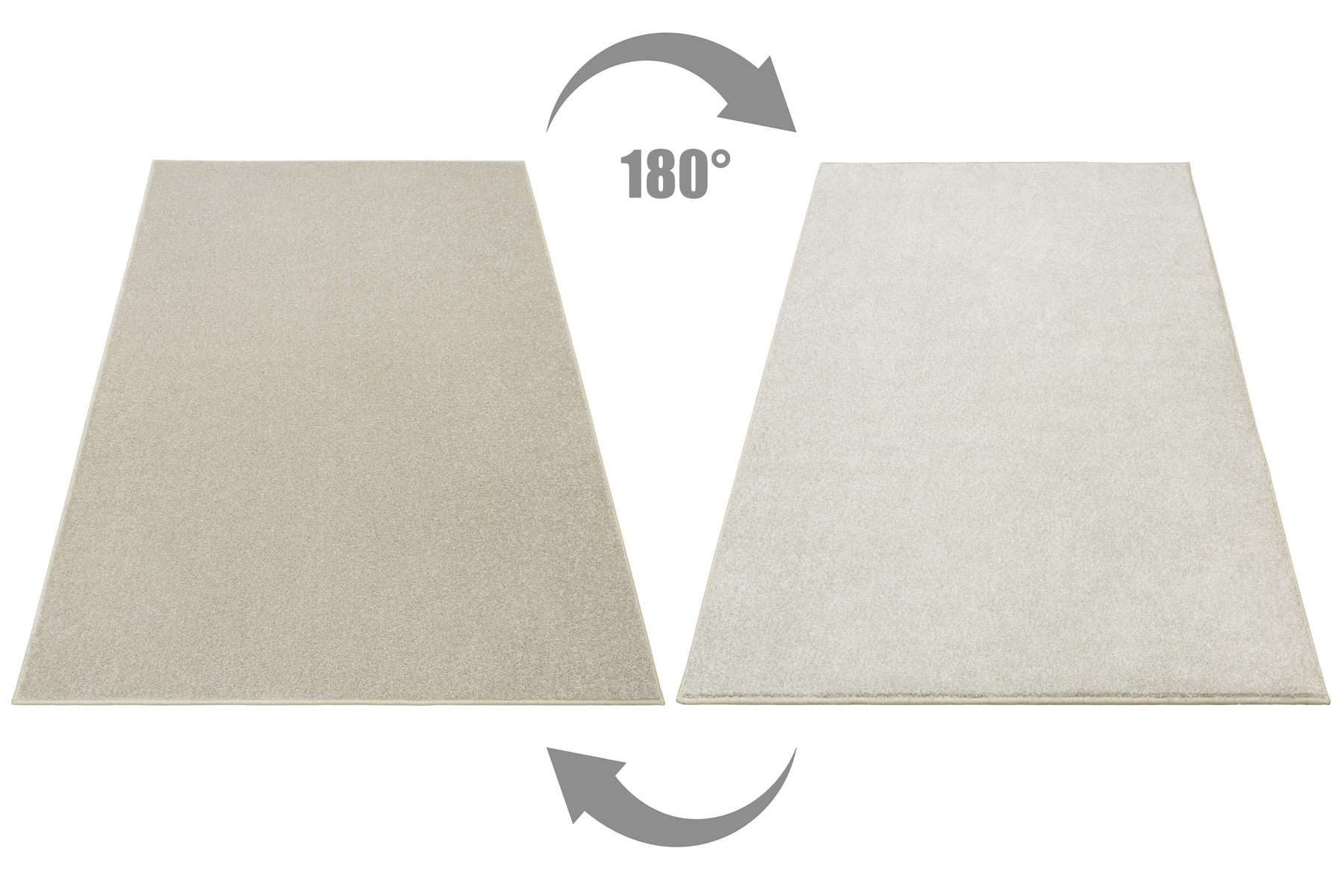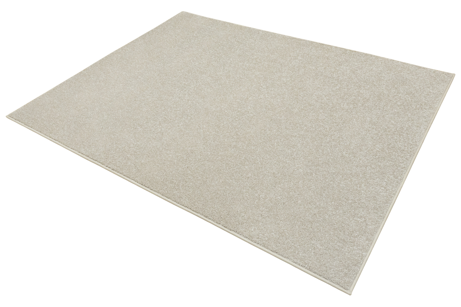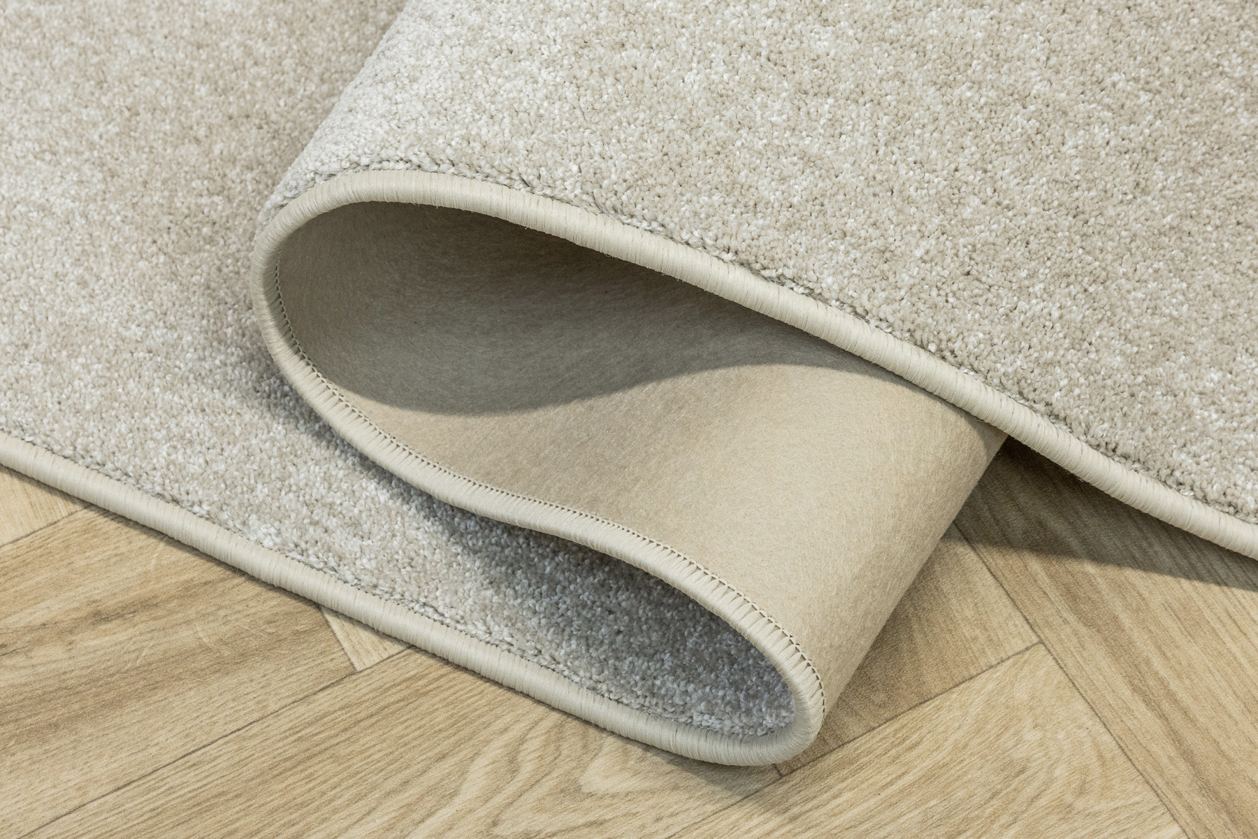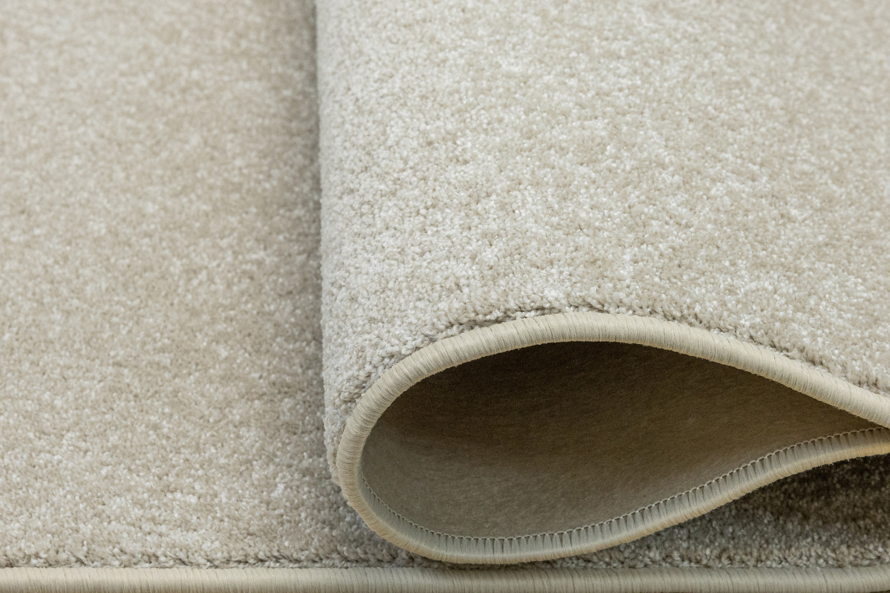 - Nowoczesny dywan z wykładziny Brighton z grubym runem w odcieniu kaszmirowego beżu i spodem wykończonym filcem.