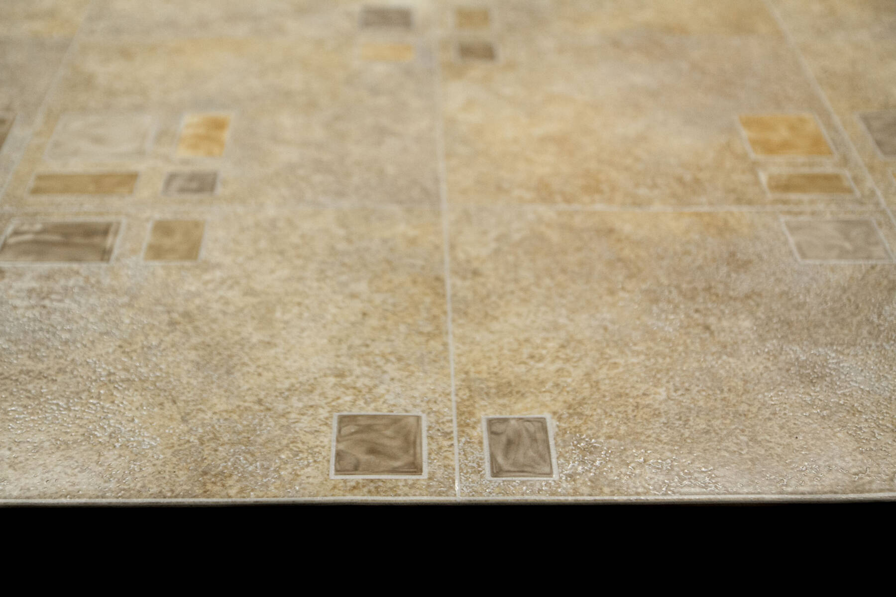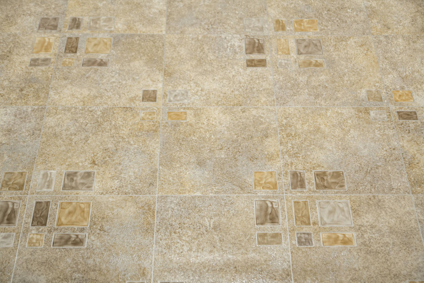 - Wykładzina PCV Olympic Capri 2 to imitacja kwadratowych płytek podłogowych w odcieniach beżu, brązu, kremu z dodatkiem srebrzystej szarości.