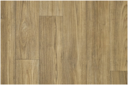 - Trwała wykładzina PCV Supreme Java Teak ze wzorem imitującym podłogę z desek, paneli w odcieniach beżu i akcentami brązu oraz spodem na filcowym podkładzie.