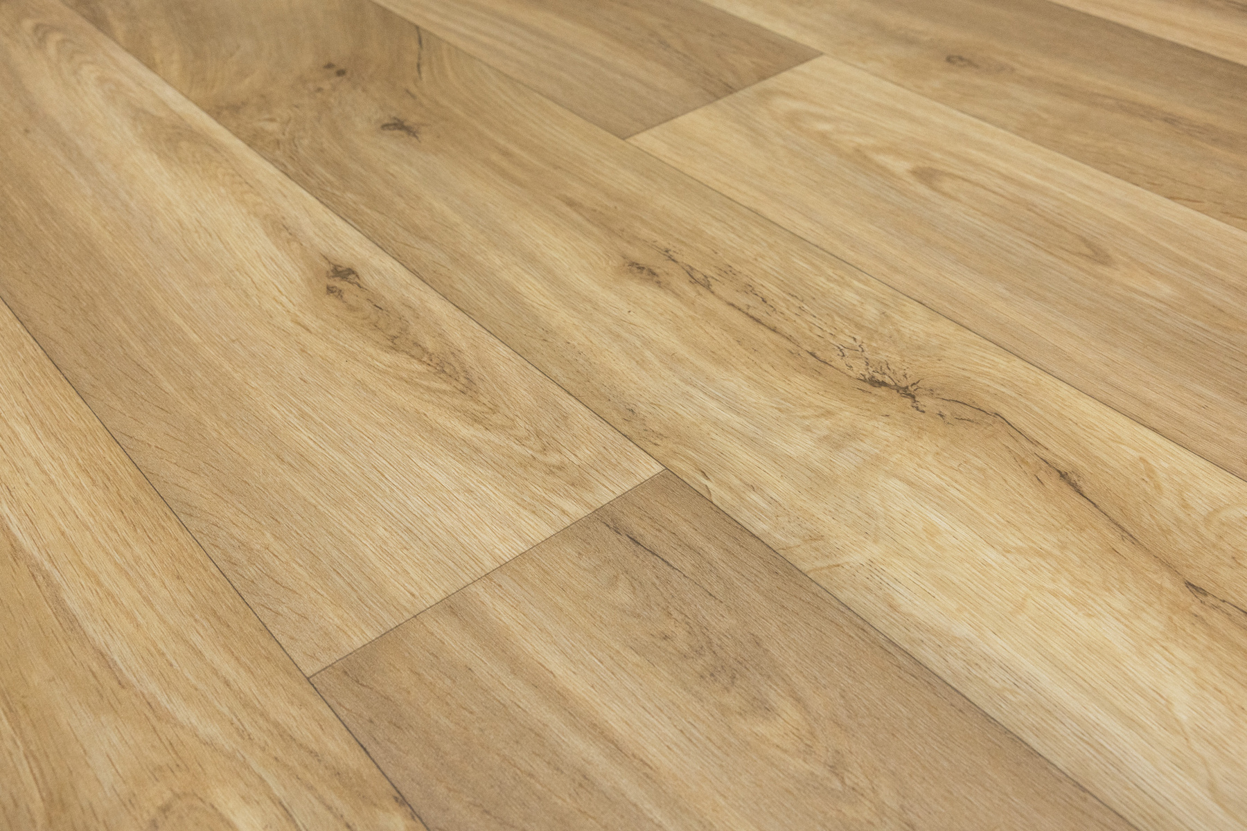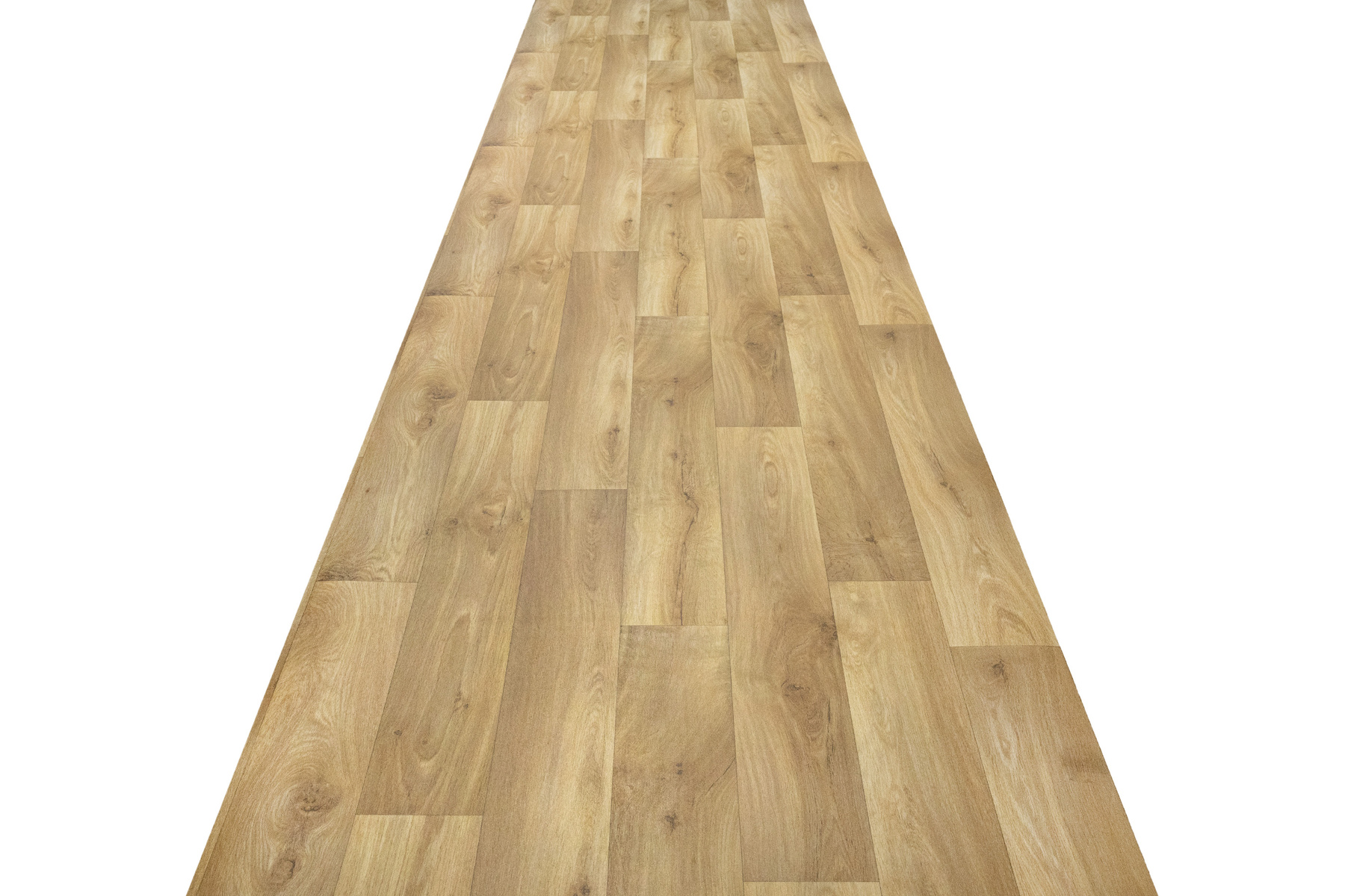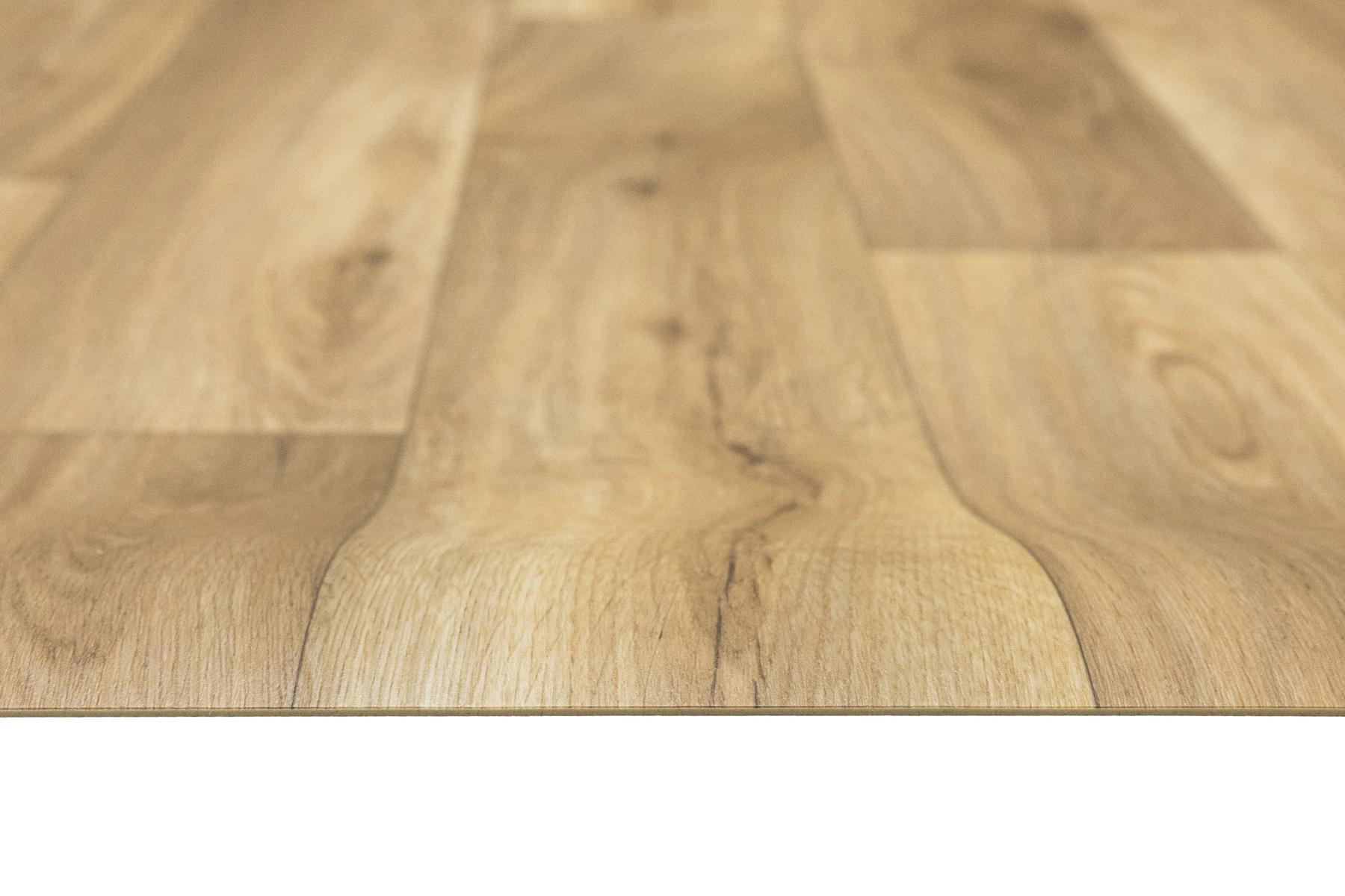 • Elastyczna wykładzina PCV Ttitan Willow Oak komercyjna o podwyższonej wytrzymałości ze wzorem imitującym podłogę z desek.