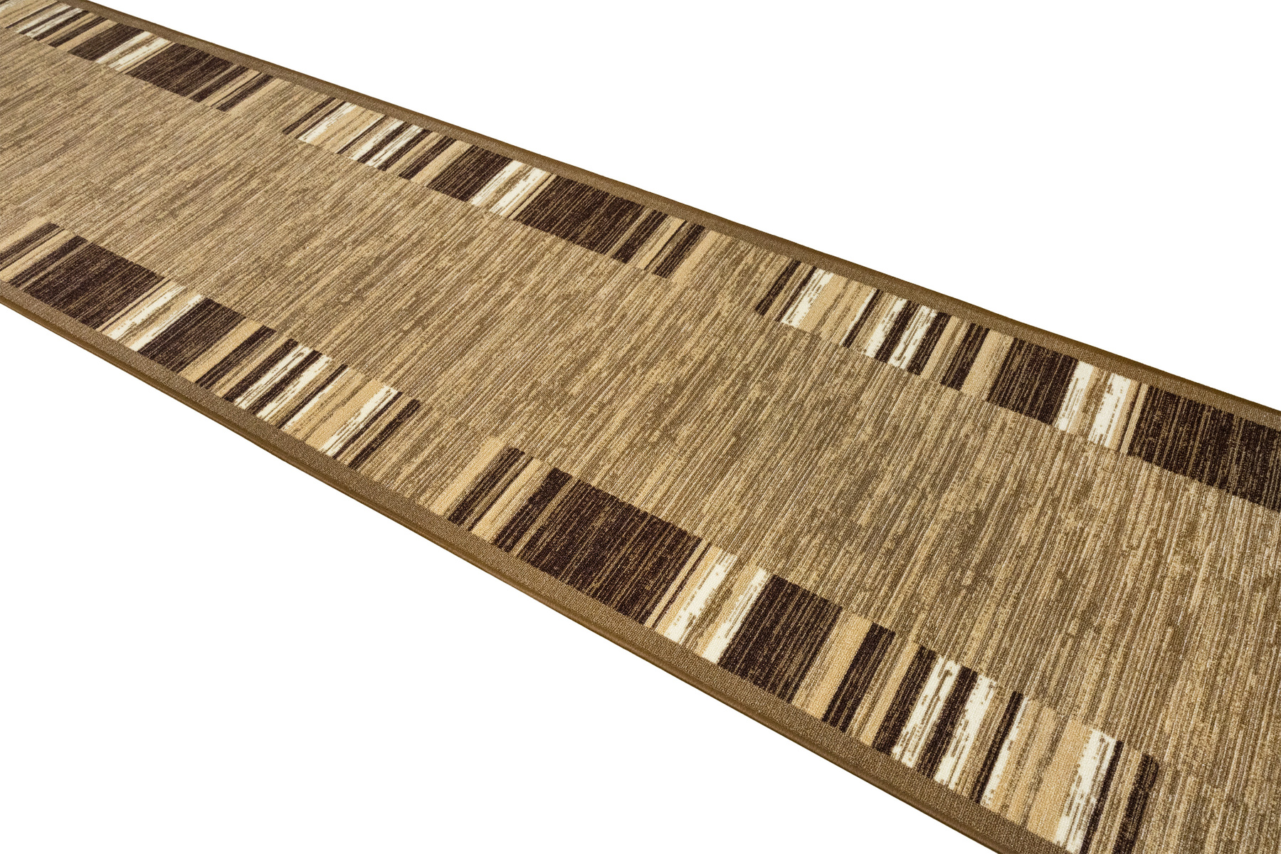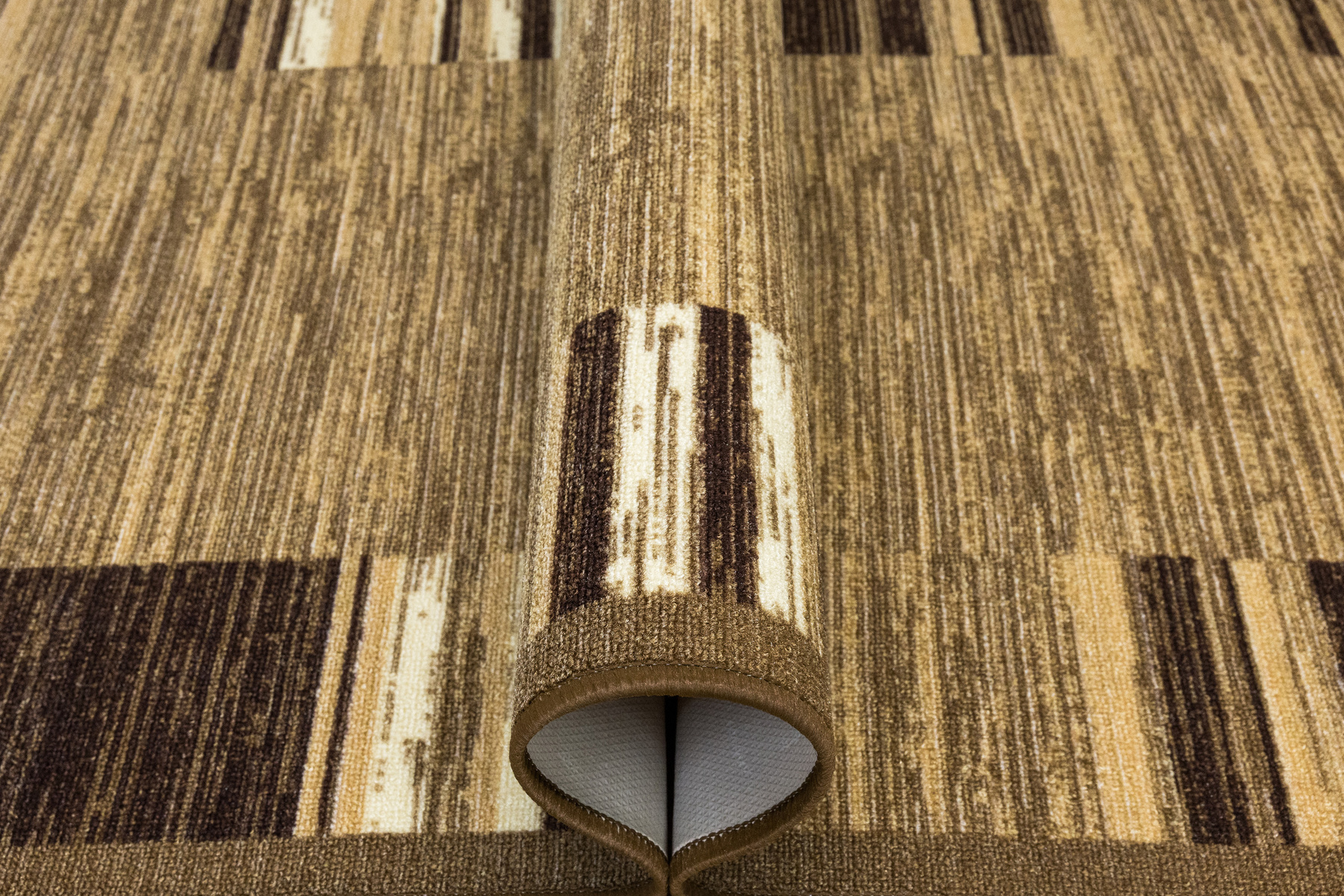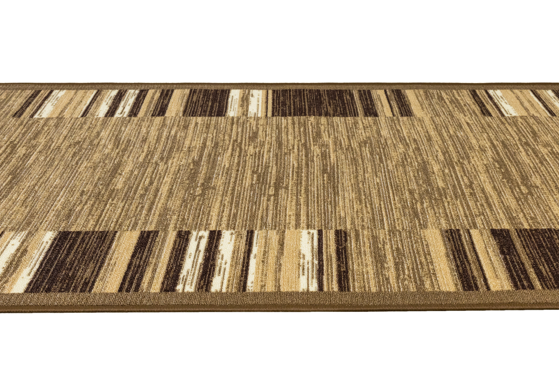 - Antypoślizgowy chodnik Adagio z geometrycznym wzorem w odcieniach beżu i brązu oraz podgumowanym spodem.