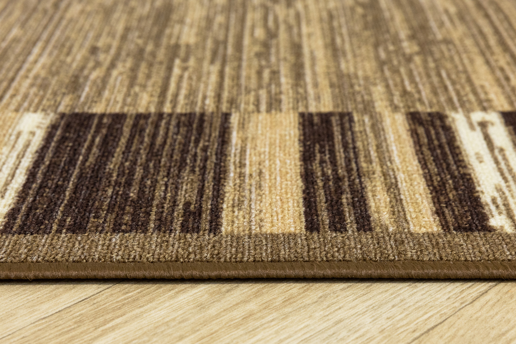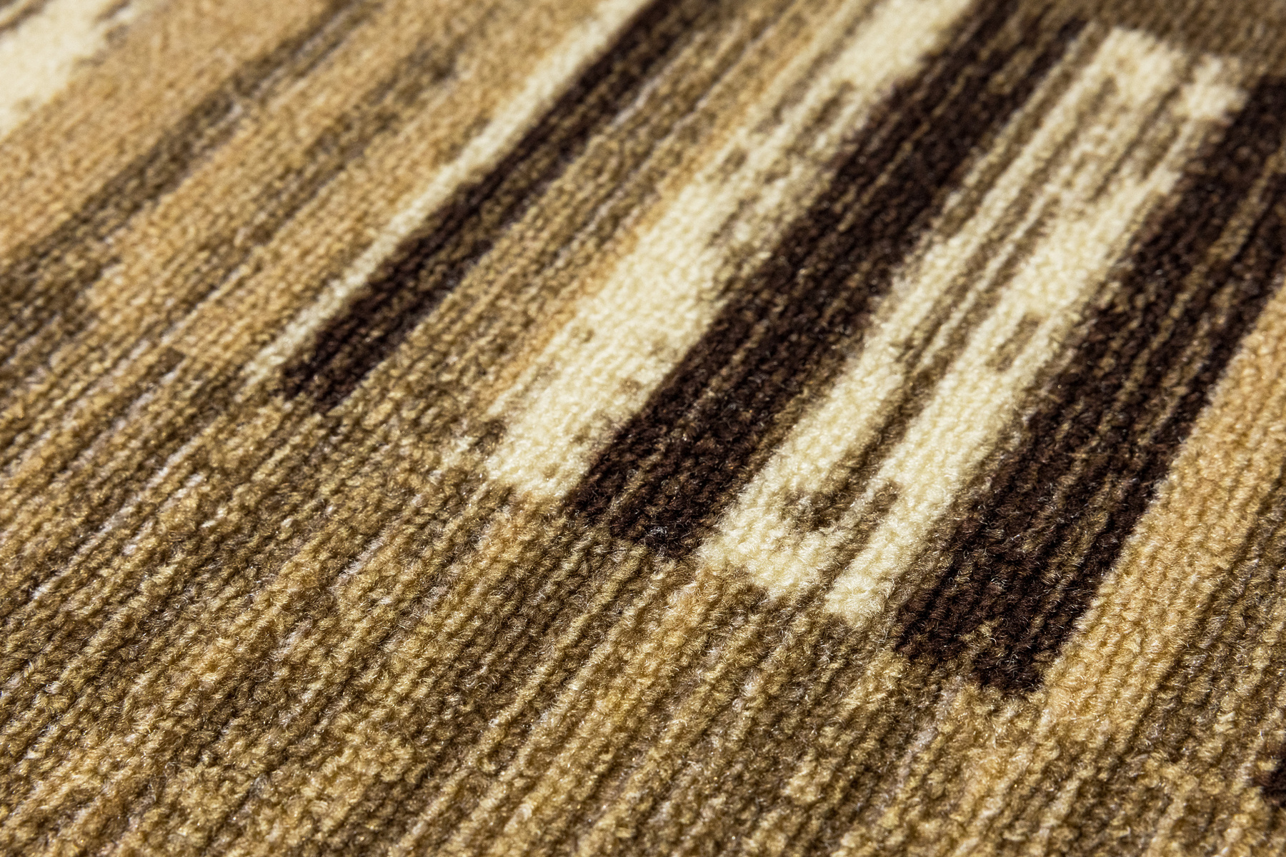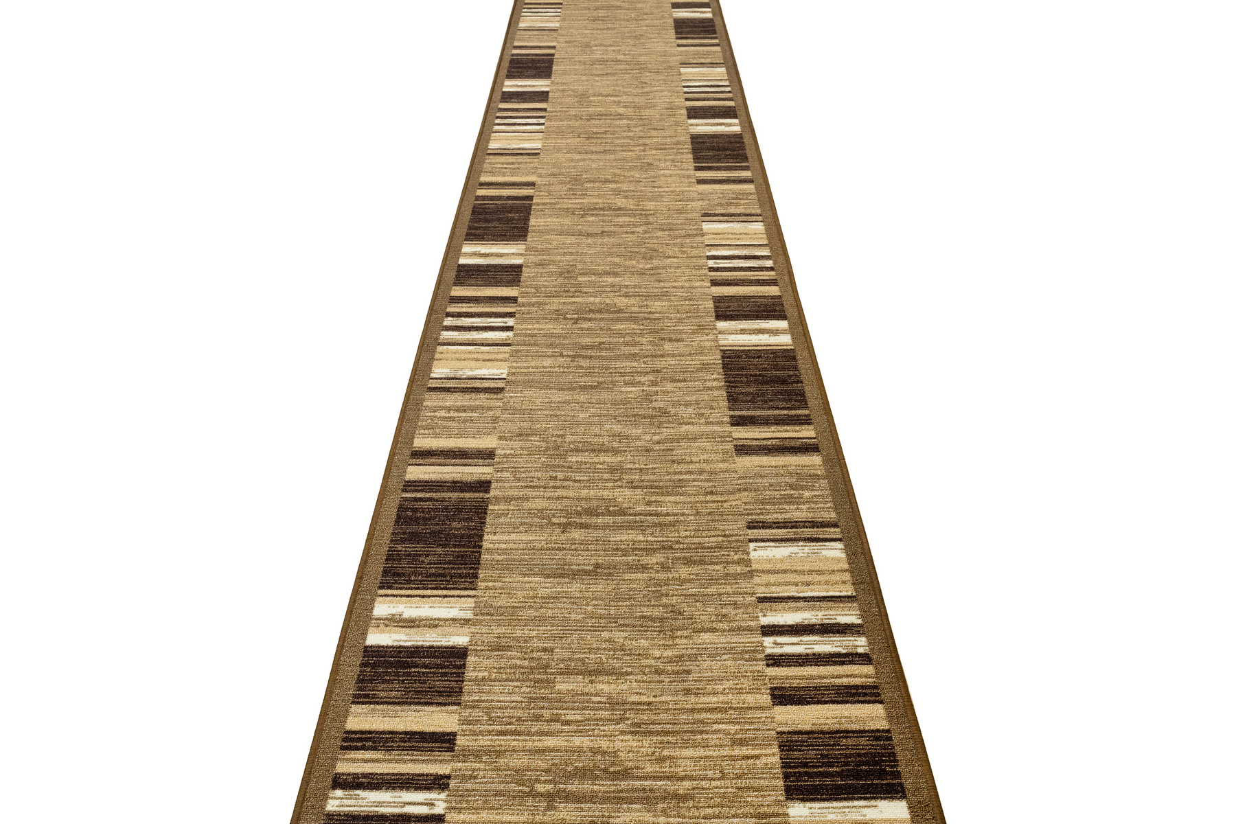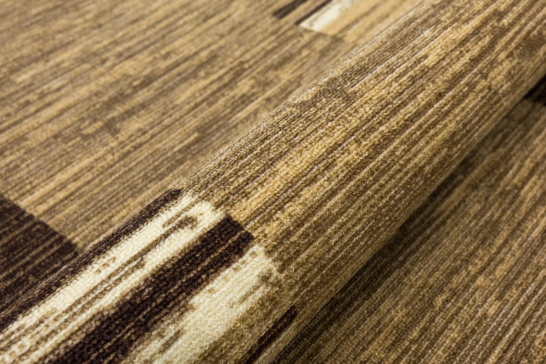 - Antypoślizgowy chodnik Adagio z geometrycznym wzorem w odcieniach beżu i brązu oraz podgumowanym spodem.