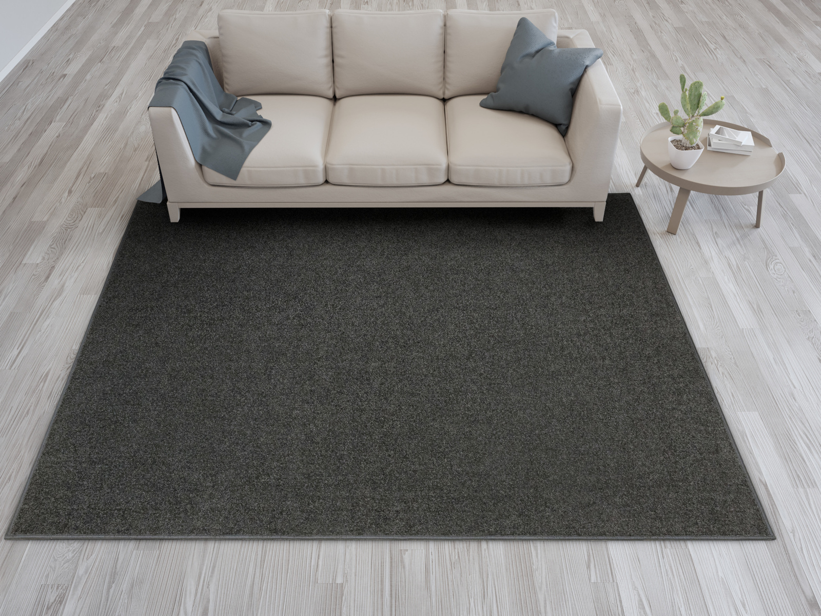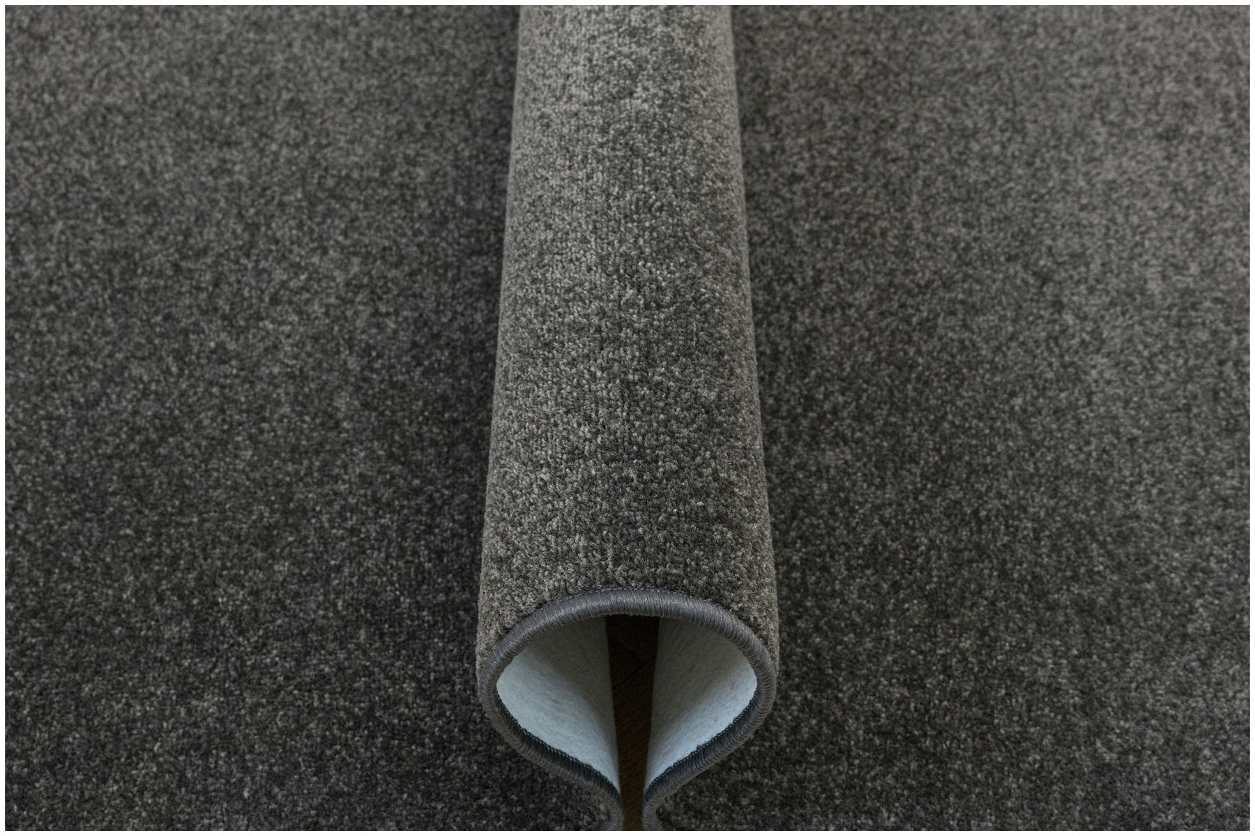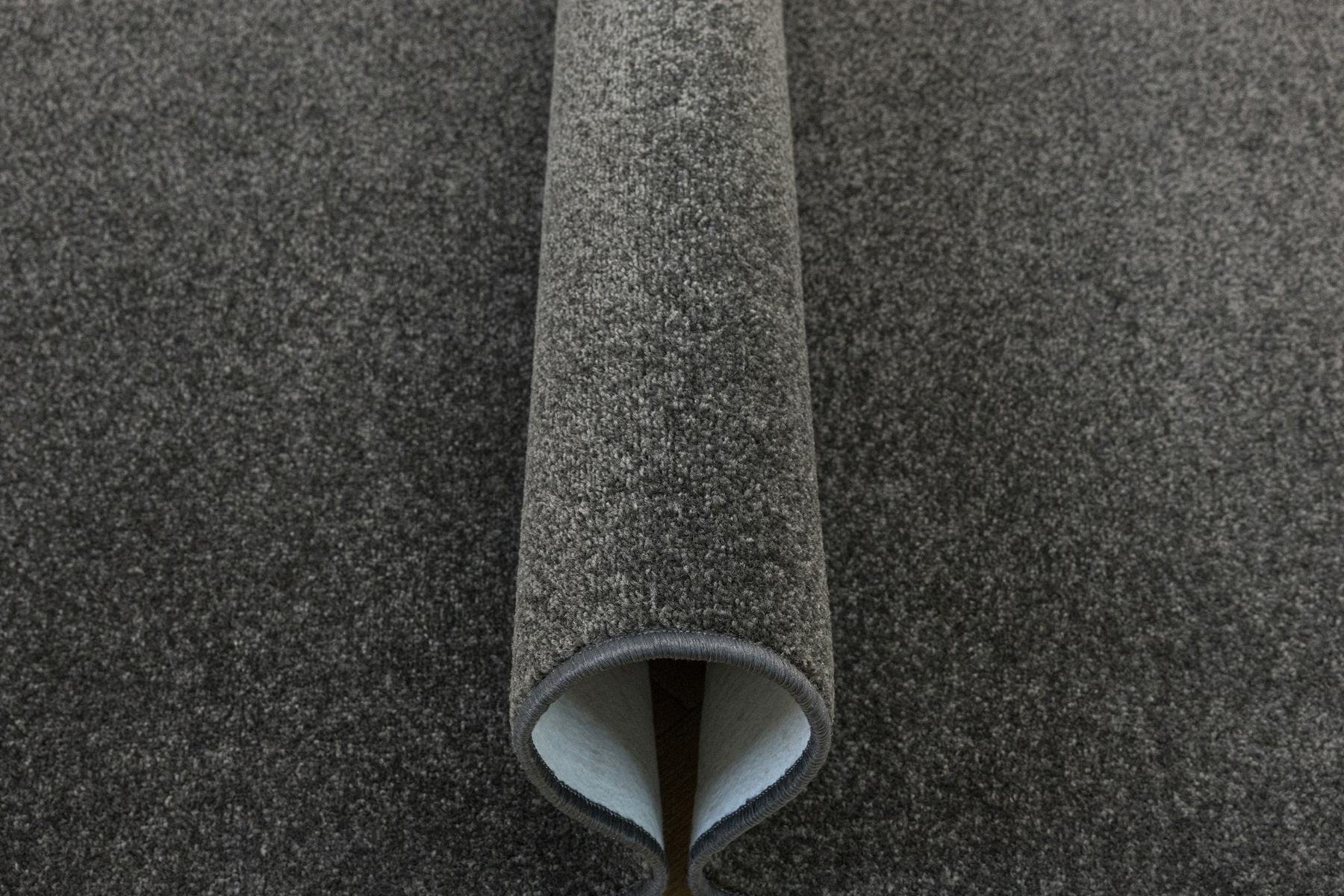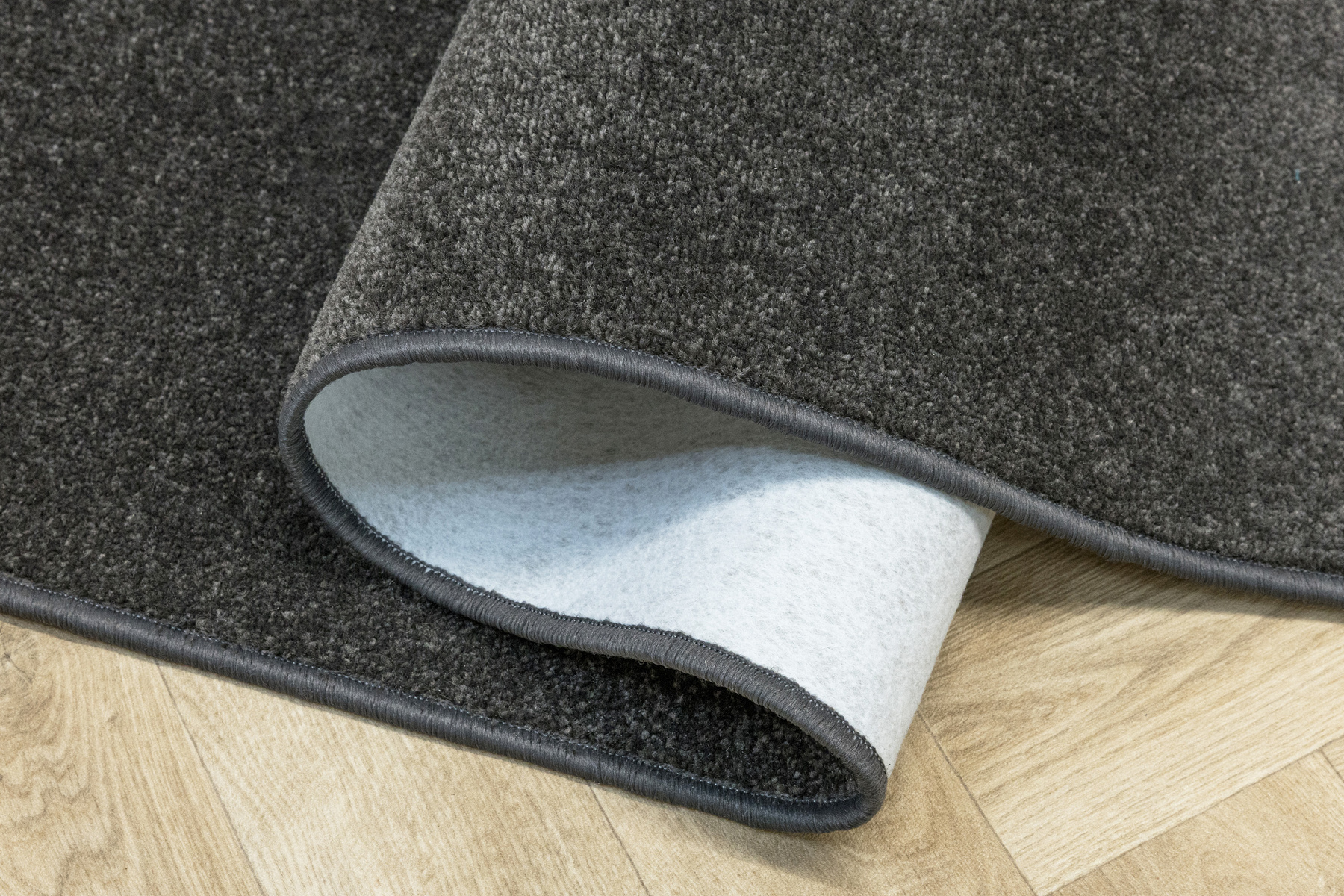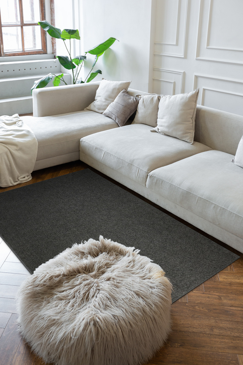 - Miękki dywan wykonany z wykładziny Dynasty o delikatnie mieniącym się, ciętym runie typu saxon w odcieniu szarości i ze spodem wykończonym filcem.